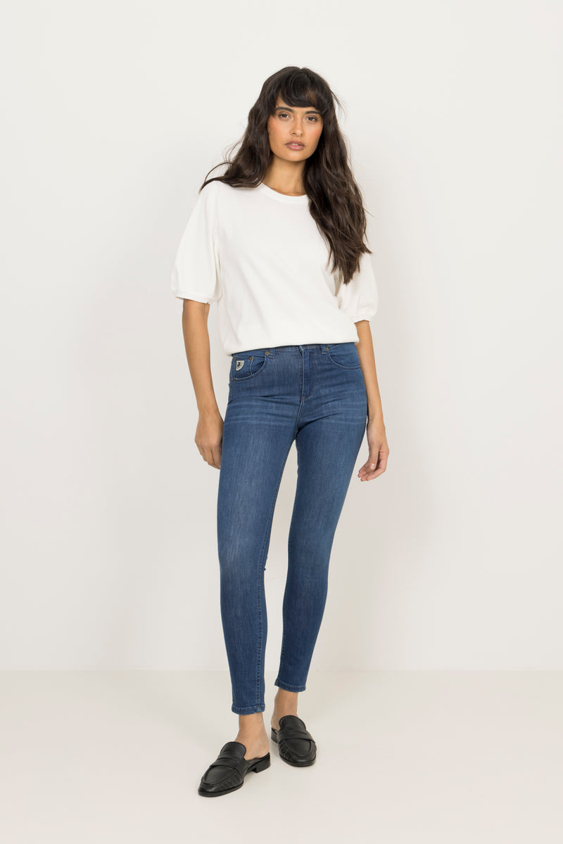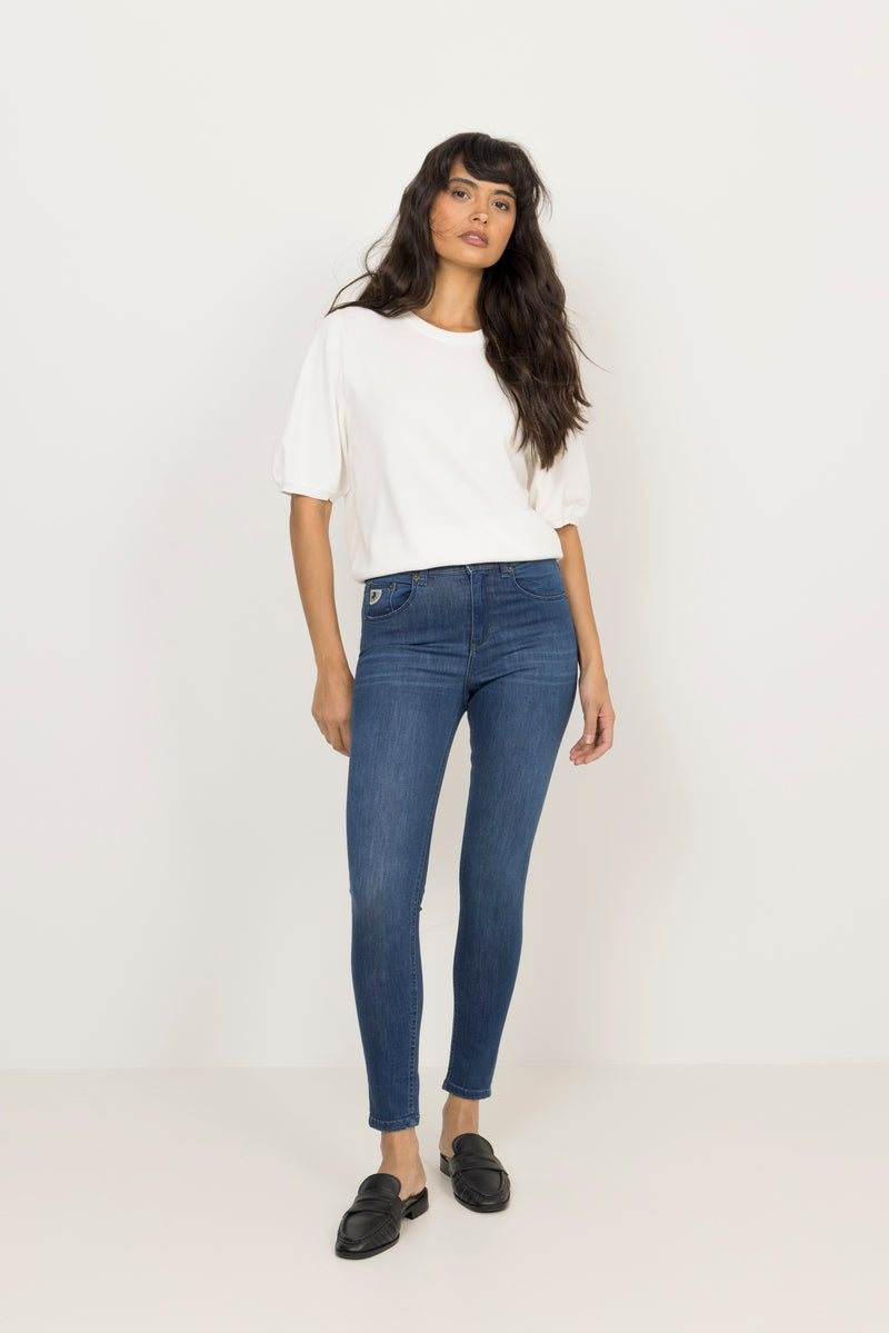 Skinny jeans har en tettsittende passform som sitter tett rundt hofte og ben helt ned til ankelen.