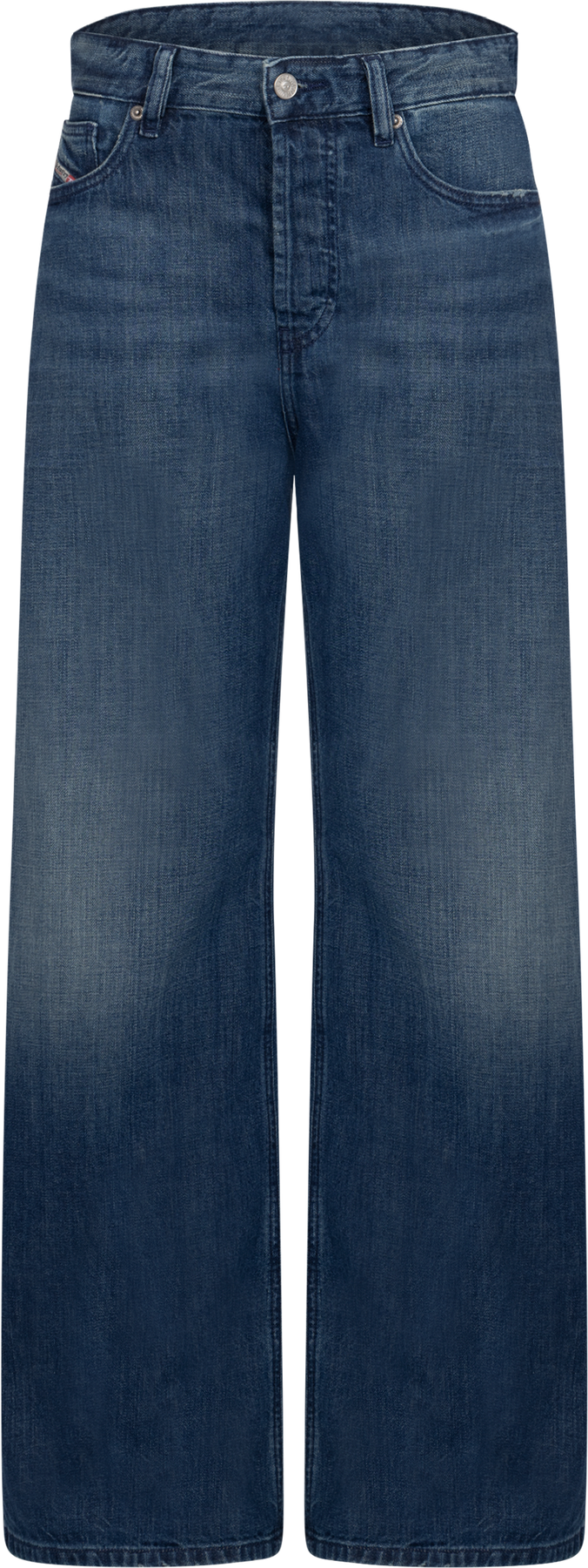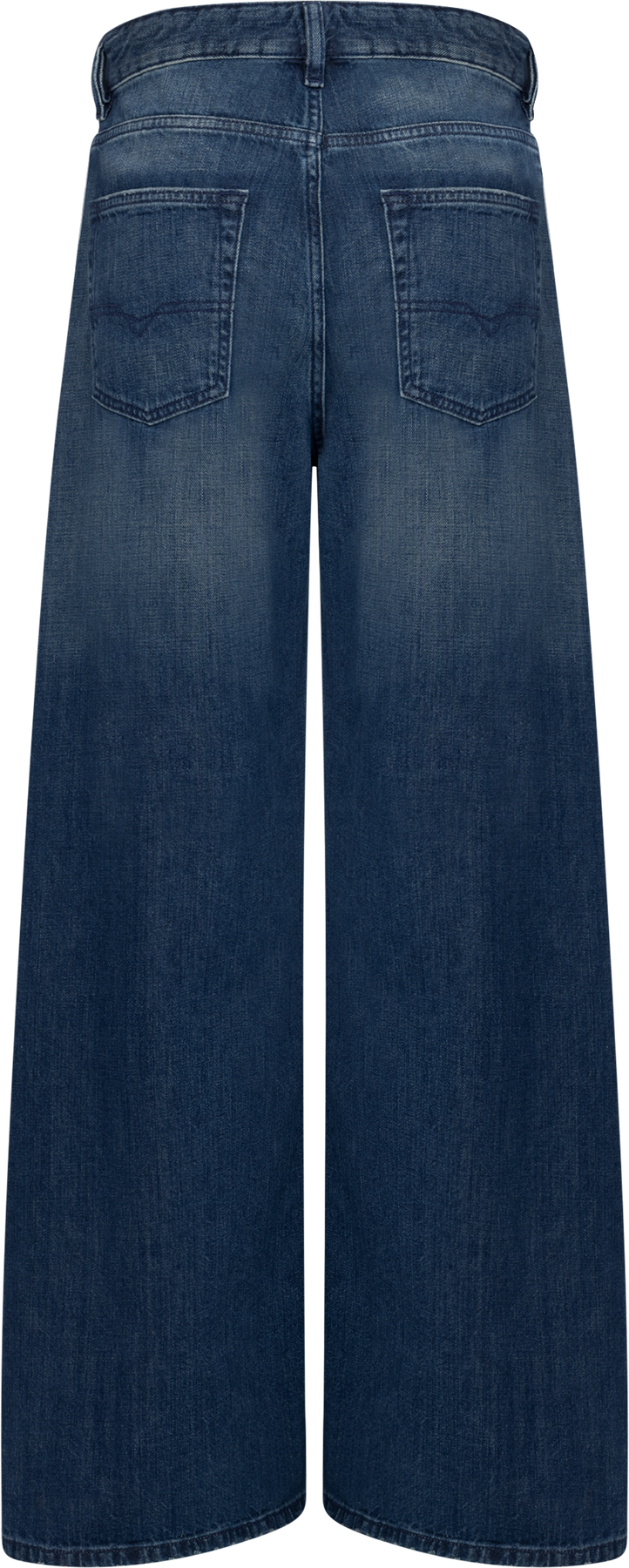 1996 D-Sire 0Bebj fra Diesel. Klassiske, mørk blå wide leg-jeans med en kul, vintageinspirert vask. 1996 D-Sire 0Bebj har lav midje, lange ben og en løs silhuett som faller rett ned for et avslappet, men edgy uttrykk. Denimfinishen har subtile, slitte partier som gir ekstra dybde, mens den karakteristiske Diesel-logoen bak fullfører looken.