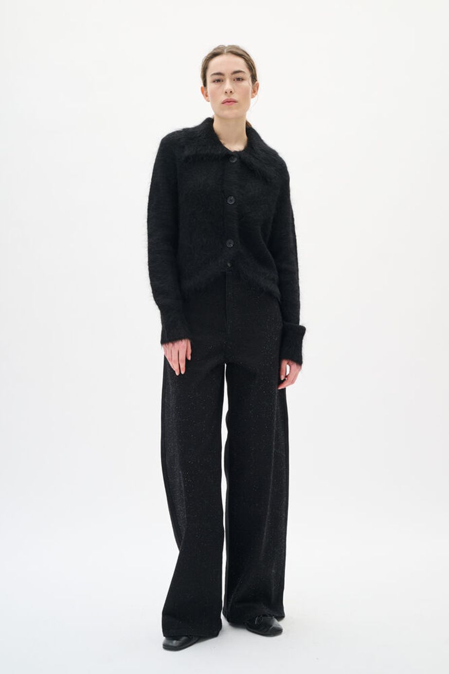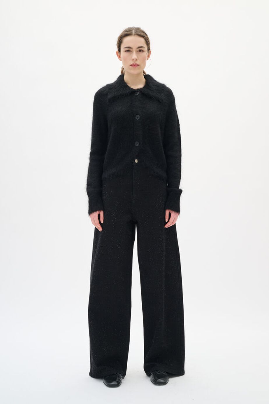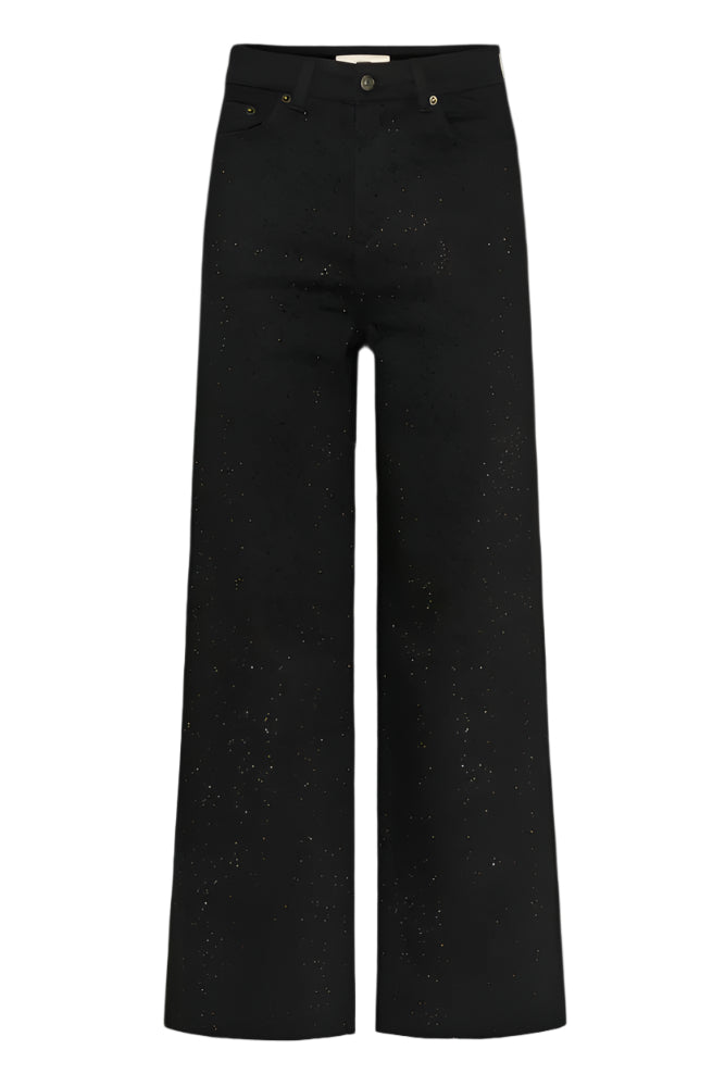 AaliaIW Bacca Jeans fra InWear. Superkul jeans med det lille ekstra! AaliaIW Bacca Jeans har høyt liv, vide ben og glitter-detaljer. Kombiner den med en enkel strikkegenser for en hverdagslook, eller style den med en bluse og hæler for fest.