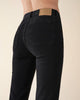 AW014 Alta fra Jeanerica. Alta er et par jeans med høy midje og rette ben, med påsydde lommer med referanser til 1970-tallet. Den har glidelåsgylf, høy midje og smale lår som faller ned til rette ben. Laget i lett falmet svart denim, med Jeanericas signaturstretch-komposisjon som beriker jeansen med varig fleksibilitet.