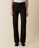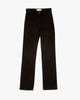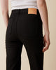 AW014 Alta fra Jeanerica. Alta er et par jeans med høy midje og rette ben, med påsydde lommer med referanser til 1970-tallet. Den har glidelåsgylf, høy midje og smale lår som faller ned til rette ben. Laget i sort denim, med Jeanericas signaturstretch-komposisjon som beriker jeansen med varig fleksibilitet.