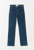 AW014 Alta fra Jeanerica. Alta er et par jeans med høy midje og rette ben, med påsydde lommer med referanser til 1970-tallet. Den har glidelåsgylf, høy midje og smale lår som faller ned til rette ben. Laget i ufarget kremhvit økologisk denim, med Jeanericas signaturstretch-komposisjon som beriker jeansen med varig fleksibilitet.