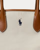 Bellport Canvas Medium Tote fra Polo Ralph Lauren er en tidløs og allsidig veske for enhver anledning. Denne klassiske tote-vesken er laget av slitesterkt, naturfarget bomullslerret med luksuriøse detaljer i ekte skinn. Den ikoniske Polo-logoen er brodert i marineblått på forsiden, og det matchende marineblå fôret skaper en stilig kontrast som gir det lille ekstra. esken er romslig og perfekt til hverdags. Bær den i de solide håndtakene, eller bruk den avtagbare og justerbare skulderremmen for en mer avslappet stil.