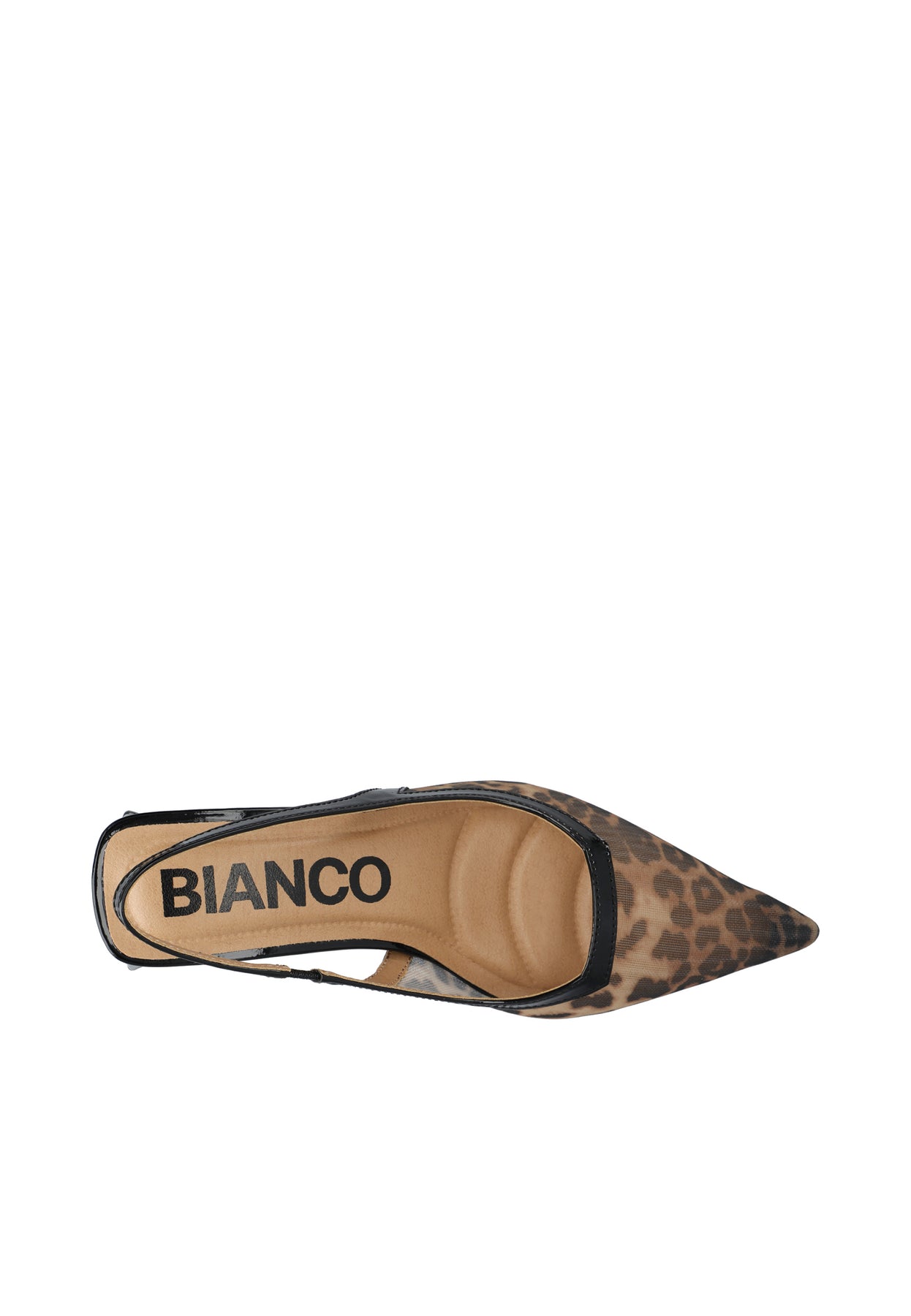 Items in cart: 0 Cart total: 0Biamaralyn Slingback Mesh er en iøynefallende og stilig pump fra Bianco. Skoene er designet med et trendy leopardmønster på et transparent mesh-materiale, som gir en dristig og moderne look. Den elegante, spisse tåen og de sorte, lakkerte detaljene skaper en sofistikert kontrast. Den justerbare slingback-remmen sørger for en komfortabel og sikker passform gjennom hele kvelden.