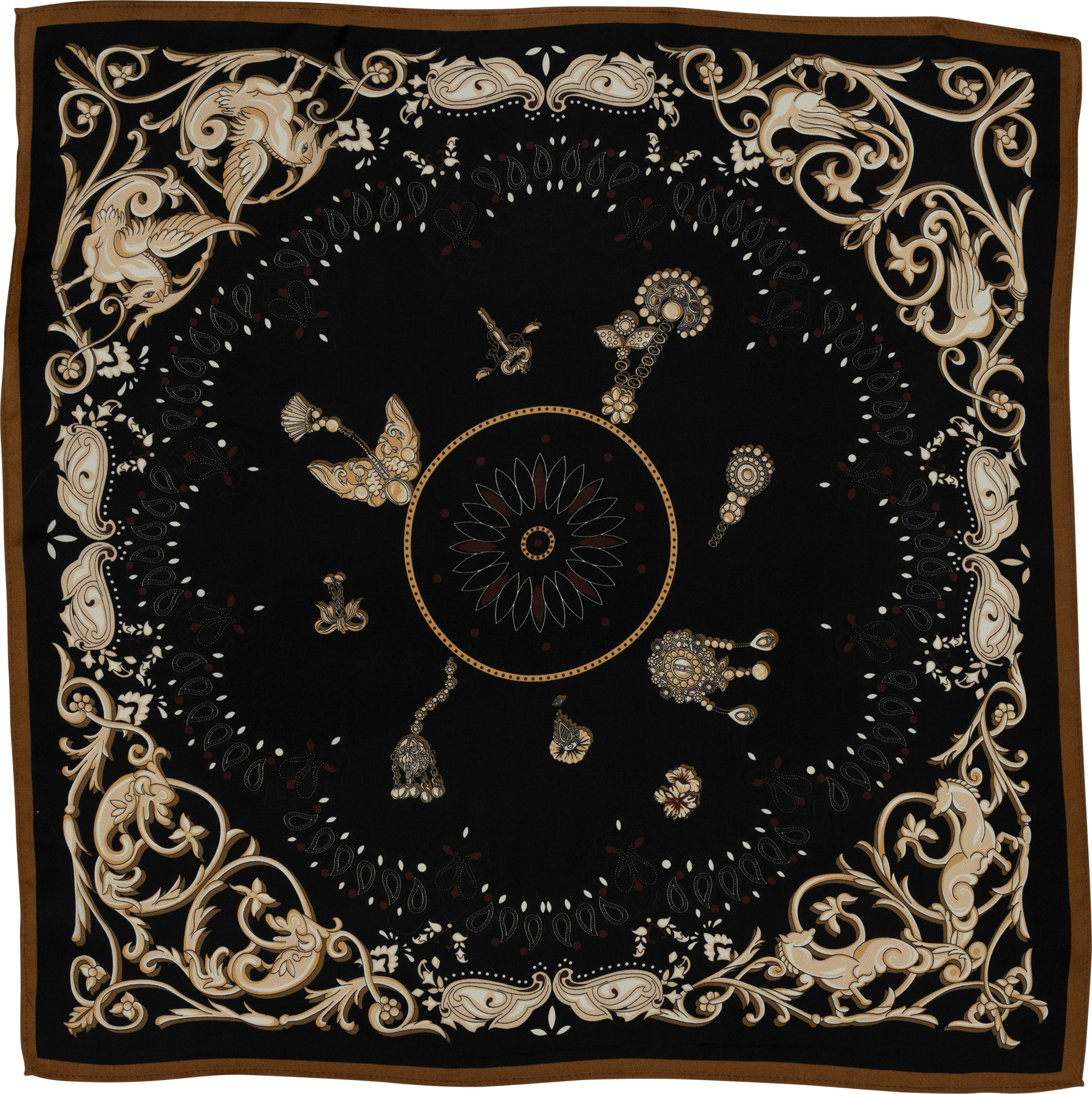 Bonita Scarf fra Ane Mone. Bonita Scarf fra Ane Mone er et elegant tilbehør som løfter ethvert antrekk. Skjerfet har et intrikat mønster i varme toner av gull, brun og krem på en dus rosabeige base – inspirert av klassiske smykkemotiver og ornamenter. Laget i luksuriøs silke som faller vakkert enten du bruker det rundt halsen, i håret eller på vesken.