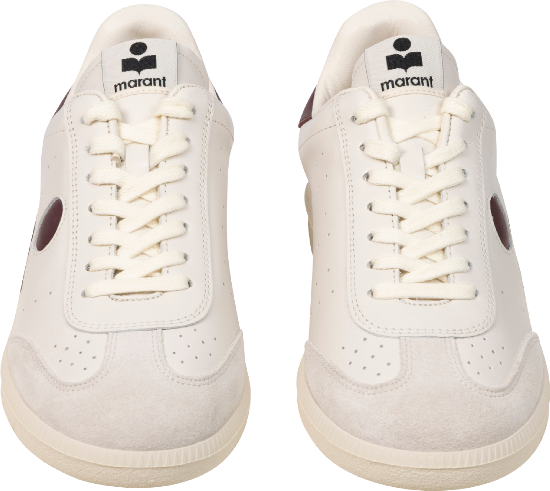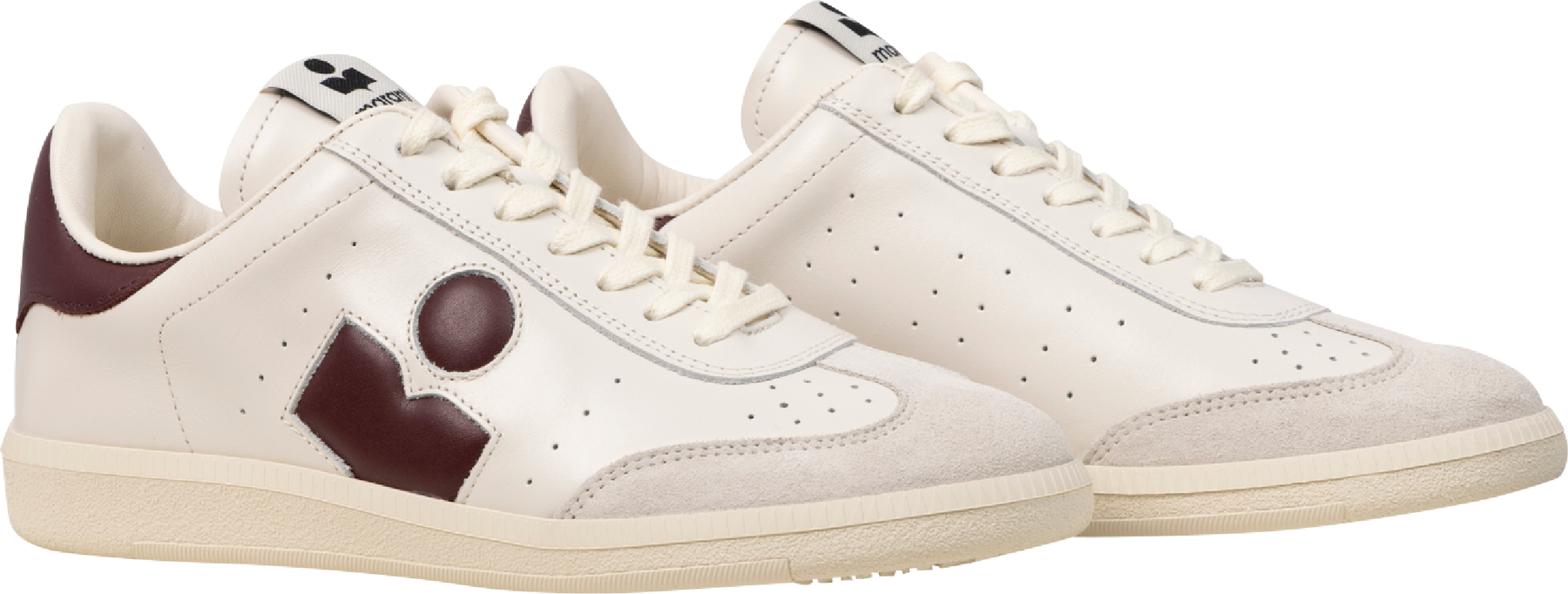 Bryce fra Isabel Marant. Kule, minimalistiske sneakers fra Isabel Marant med retro-inspirert look. Bryce er laget i semsket offwhite skinn med detaljer og sort, glatt skinn. Sneakersene har gummisåle og snøring.