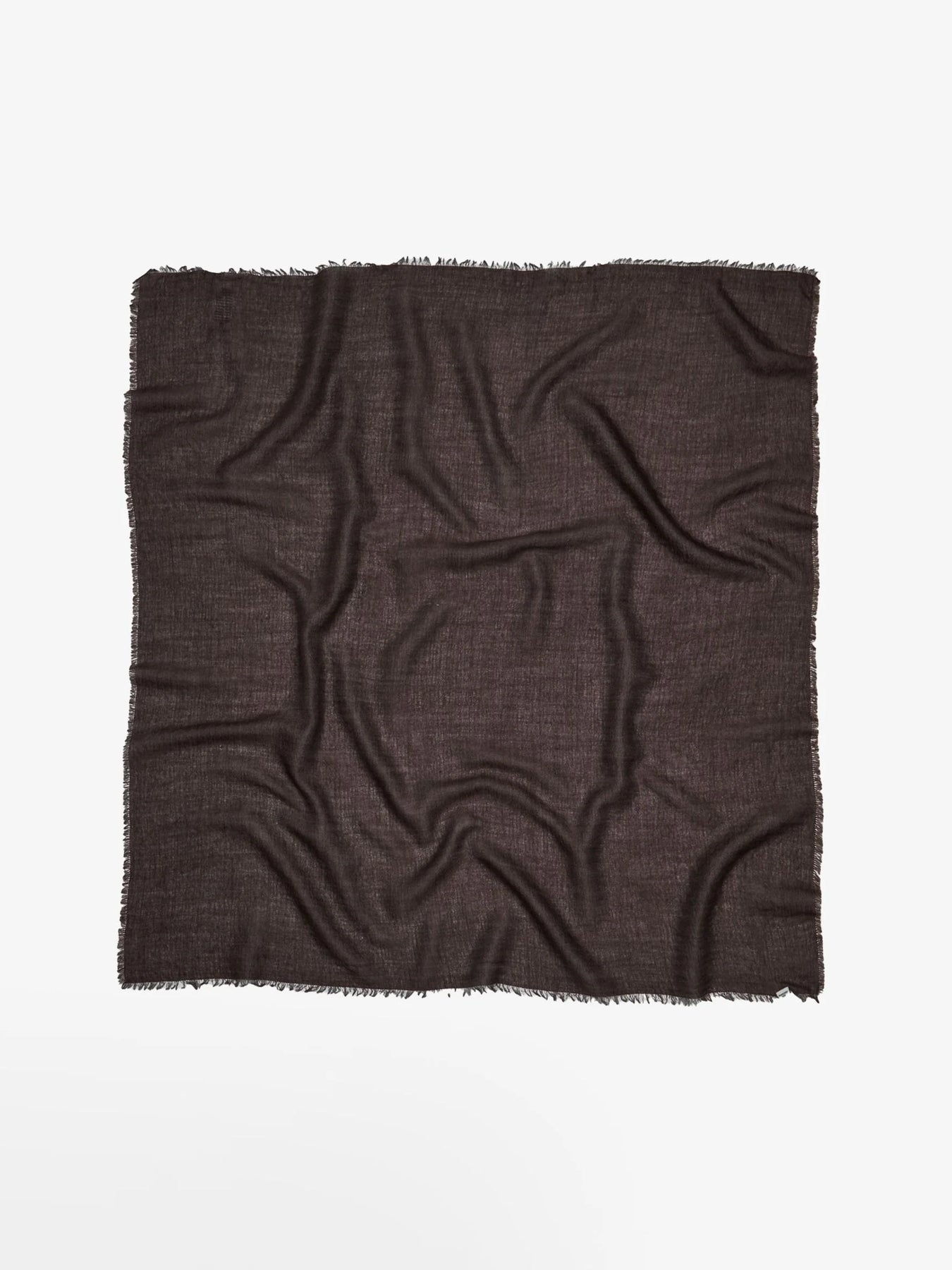 Skjerfet har en klassisk, kvadratisk form med delikate frynser langs kantene som gir en avslappet og chic detalj. Den anvendelige størrelsen gjør det enkelt å style på ulike måter – knytt det elegant rundt halsen eller som et tilbehør på vesken din for en personlig vri.