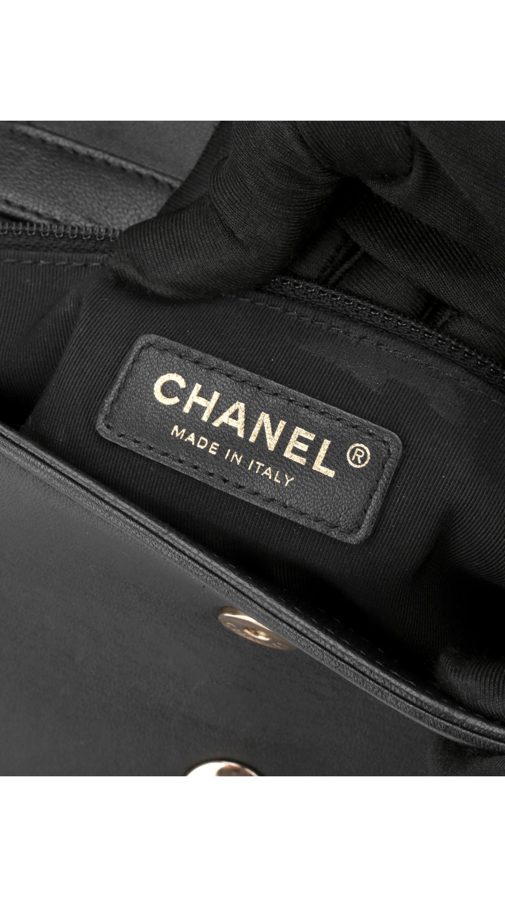 Chanel Small Flap Bag i sort skinn med sjeldent skråstripet mønster er en sofistikert og tidløs klassiker. Dette unike designet gir den ikoniske Chanel-stilen et moderne preg, samtidig som den kompakte størrelsen tilfører et ungdommelig og elegant uttrykk.