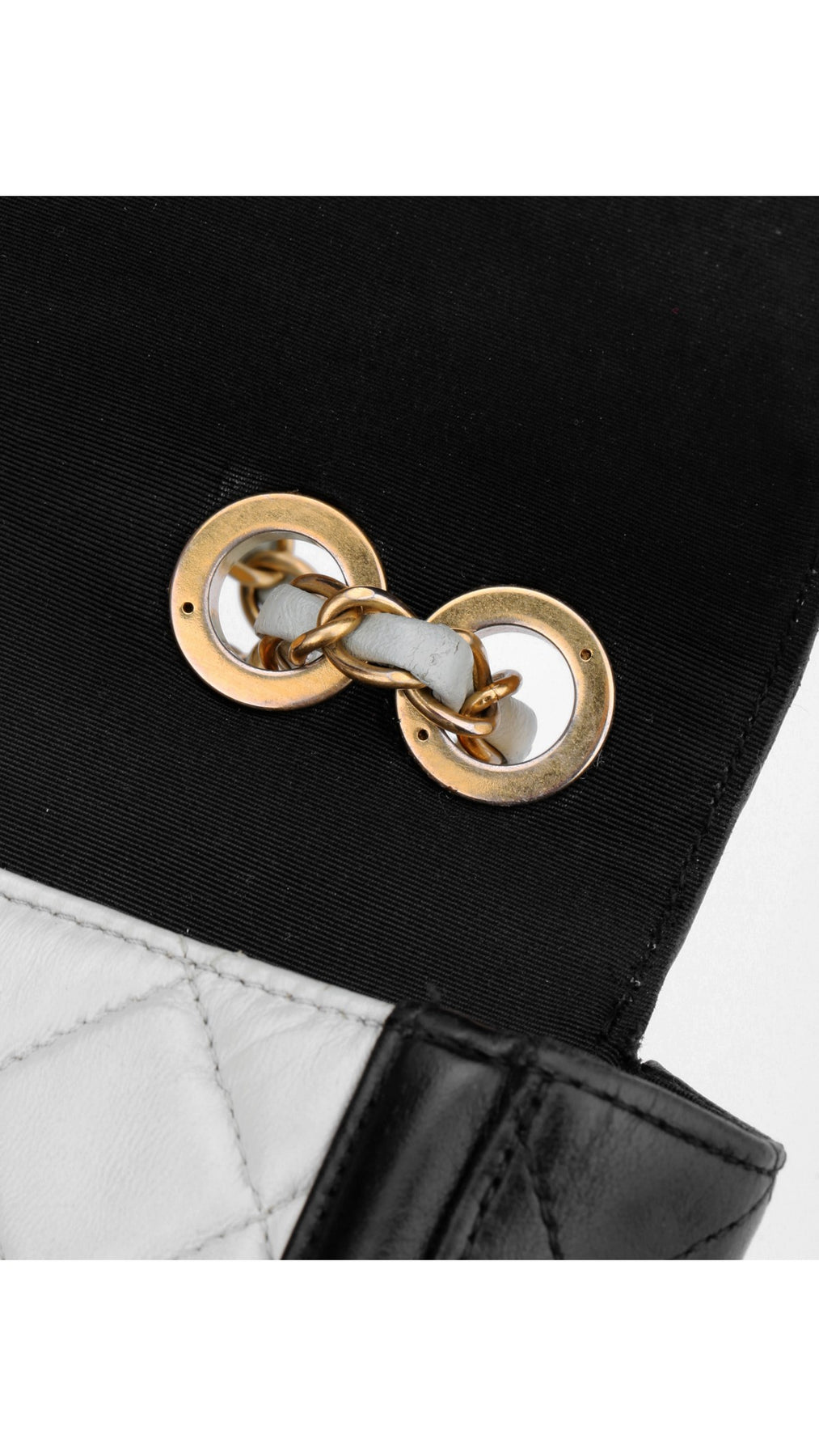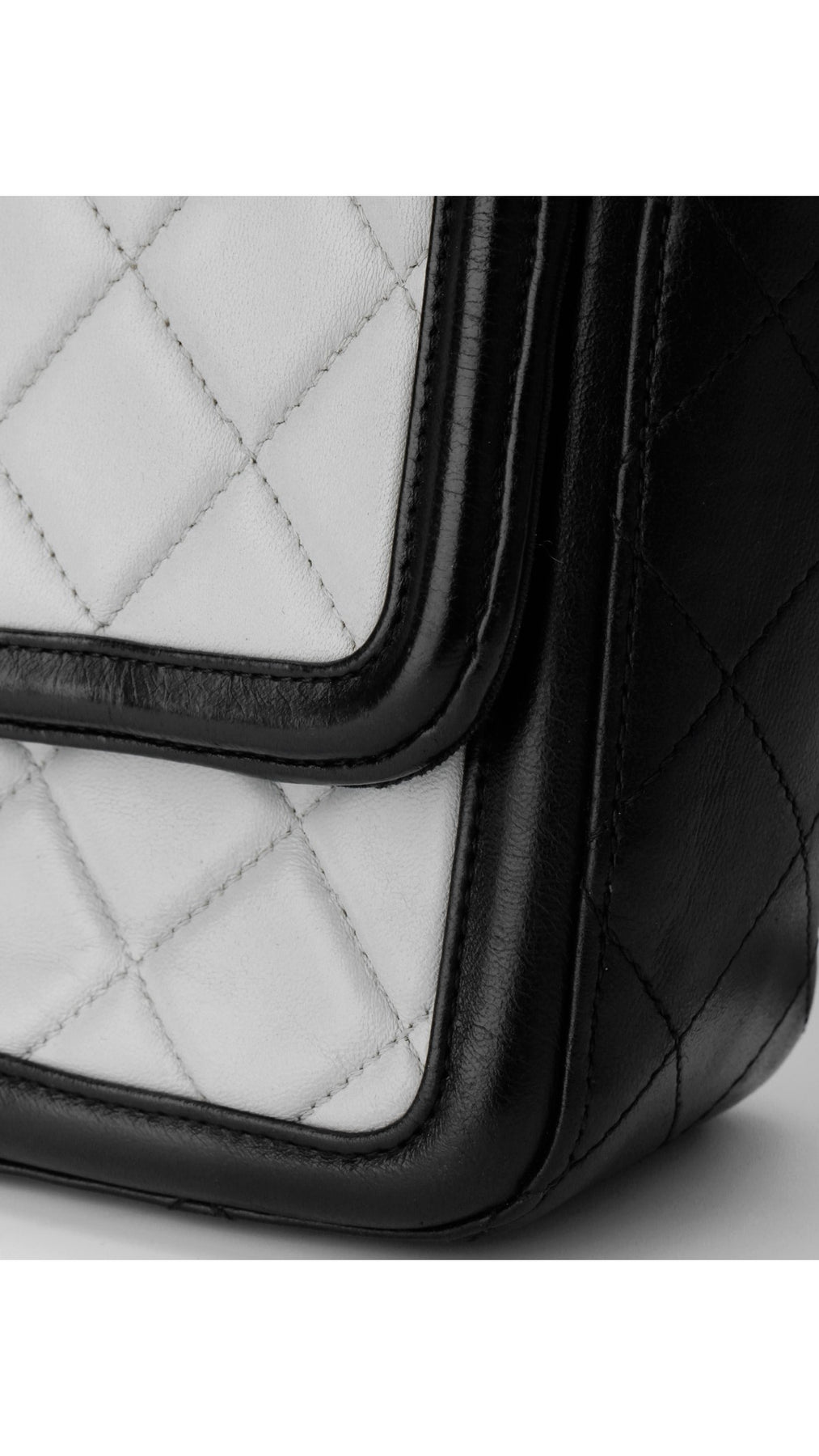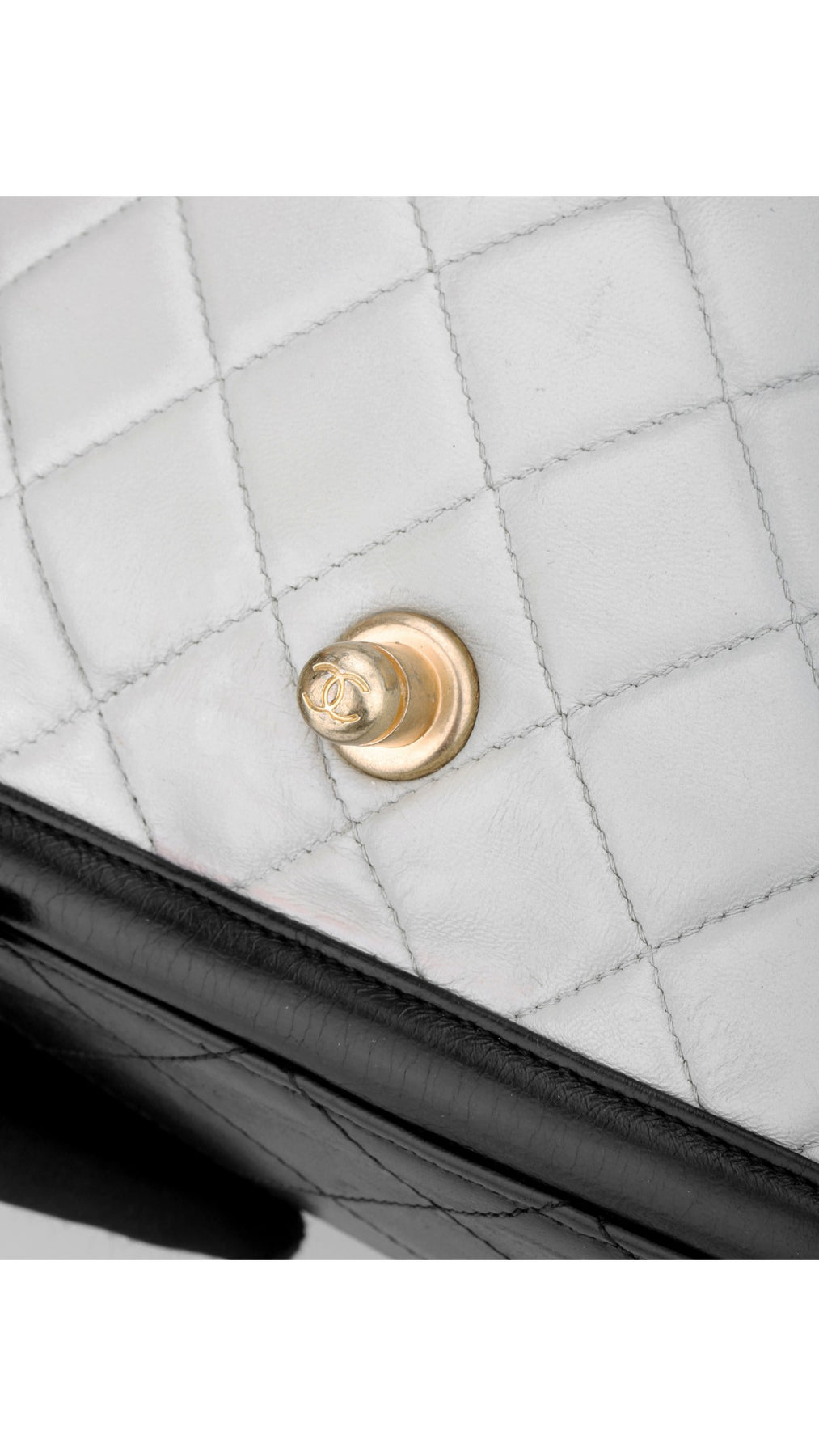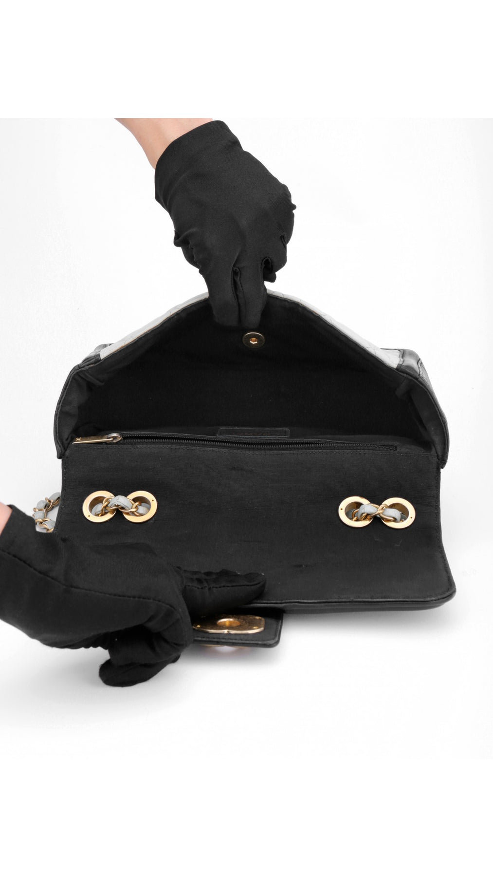Chanel Classic Flap Bag i lammeskinn er en tidløs og ikonisk veske – et ekte samleobjekt for enhver Chanel-elsker. Denne utgaven er en vintage skatt med 24K gullbelagt hardware, og kombinerer klassisk eleganse med den luksuriøse følelsen av mykt lammeskinn. Det totonede designet i sort og lyseblått tilfører et unikt og sofistikert uttrykk.