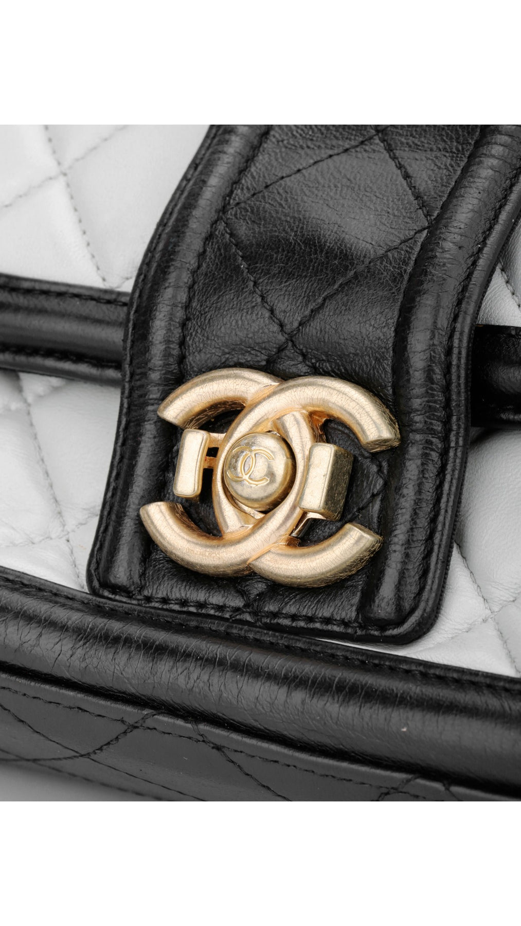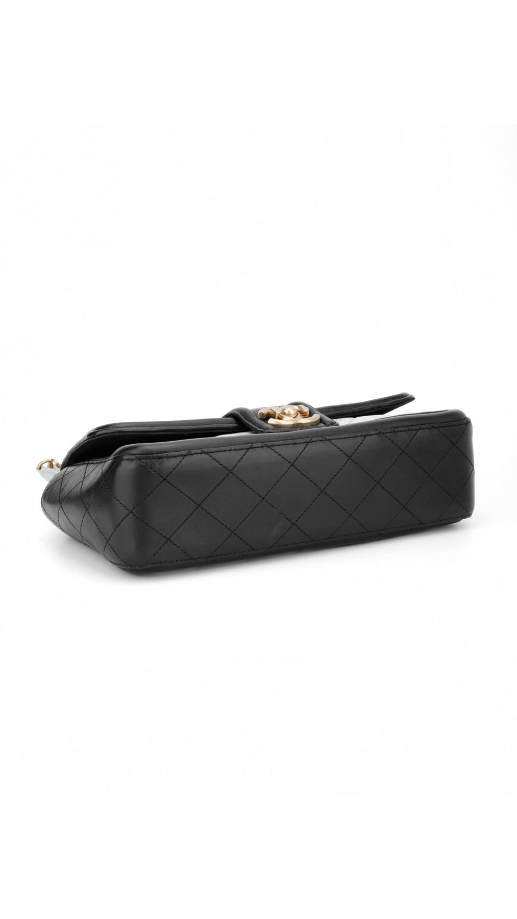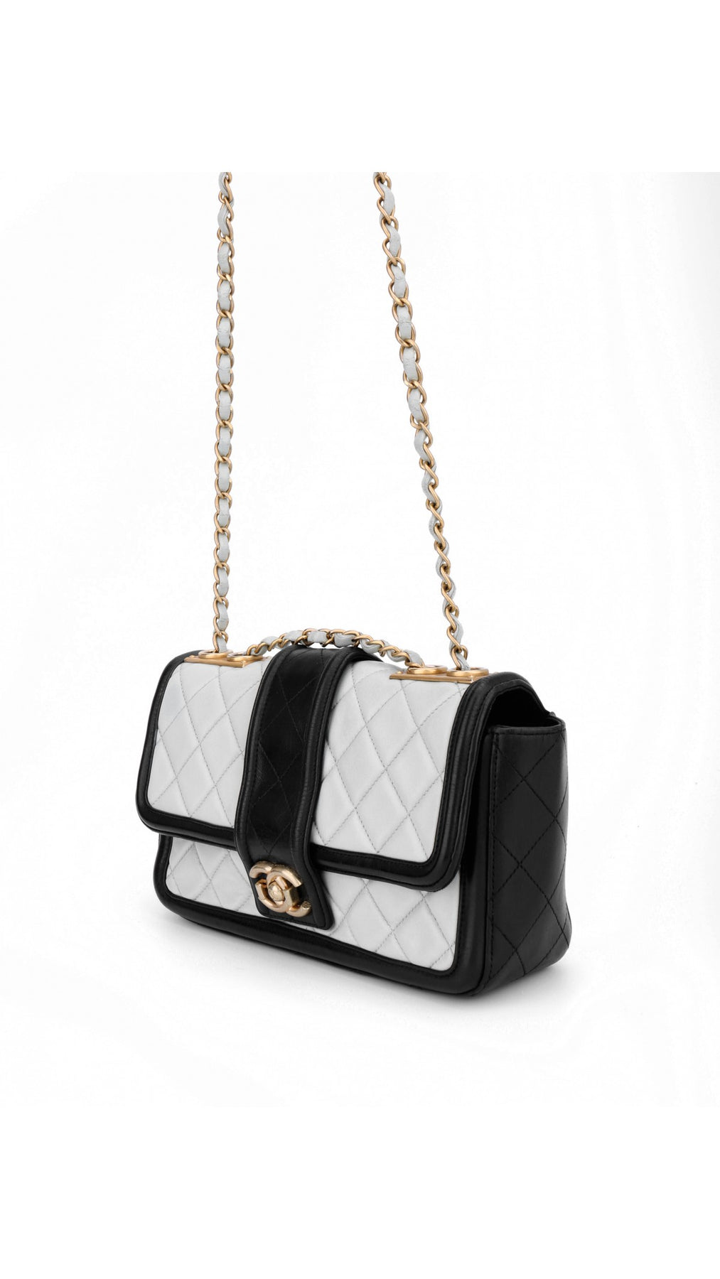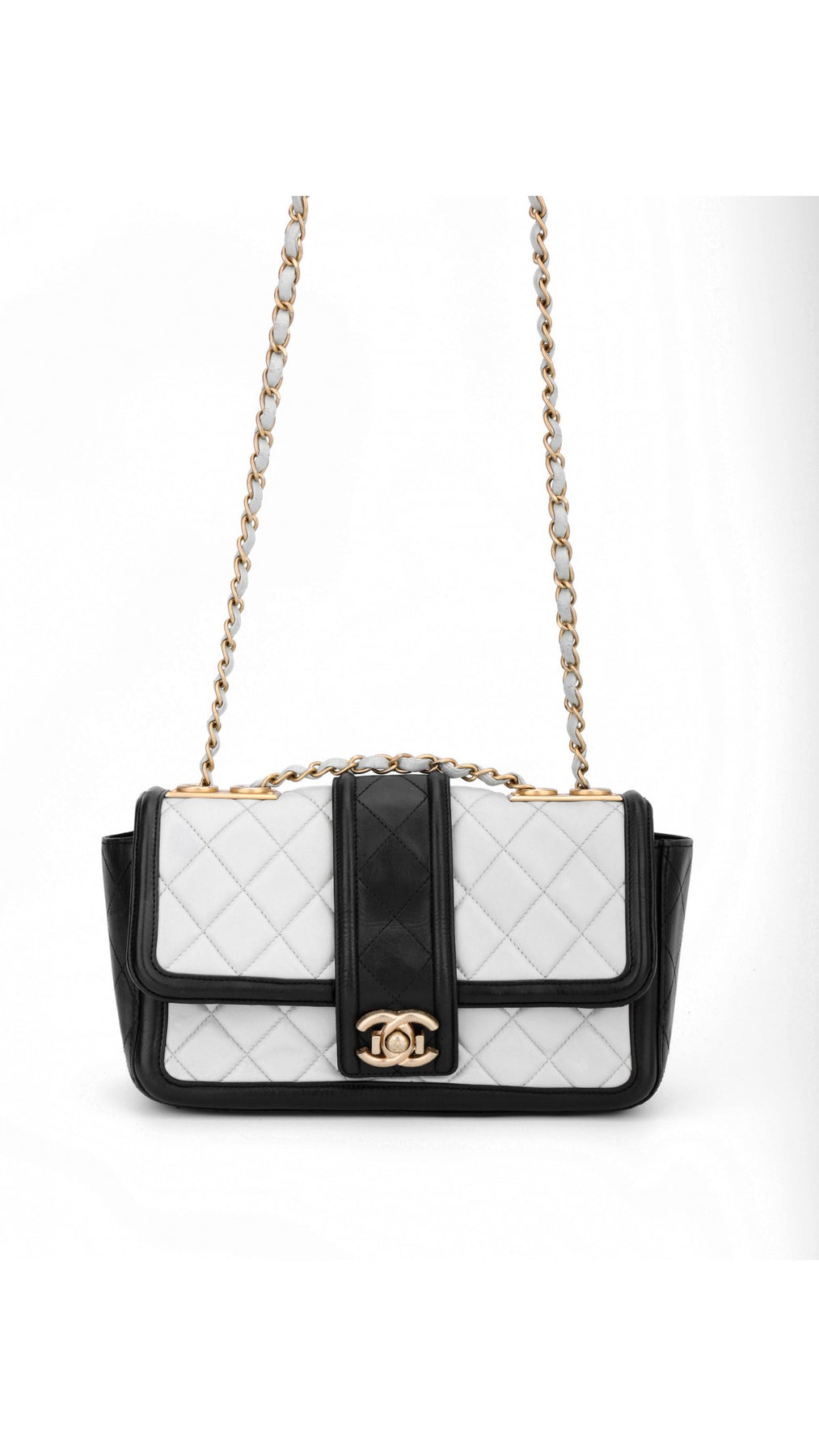 Chanel Classic Flap Bag i lammeskinn er en tidløs og ikonisk veske – et ekte samleobjekt for enhver Chanel-elsker. Denne utgaven er en vintage skatt med 24K gullbelagt hardware, og kombinerer klassisk eleganse med den luksuriøse følelsen av mykt lammeskinn. Det totonede designet i sort og lyseblått tilfører et unikt og sofistikert uttrykk.