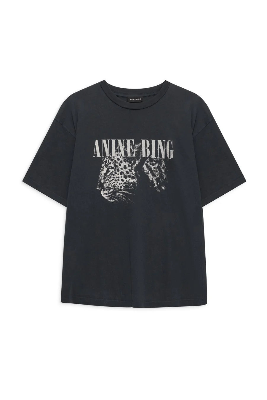 Cohen Tee fra Anine Bing. En kul statement-tee i vasket sort med et rått leopardmotiv og logo i front. Cohen Tee har en avslappet, boxy passform med rund hals og korte ermer, perfekt til både jeans, skinnbukser eller skjørt for en edgy hverdagslook. Den vintage-inspirerte vasken gir et autentisk uttrykk og gjør denne t-skjorten til et tidløst plagg i garderoben.