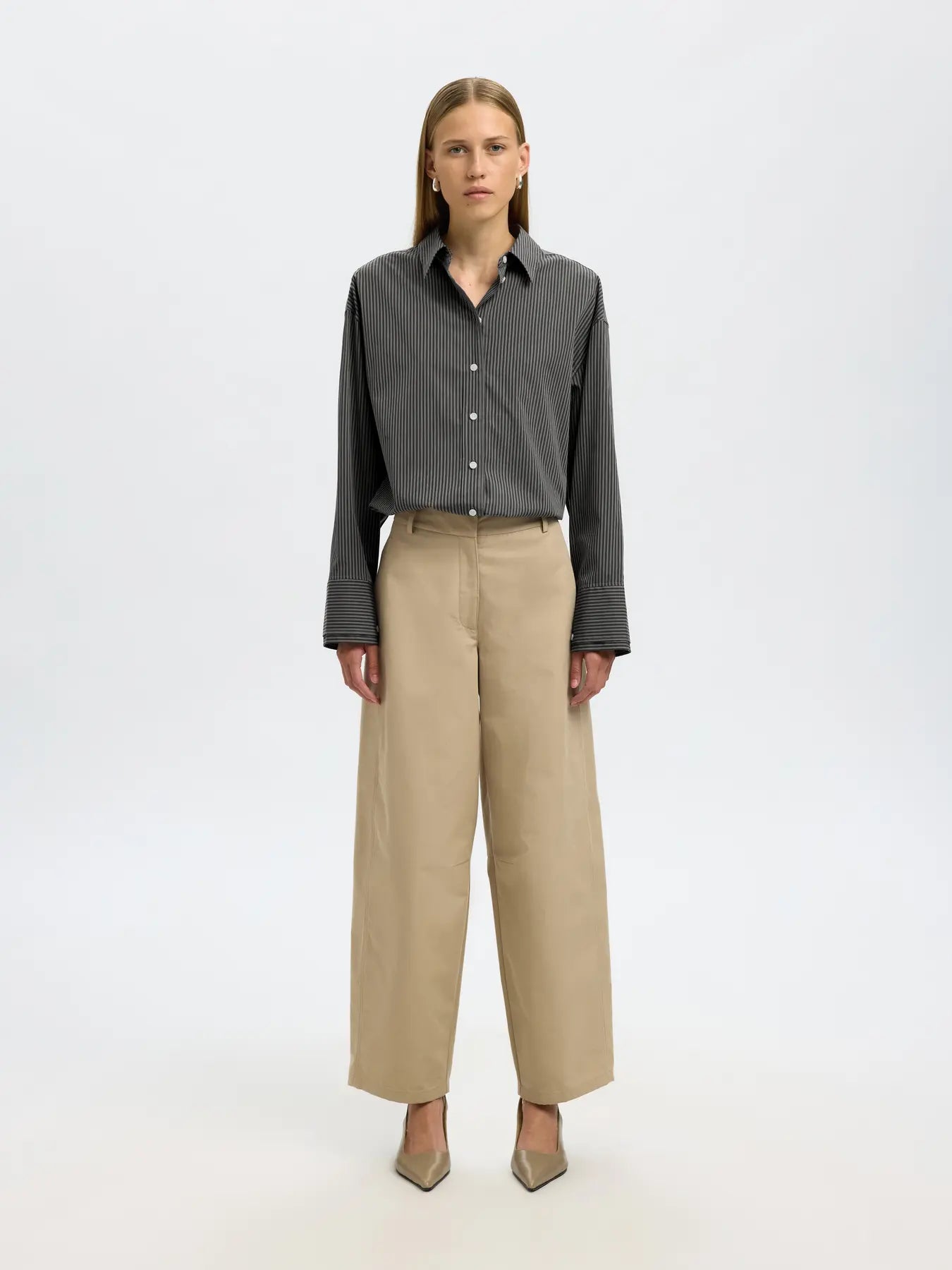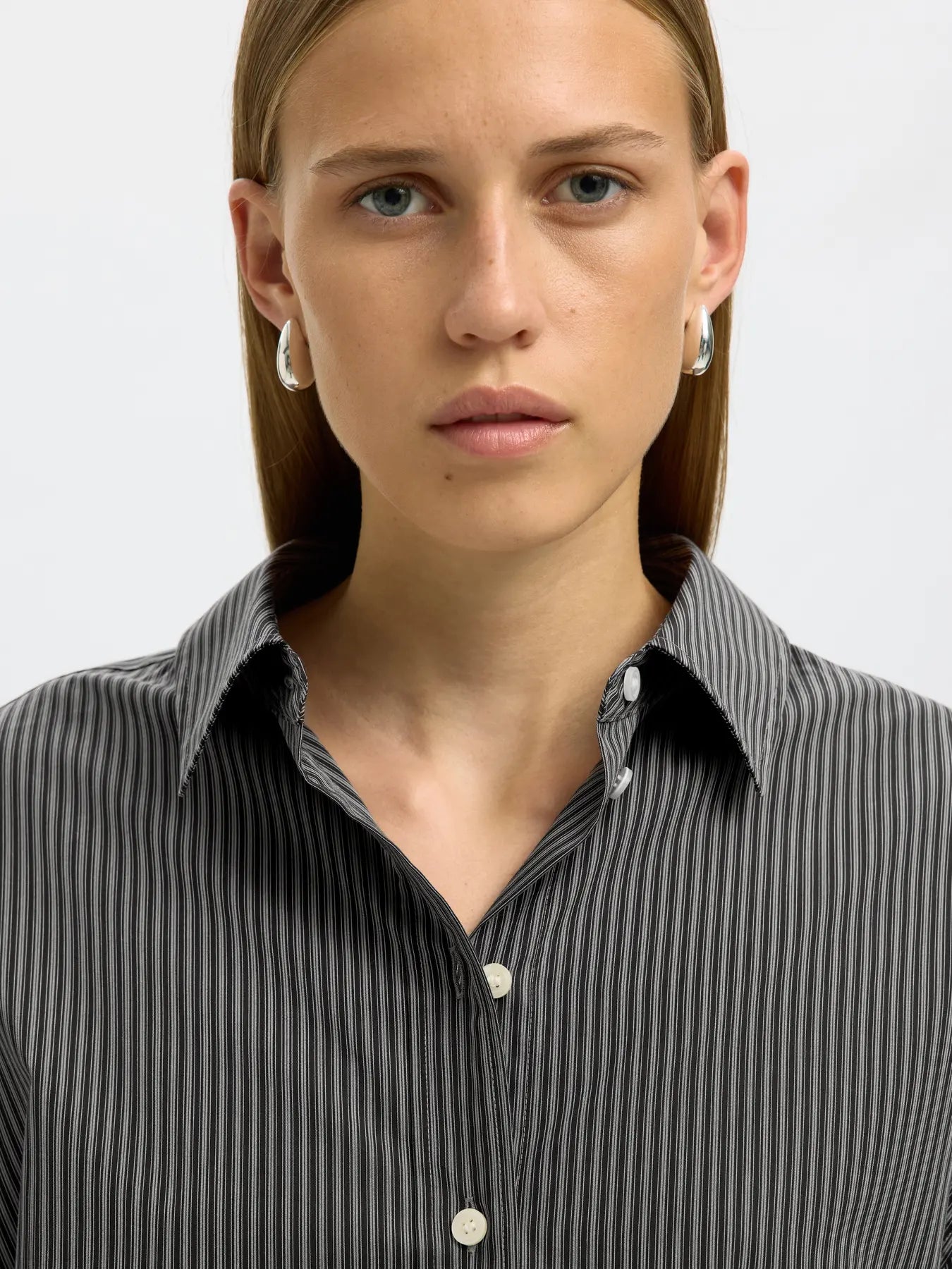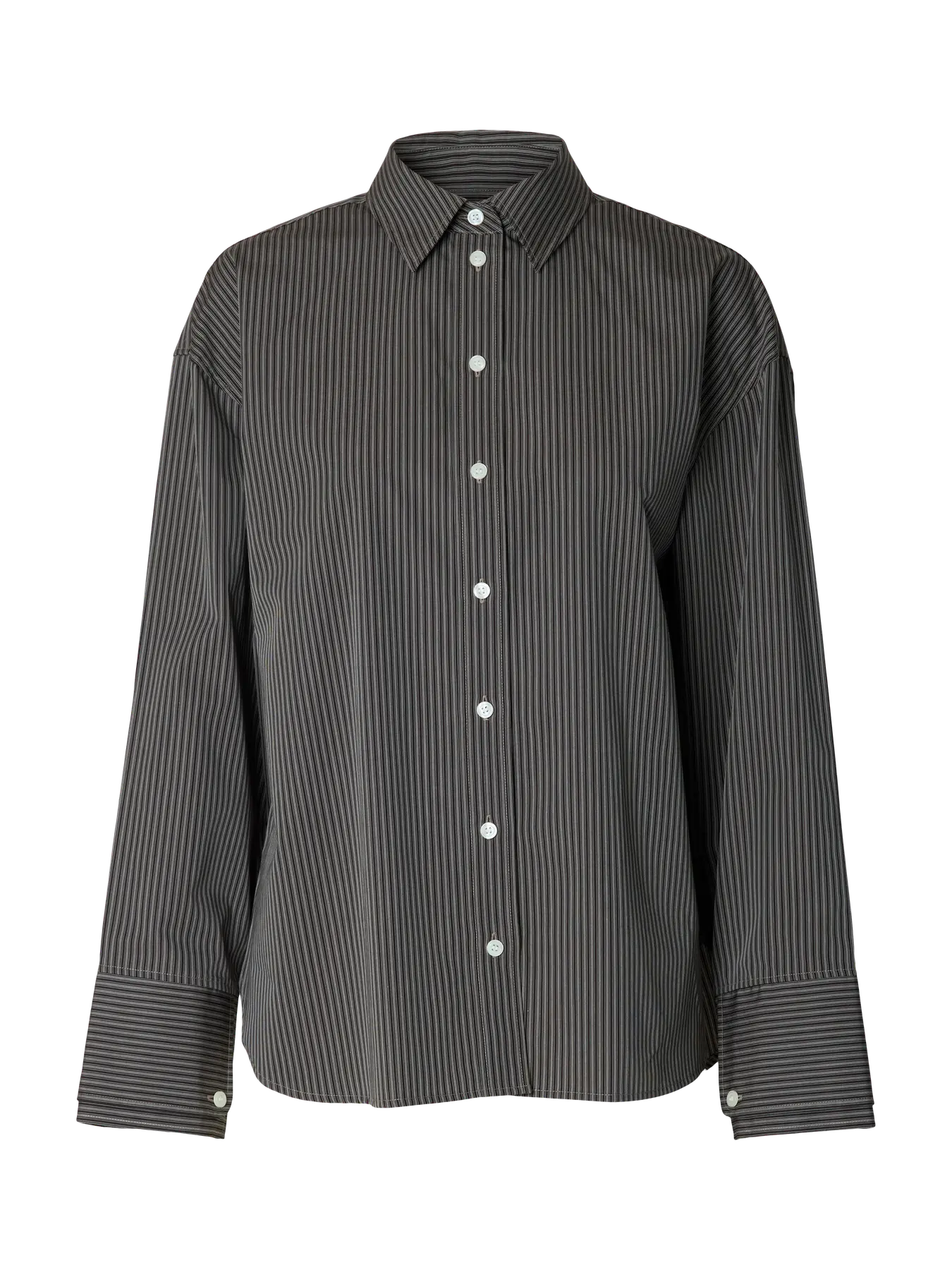 Dan Ls Oversized Shirt fra Selected Femme. Dan LS Oversized Shirt fra Selected Femme er en klassisk skjorte med moderne, oversized passform. Den har smale striper, knappelukking foran og brede mansjetter som gir et sofistikert uttrykk. En tidløs favoritt som passer både til kontoret og hverdagsbruk.