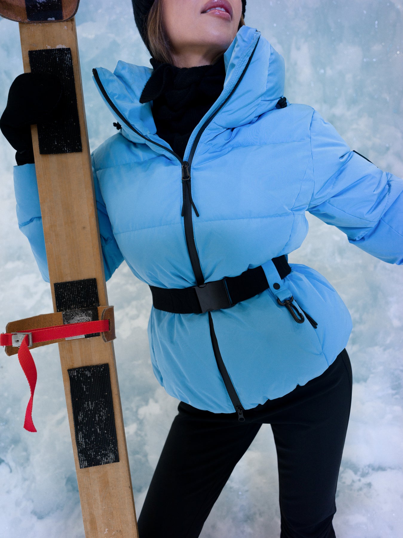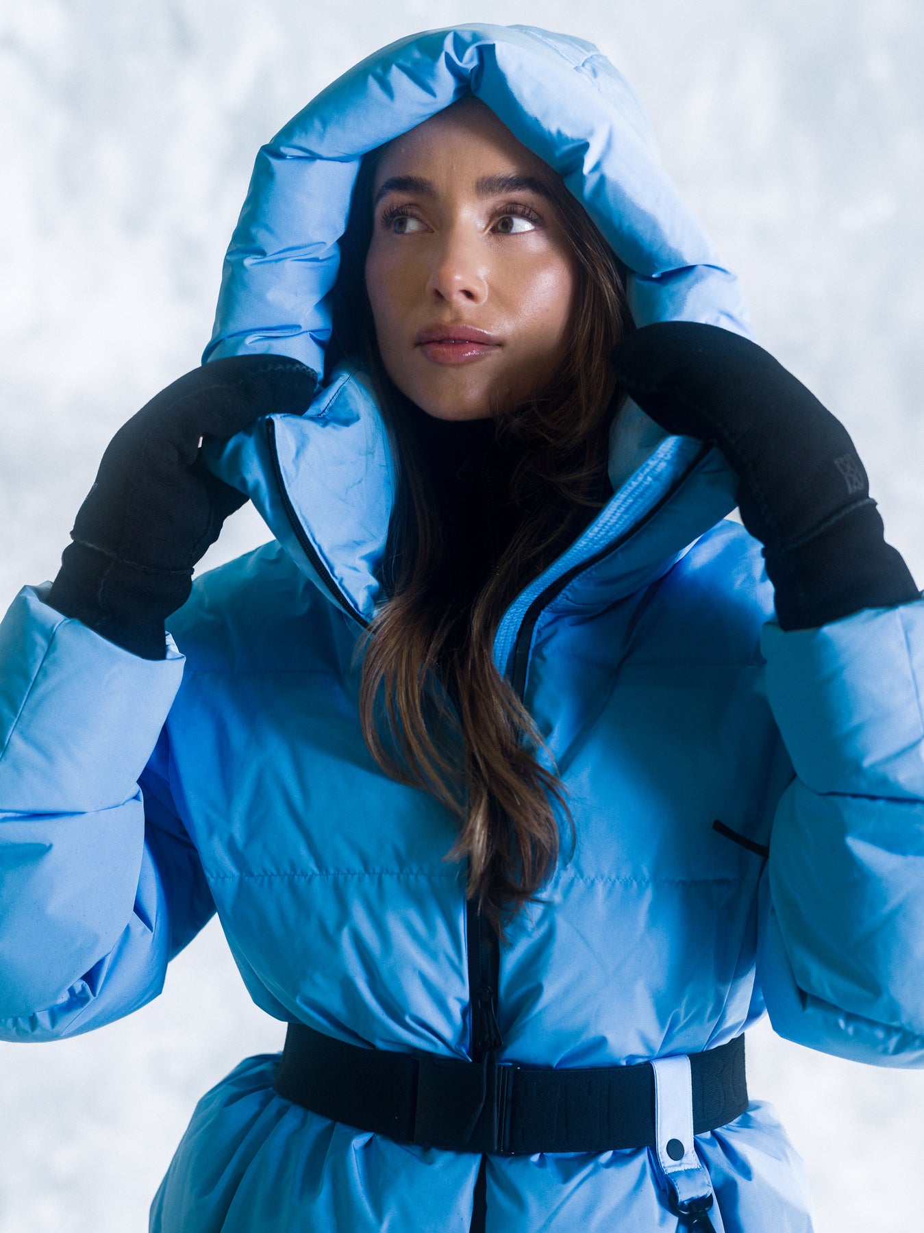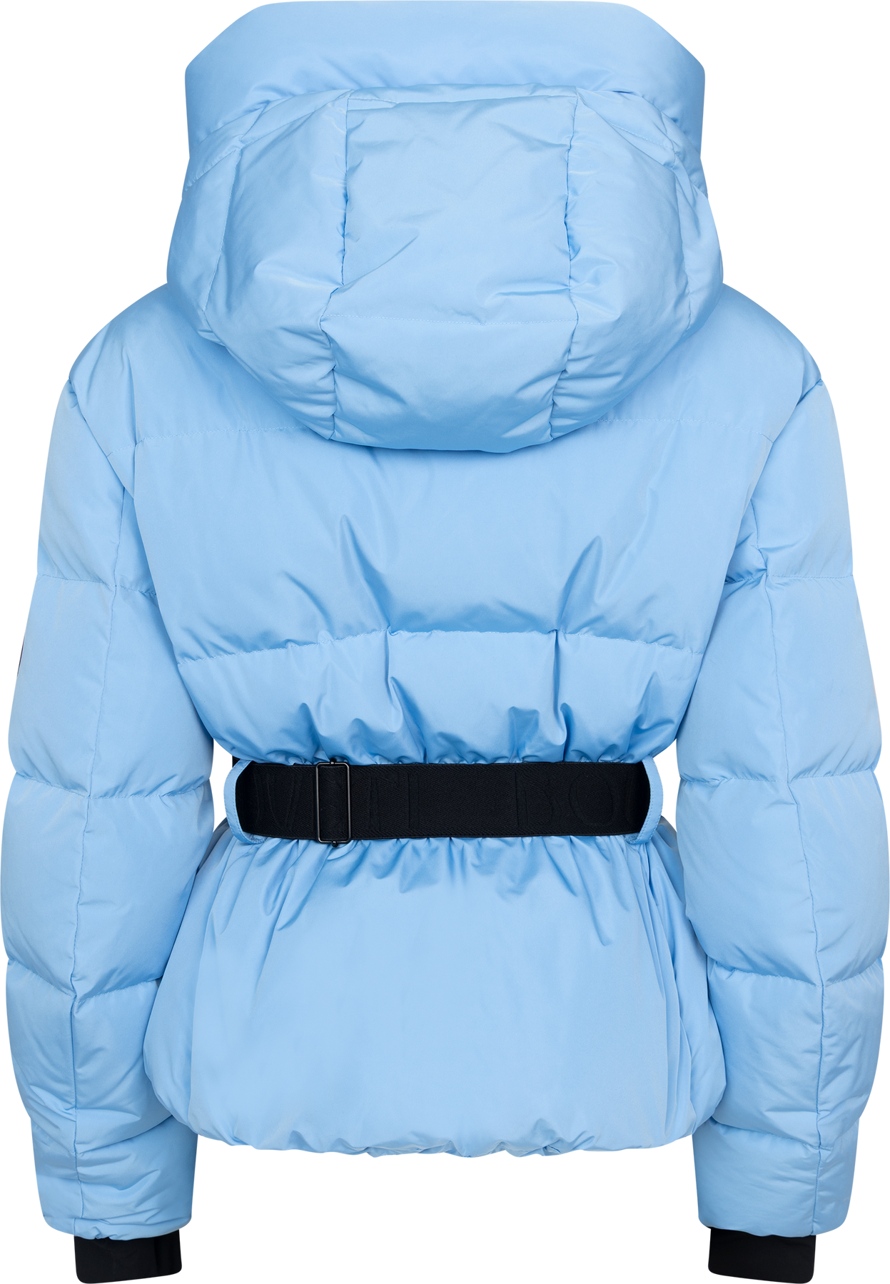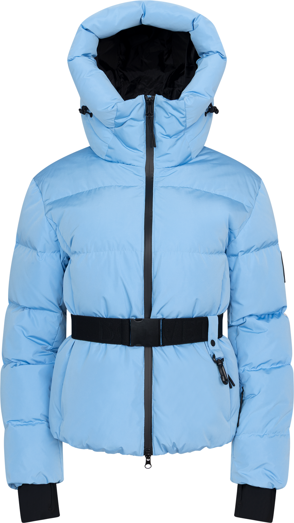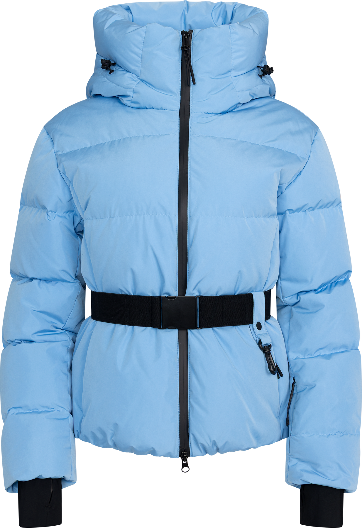 Emily Down Belt Jacket fra Bouveti. En kort, puffet dunjakke i en frisk lyseblå farge som løfter vinterlooken. Jakken har avtagbart belte i midjen som gir en feminin silhuett, mens den høye kragen og store hetten beskytter mot vind og kulde. Jakken har vannavstøtende ECO BIONIC finish og TPU-membran på baksiden. Den er fylt med dun og fjær for maksimal varme, samtidig som elastiske mansjetter og snøskjørt holder kulden ute. En moderne jakke som kombinerer funksjonalitet med stil. Jakken har glidelåslommer foran og en innvendig lomme.