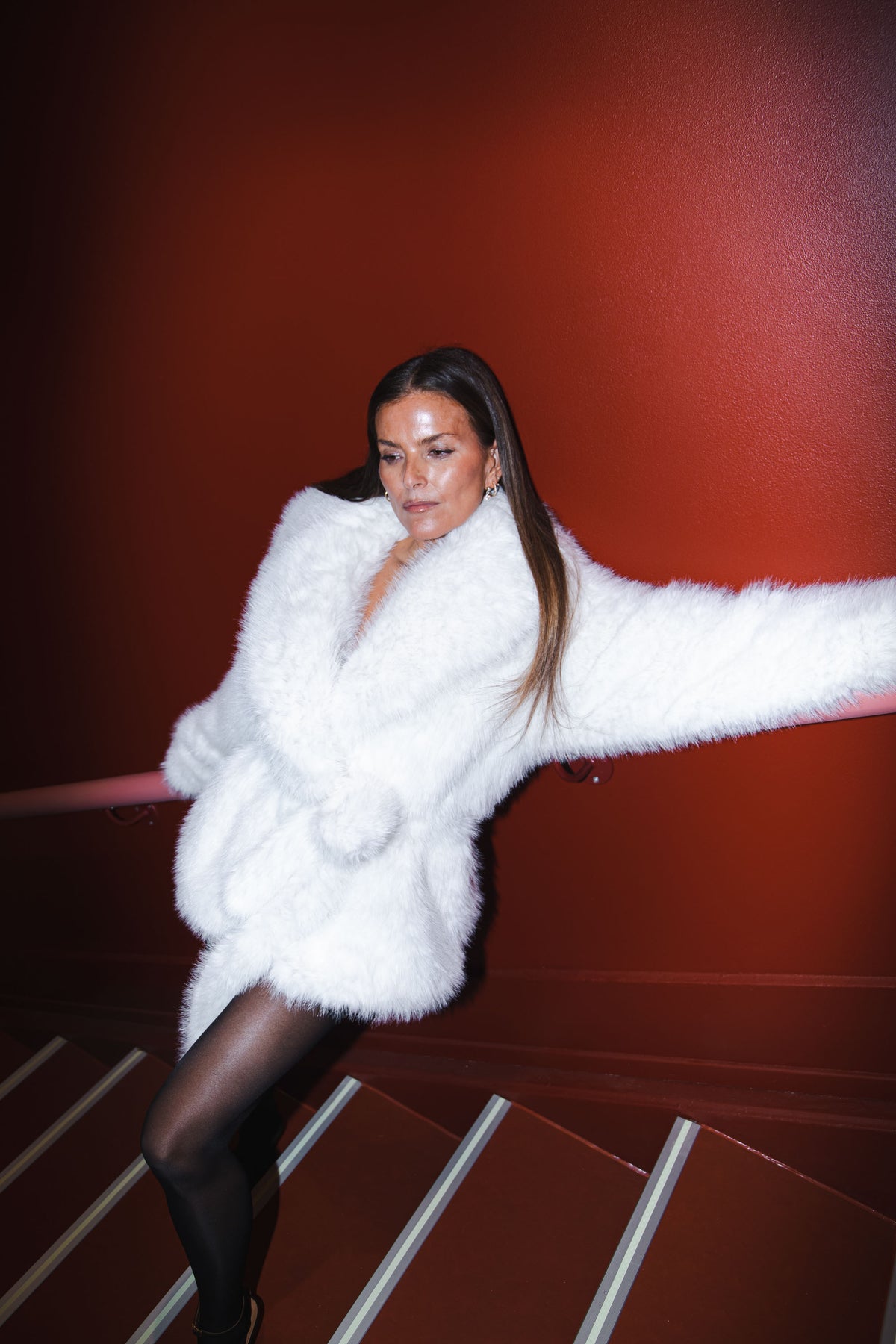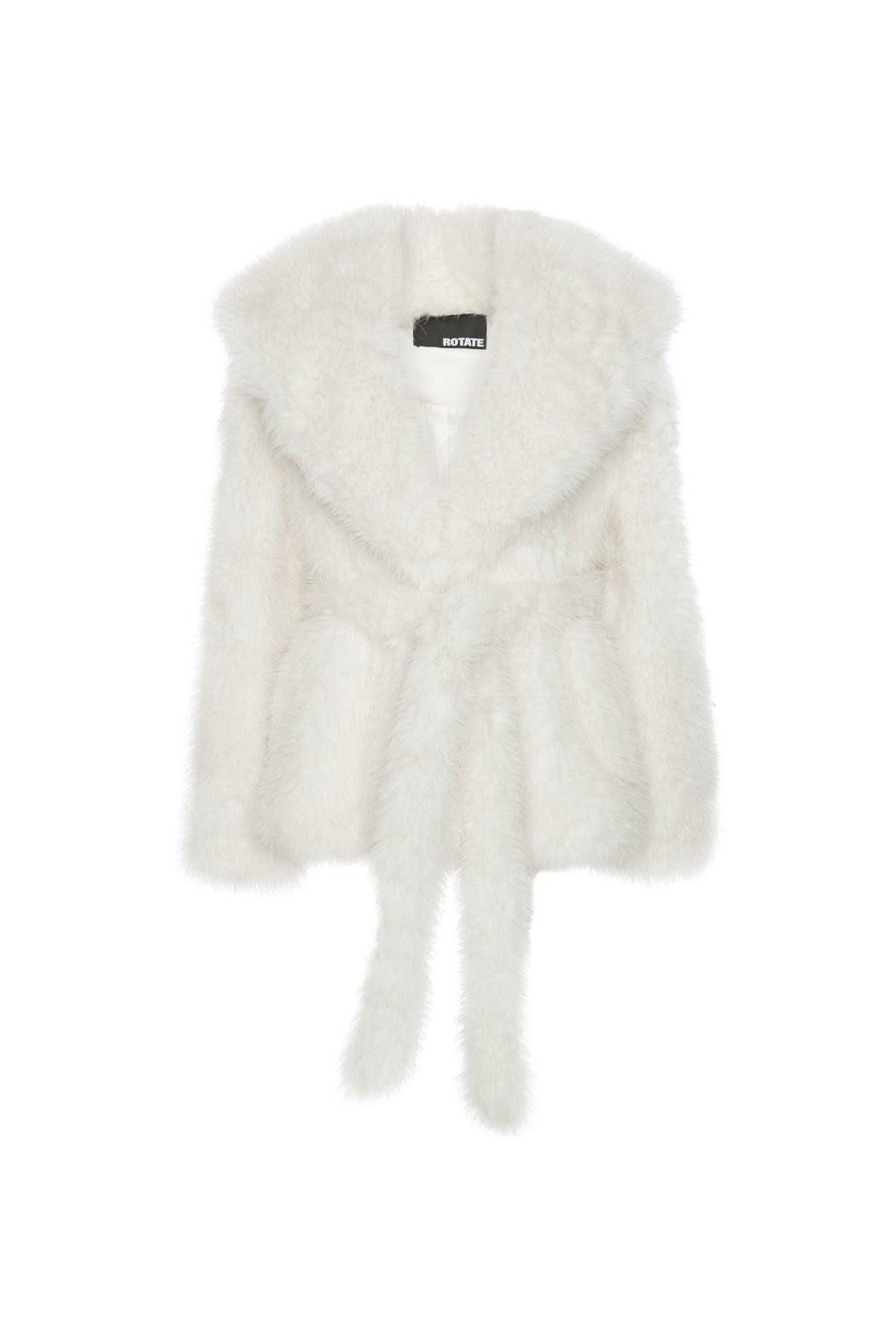 Faux Fur Short Jacket fra ROTATE Birger Christensen. En glamorøs, kort jakke i hvit fuskepels som gir antrekket en luksuriøs følelse. Jakken har en myk, fluffy tekstur, markert krage og belte i livet som fremhever fasongen. Perfekt over både kjoler og hverdagsantrekk når du vil tilføre en chic statement-look.