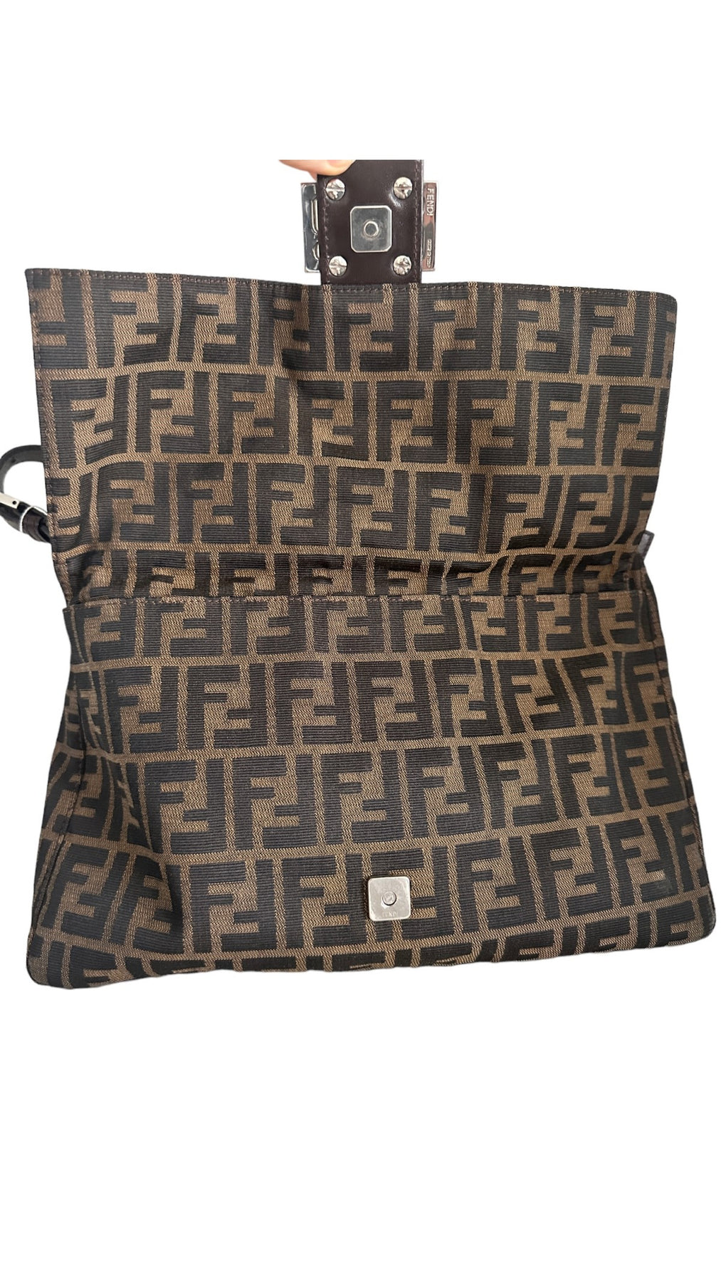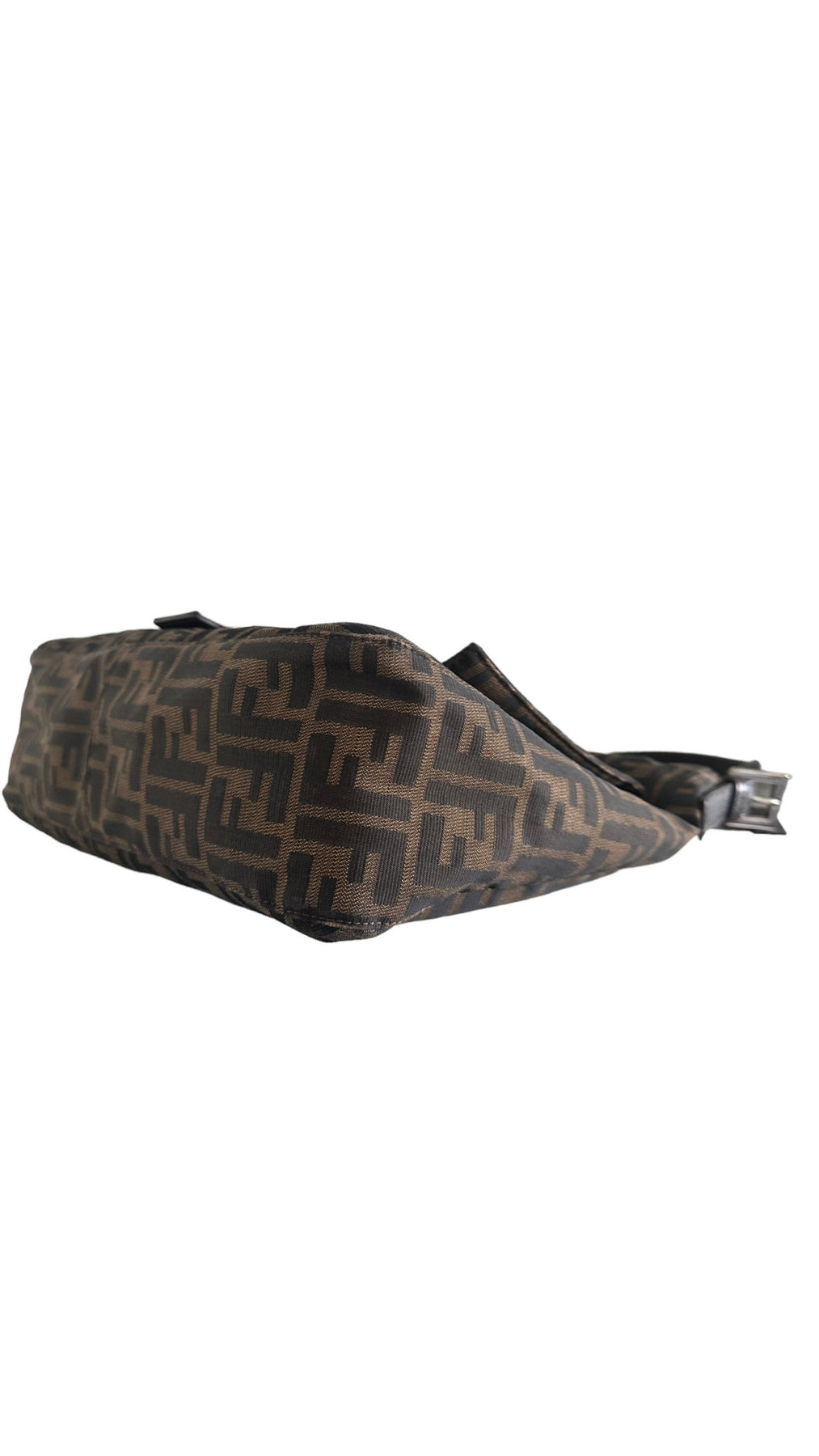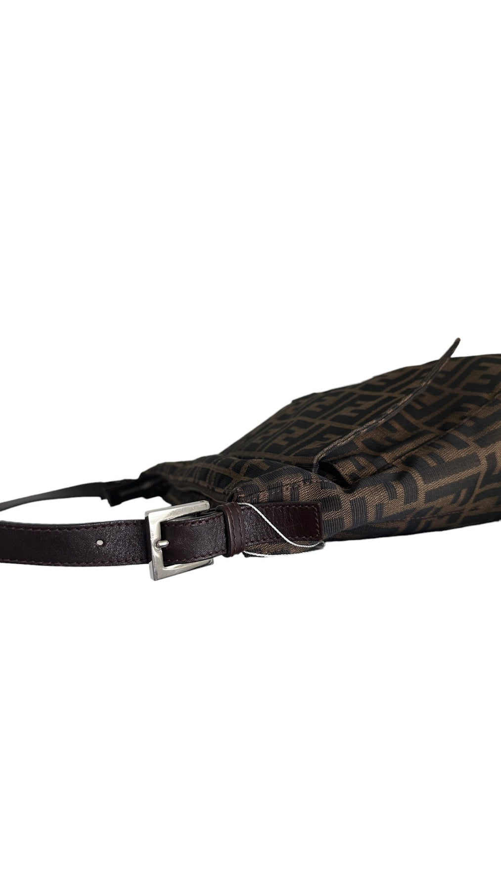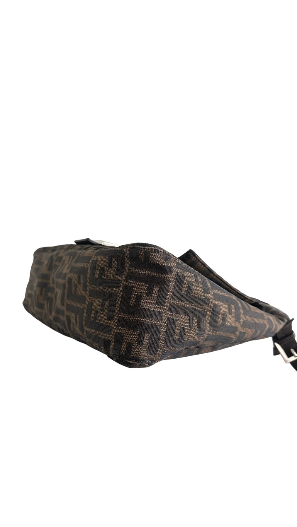 Fendi Vintage Baguette Bag er en ettertraktet klassiker og et ikonisk symbol på 90- og 2000-tallets luksusmote. Denne modellen kommer i den karakteristiske brune FF-monogramduken med sølvfarget hardware – et design som aldri går av moten.