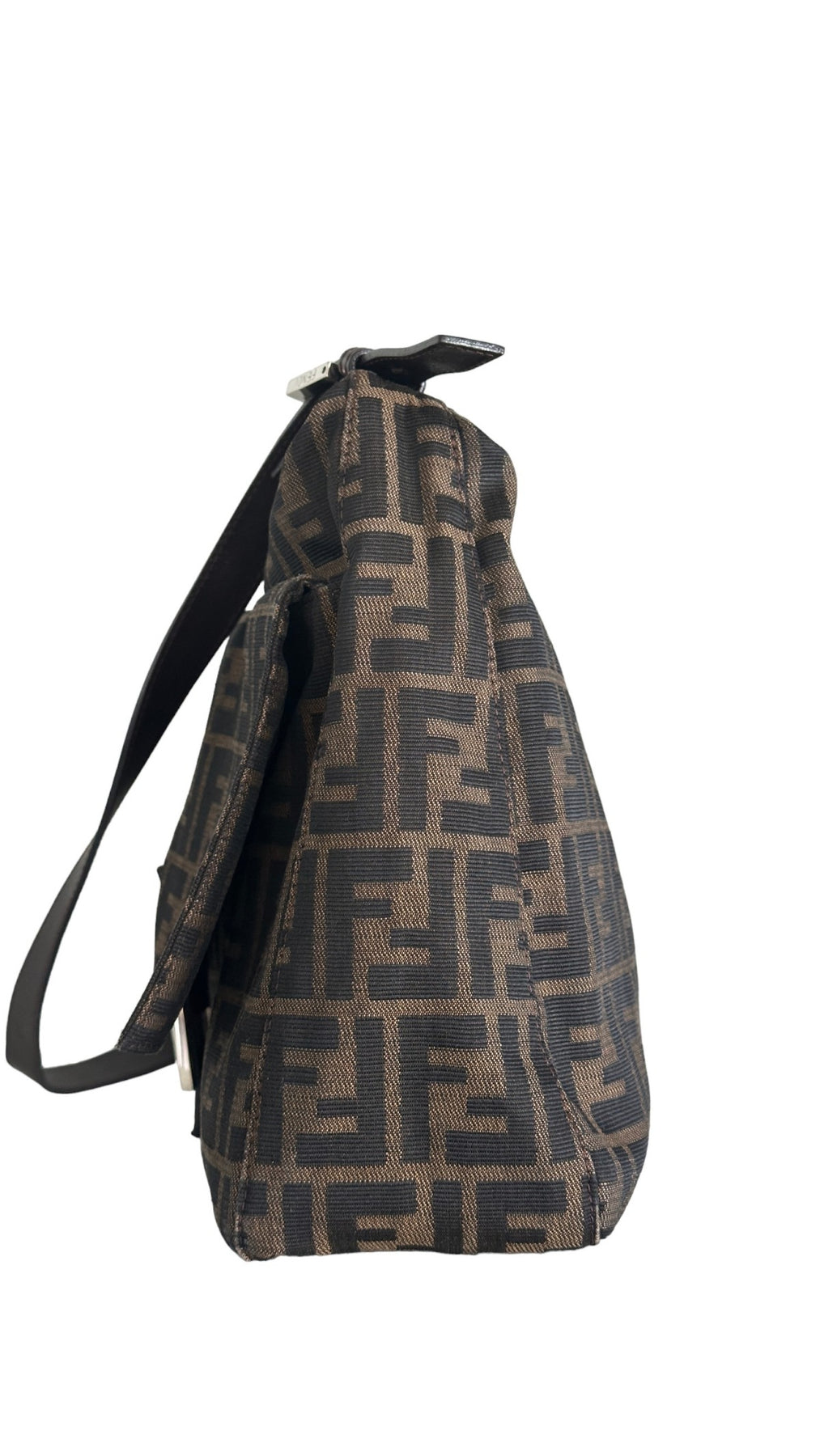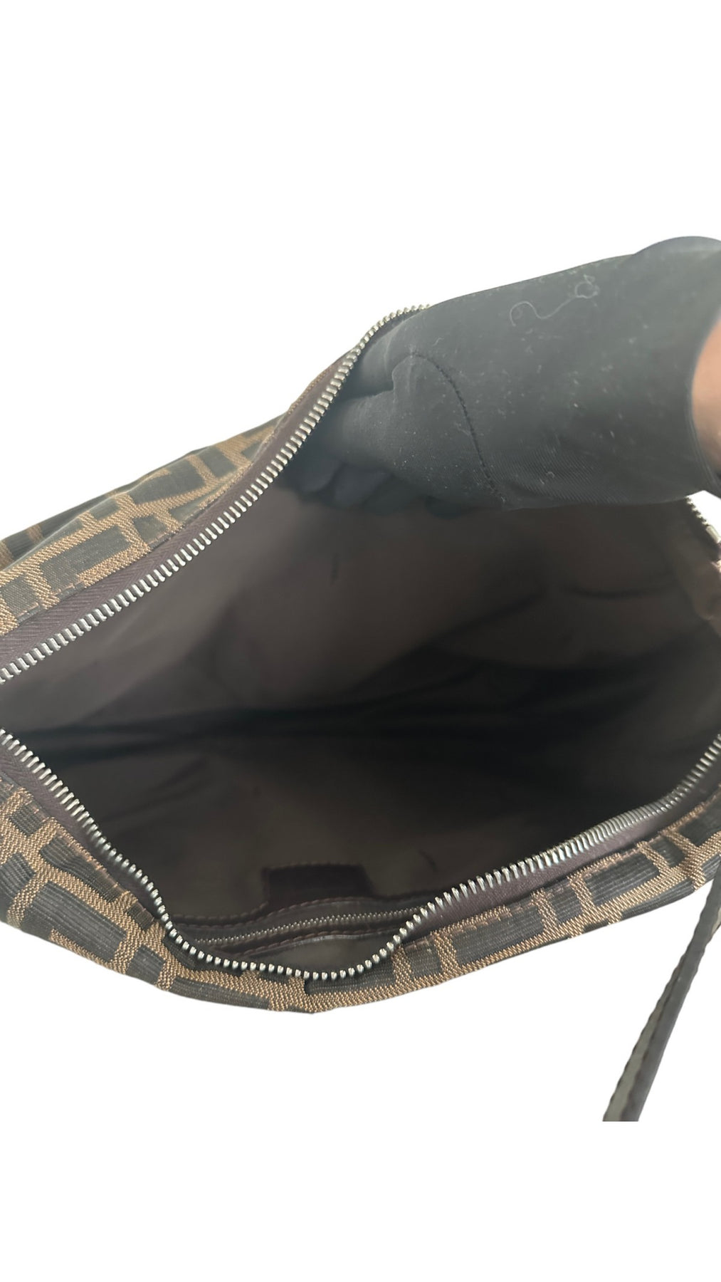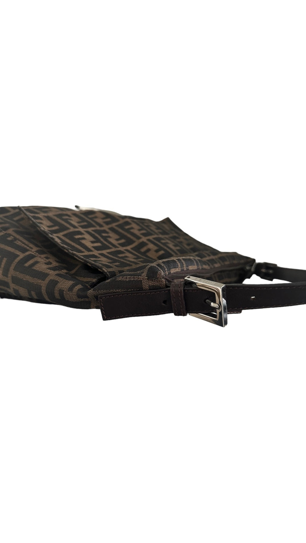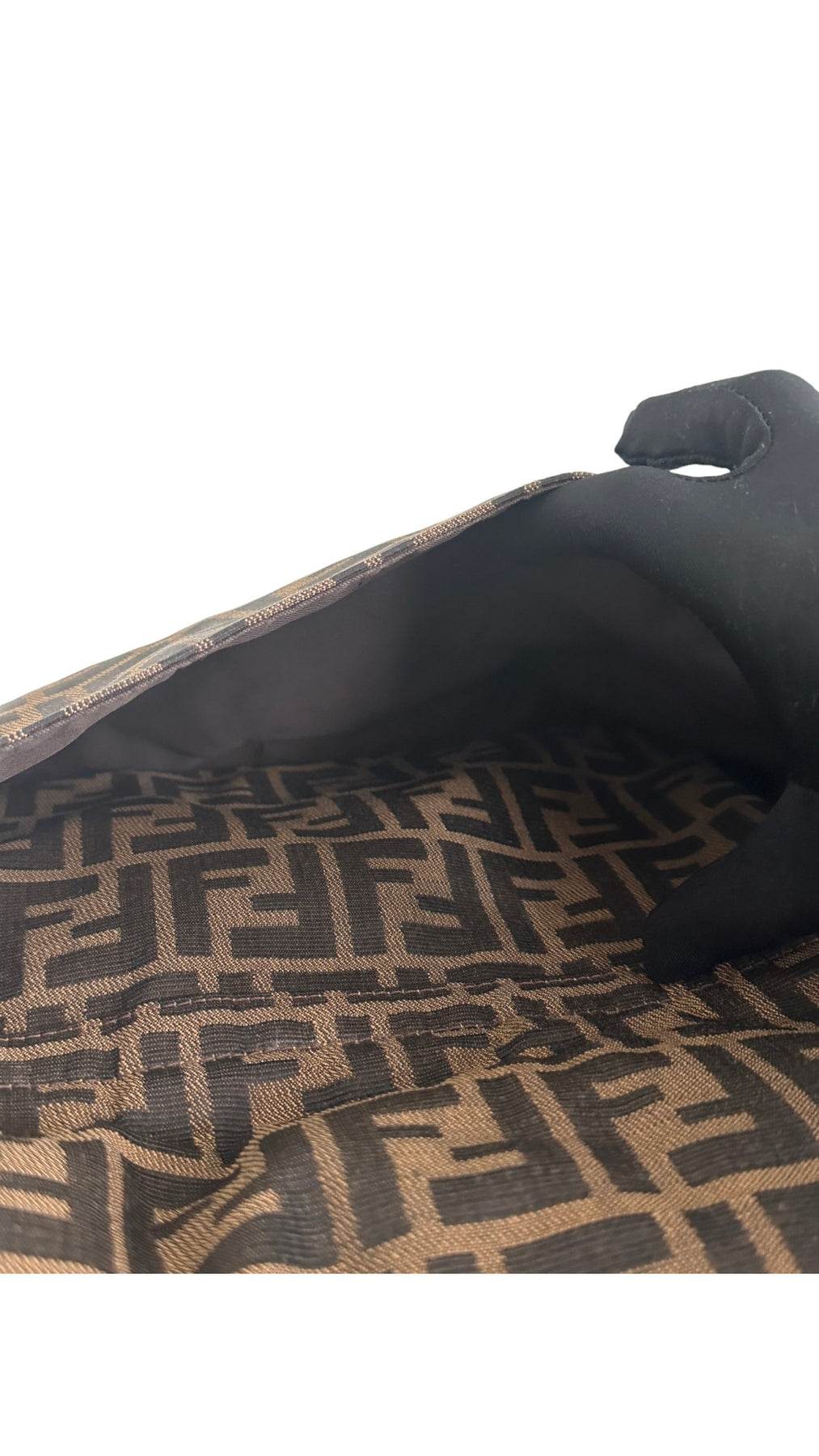 Fendi Vintage Baguette Bag er en ettertraktet klassiker og et ikonisk symbol på 90- og 2000-tallets luksusmote. Denne modellen kommer i den karakteristiske brune FF-monogramduken med sølvfarget hardware – et design som aldri går av moten.