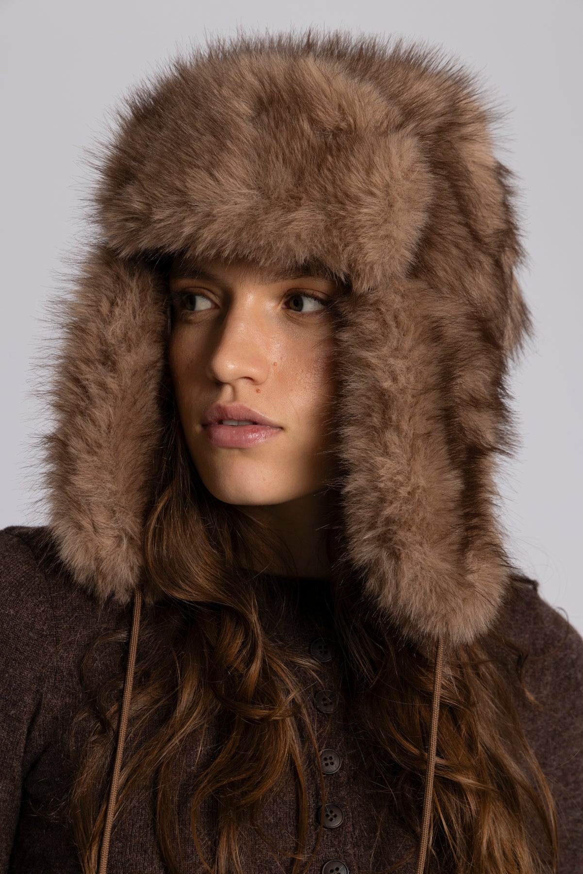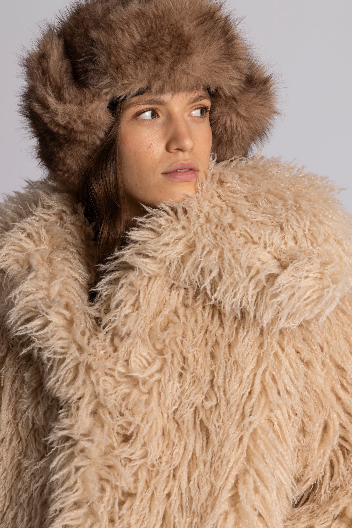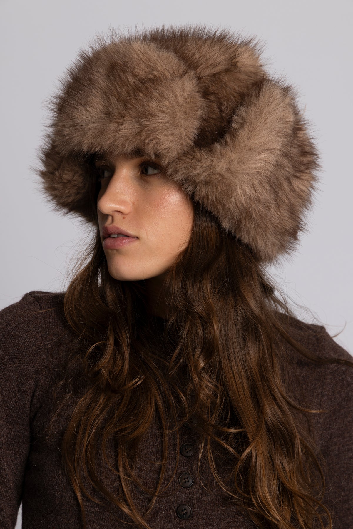 Frank Faux Fur Grandpa Hat fra VILLOID av Polliani. Frank Faux Fur Grandpa Hat er den ultimate vinterluen med retroinspirert uttrykk. Laget i myk faux fur med fyldig tekstur som holder deg varm gjennom kalde dager, samtidig som den gir antrekket et kult og luksuriøst preg. Den varme brune tonen og klassiske passformen gjør den både tidløs og trendy.