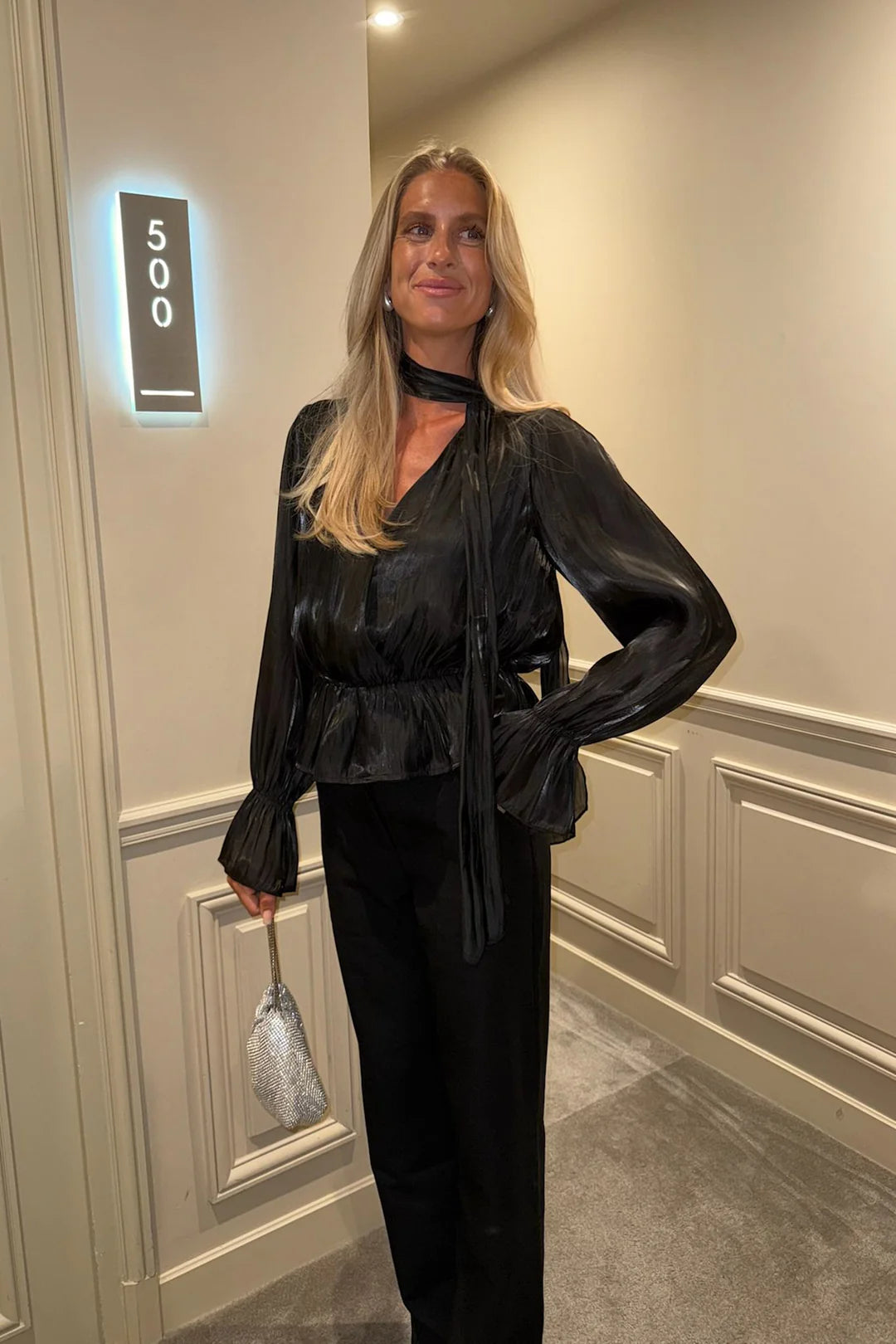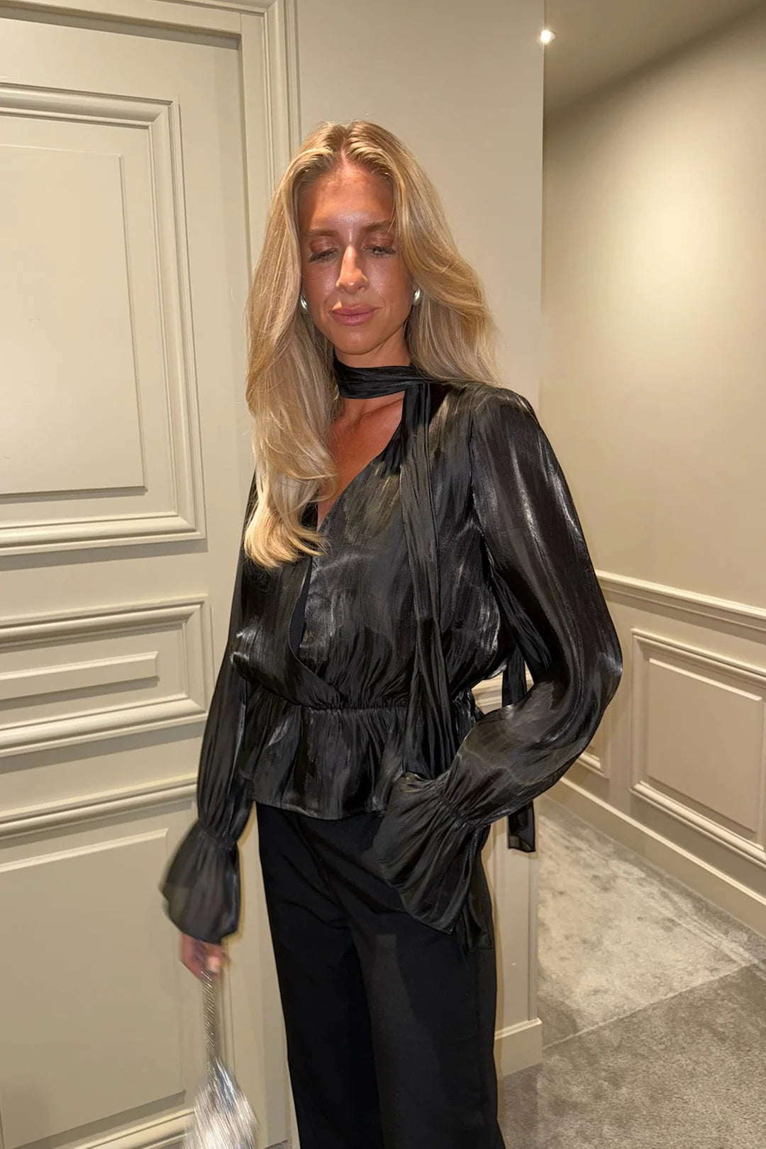 Freyaic Shirt fra BYIC. En elegant satengbluse med omslagssnitt og knytebelte i livet som fremhever figuren på en flatterende måte. Blusen har v-utringning, lange ermer med plisserte mansjetter og en glansfull overflate som gir et eksklusivt uttrykk. Freyaic Shirt kombinerer tidløs femininitet med moderne detaljer og passer perfekt til både hverdag og kveld.