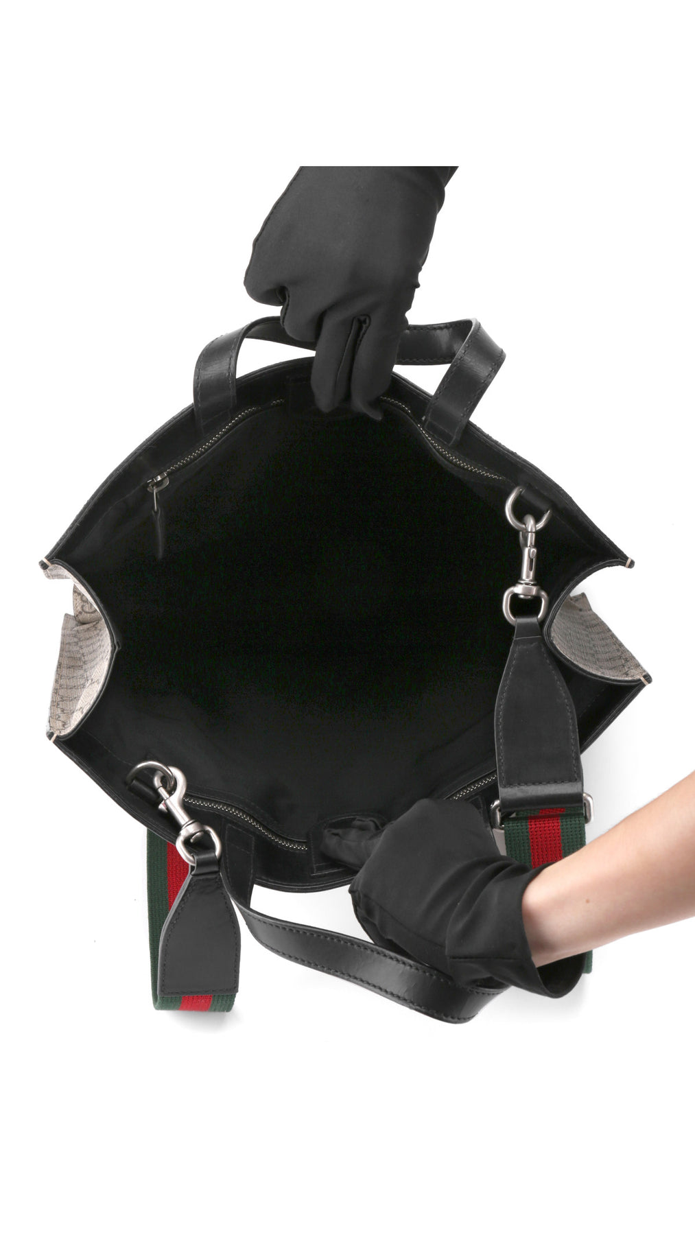 Farge: Beige GG Supreme canvas med sorte detaljer og rødgrønn webstropp