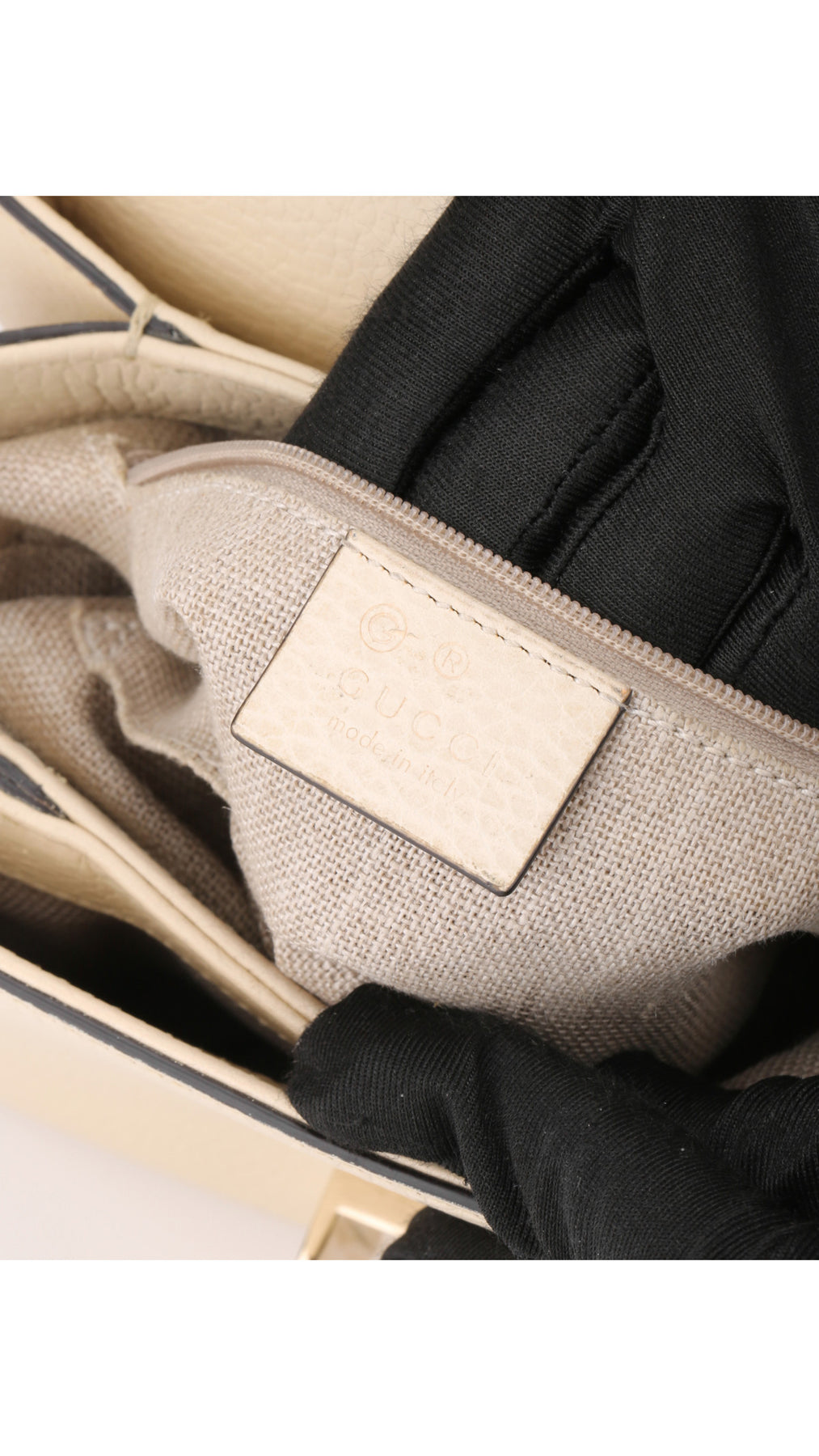 Farge: Lys beige/kremhvit med gullfarget hardware