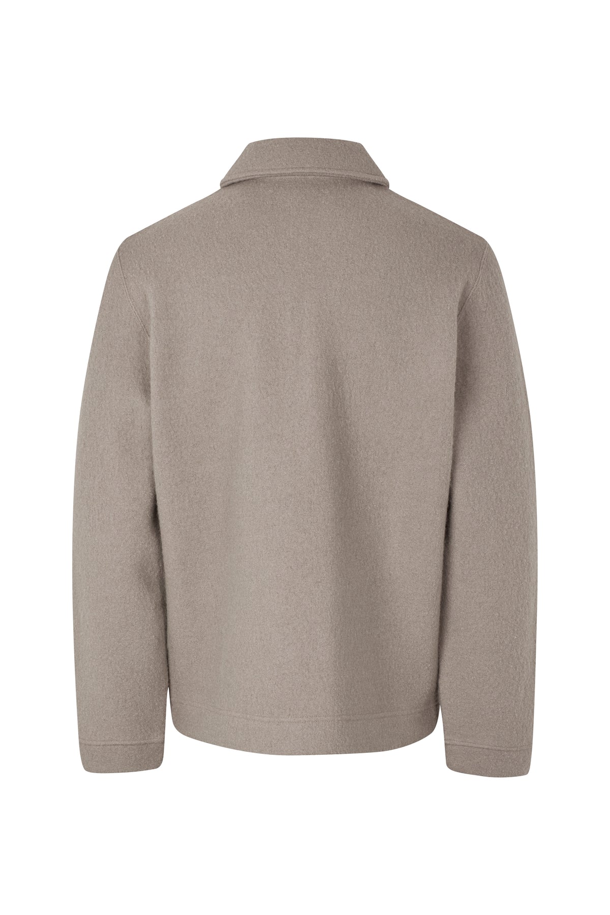 Jakken er laget i en tovet ullkvalitet som både føles myk og gir god varme på kjølige dager. Den har en rett, normal passform som gjør den ideell for lag-på-lag-styling. Fargen "Elephant Skin" er en anvendelig og sofistikert gråbeige nyanse som passer til det meste.