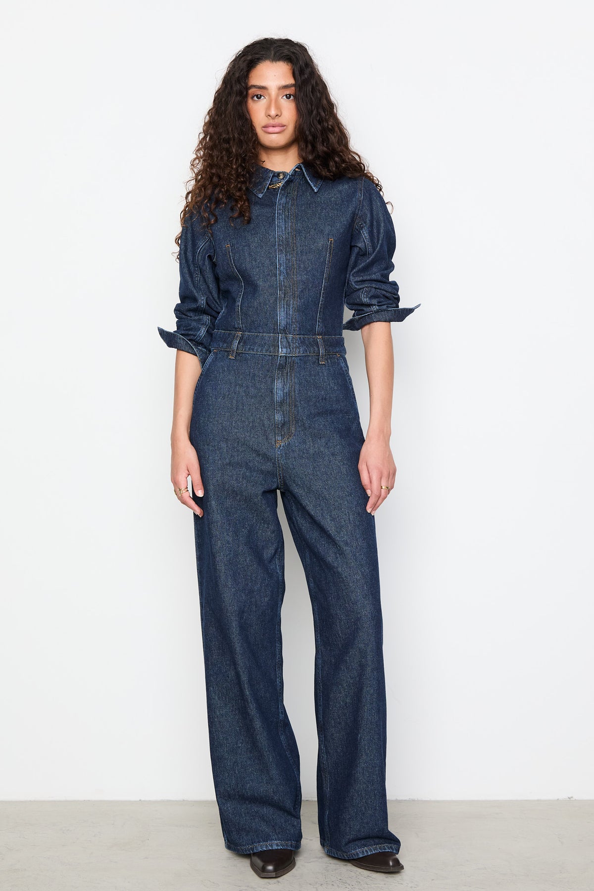 Jordan Jumpsuit fra Camilla Pihl. Superkul jumpsuit fra Camilla Pihl. Jordan Jumpsuit er designet for å sitte stramt i midjen med justerbar linning. Jumpsuiten har vide ben og innsnitt på brystet for en feminin look. Klassisk krage og glidelås foran.