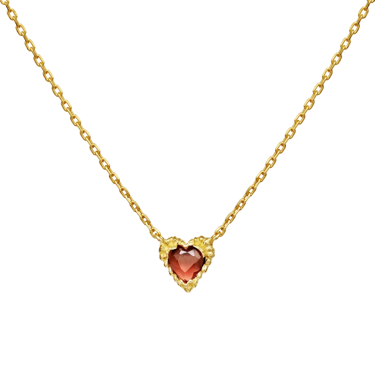Leoni Necklace fra Maanesten. Nydelig smykke fra Maanesten med romantiske detaljer. Leoni Necklace har et hjerteformet anheng med rosa granatsten som fanger essensen av lidenskap og kjærlighet i alle sine vakre fasetter.