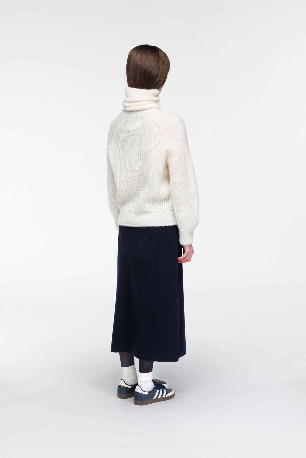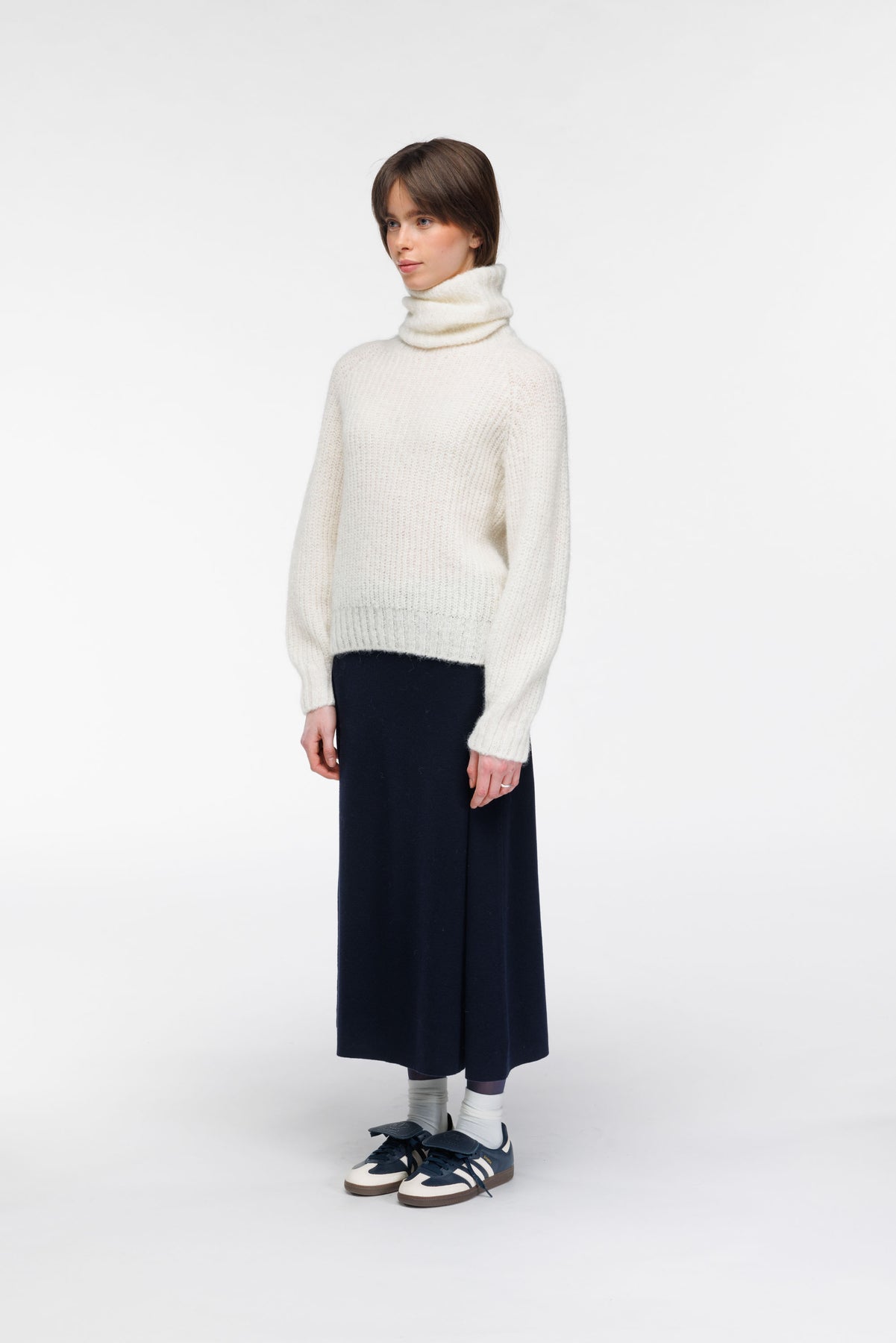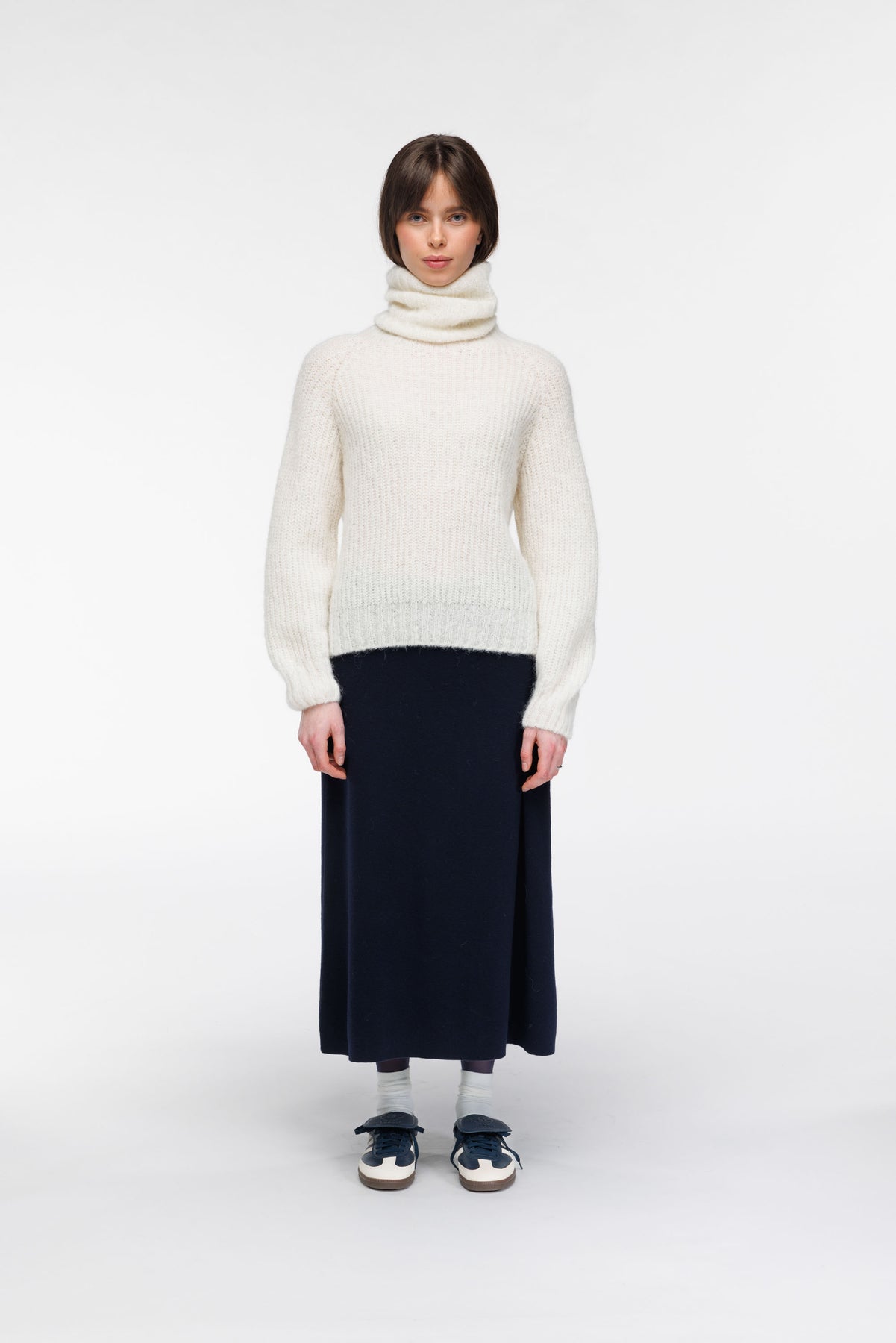 Lerke Genser Høy Hals fra Woodling. Lerke Genser Høy Hals er en myk og tidløs strikkegenser som gir et avslappet men samtidig sofistikert uttrykk. Patentstrikk gjør at den er både superlett og chunky på samme tid.
