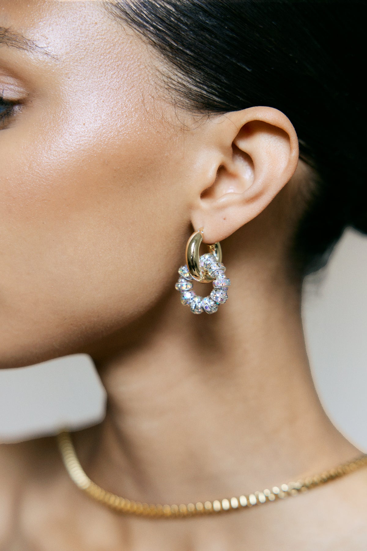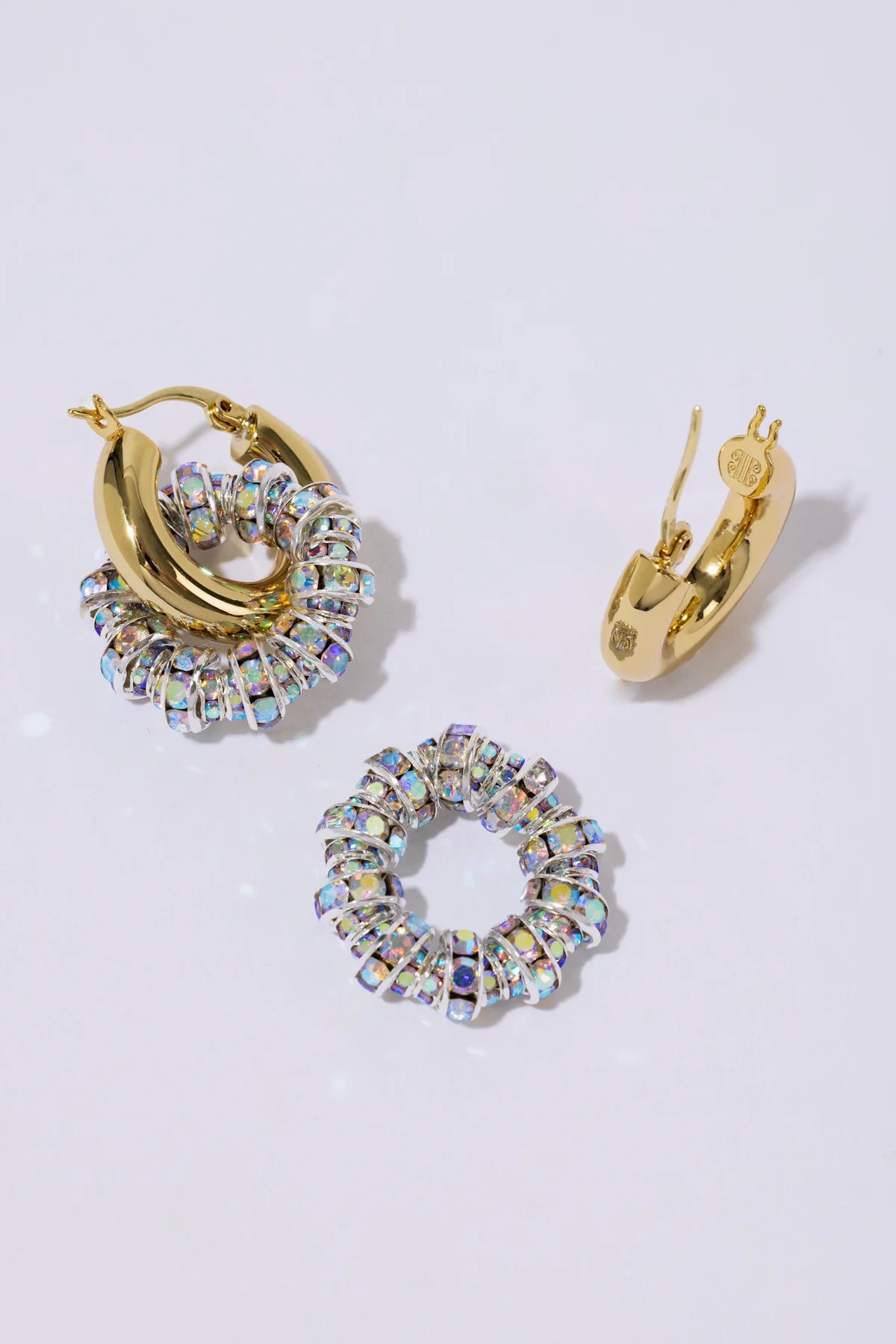 Les Créoles Petites fra Pearl Octopuss.y. Disse øreringene, som er et Pearl Octopuss.y-signatur, gjenspeiler merkets designfilosofi ved å balansere det dristige og det sofistikerte. De sølvringene kan brukes alene for et snev av stilren eleganse, eller med de glitrende krystalldonutene festet for å løfte ethvert antrekk til et nytt nivå.