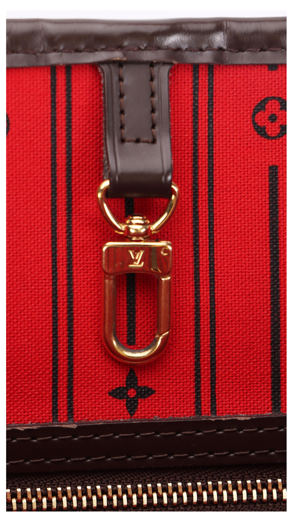 Farge: Brun Damier Ebene canvas med rødt fór og gullfarget hardware