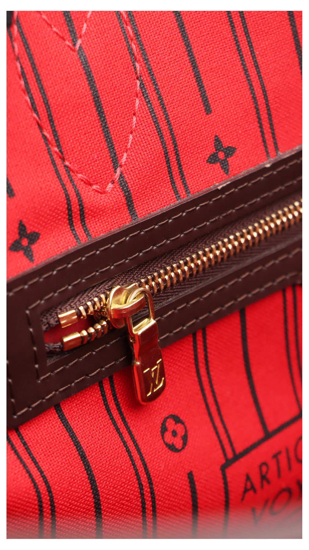 Louis Vuitton Neverfull GM er en av husets mest ikoniske og populære tote-modeller. Den kombinerer tidløs eleganse med praktisk funksjonalitet og er laget i klassisk Damier Ebene canvas med skinntrimmer og gullfarget hardware.