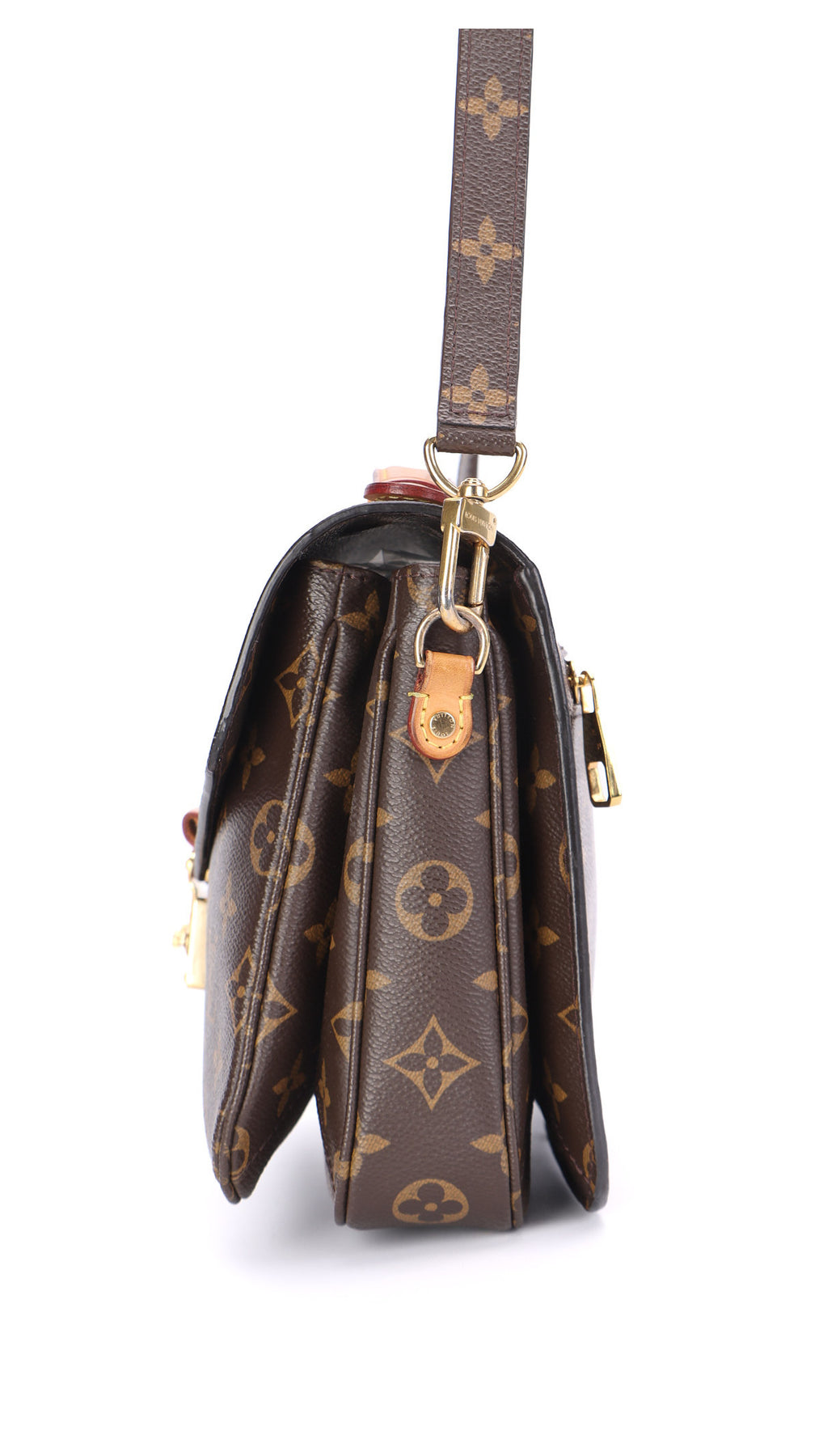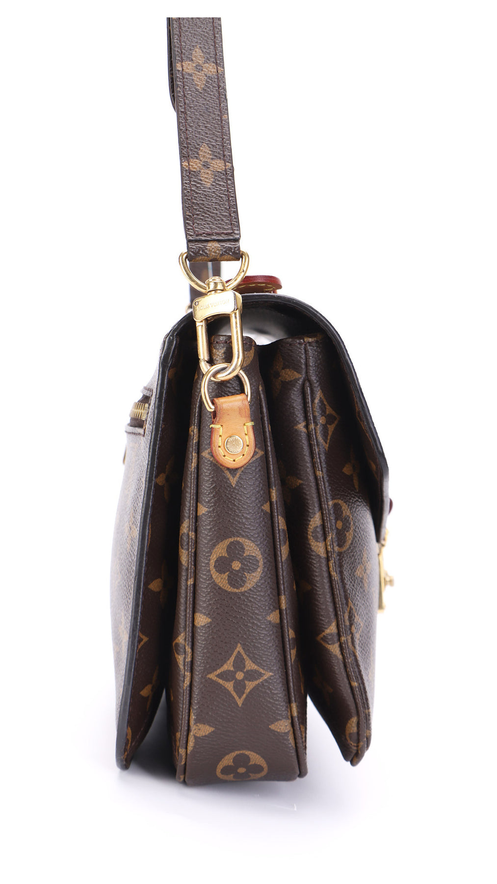 Louis Vuitton Pochette Métis er en av merkets mest ettertraktede modeller – en perfekt kombinasjon av klassisk eleganse og smart funksjonalitet. Denne utgaven er laget i ikonisk Monogram Canvas med detaljer i naturel vachetta-skinn og gullfarget hardware, som gir vesken et tidløst og luksuriøst uttrykk.