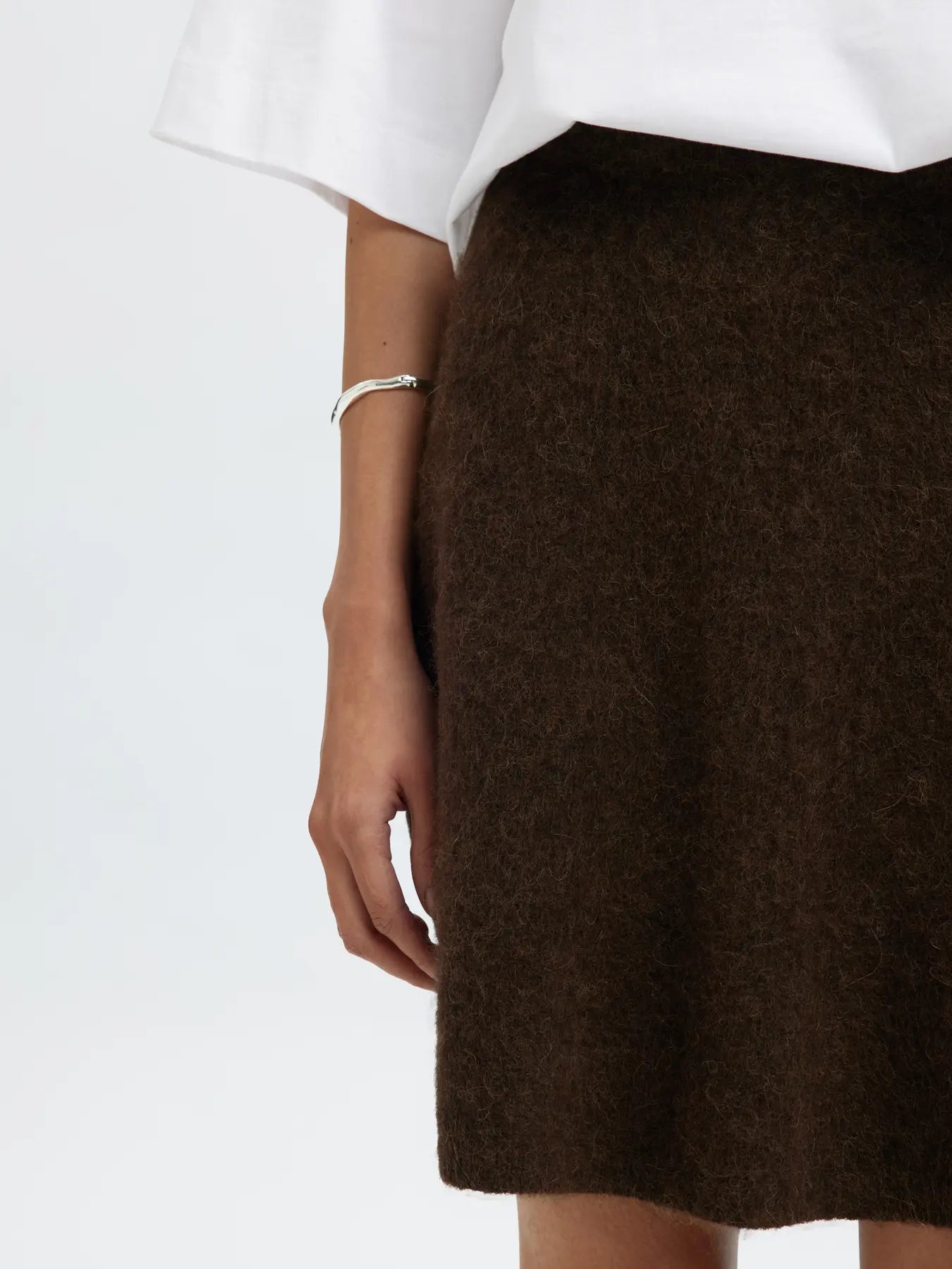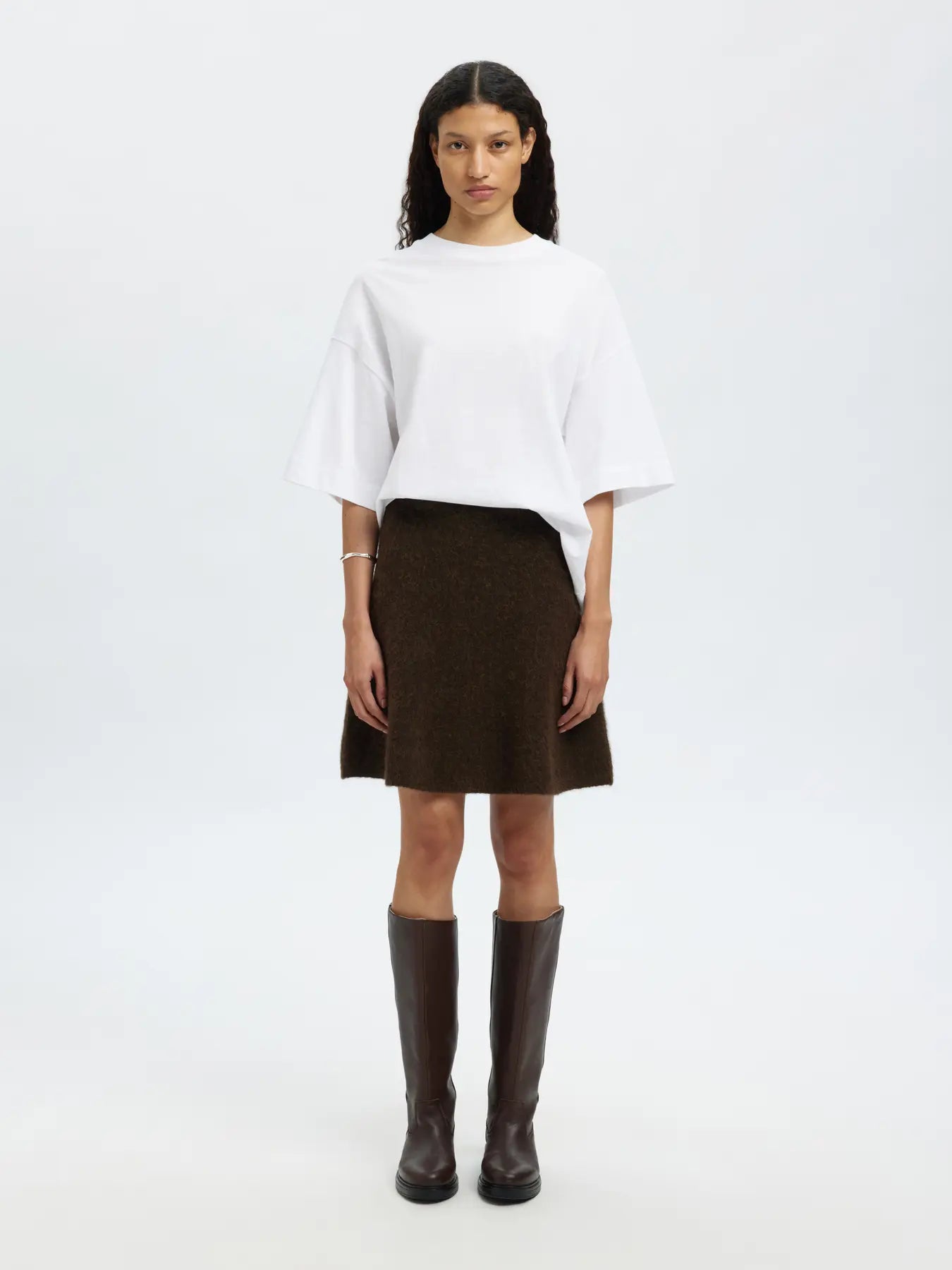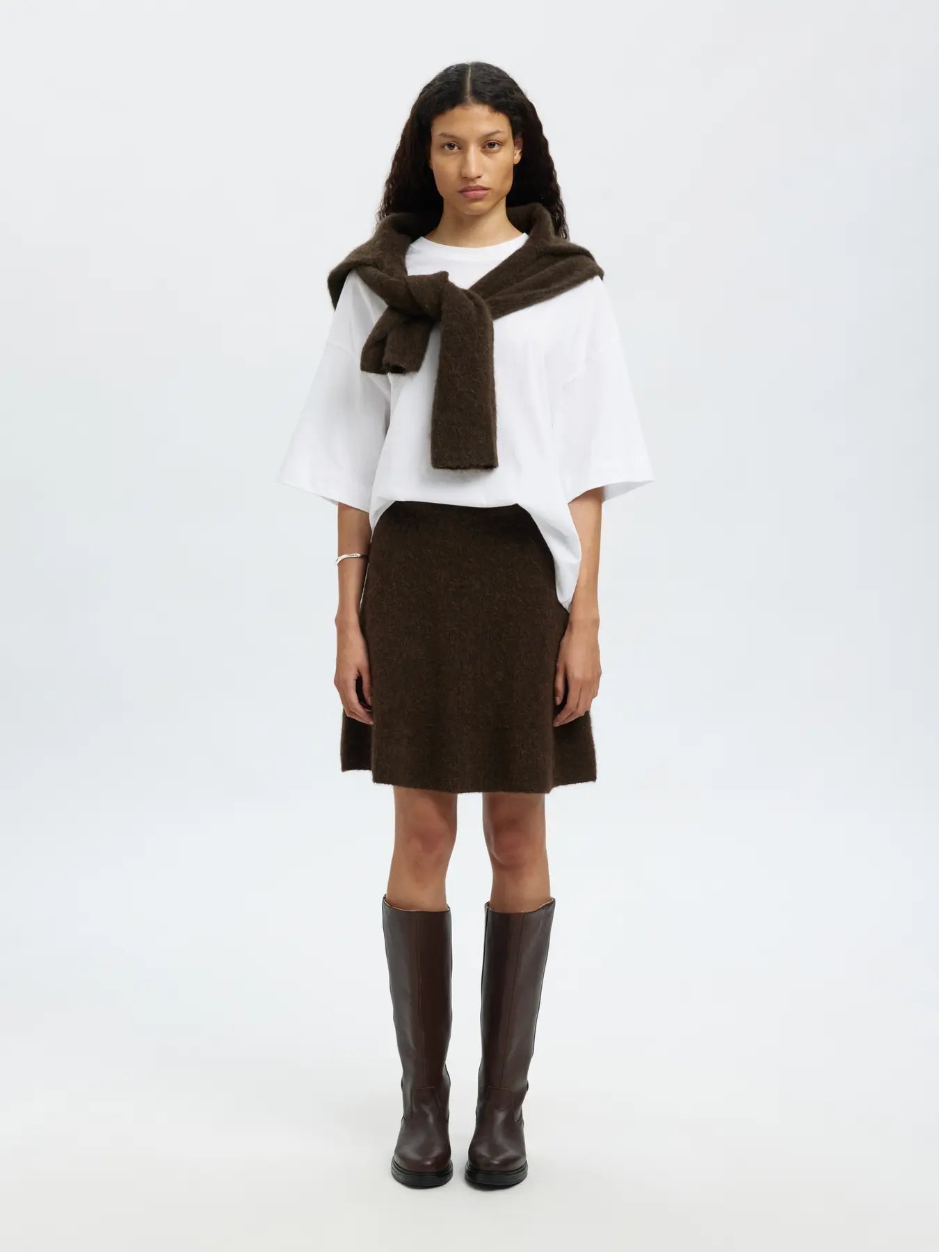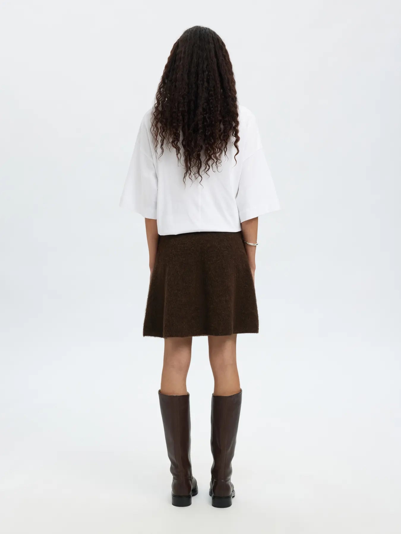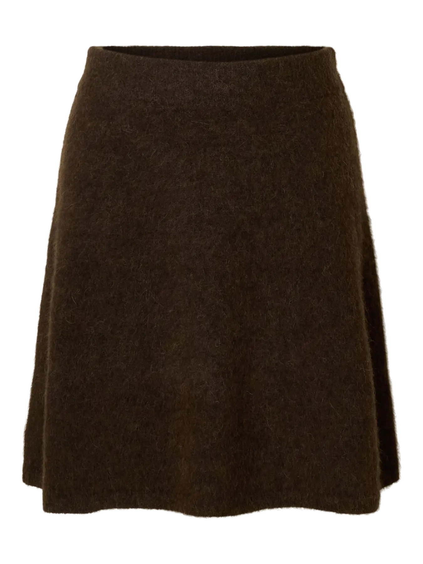 Lulu Brushed Hw Knit Skirt fra Selected Femme. En myk og strukturert strikket skjørt med børstet finish og rett fasong. Skjørtet har høyt liv, elastisk linning og faller i en flatterende A-form. Billie Hw Knit Skirt kombinerer komfort og minimalistisk eleganse – perfekt gjennom sesongen.