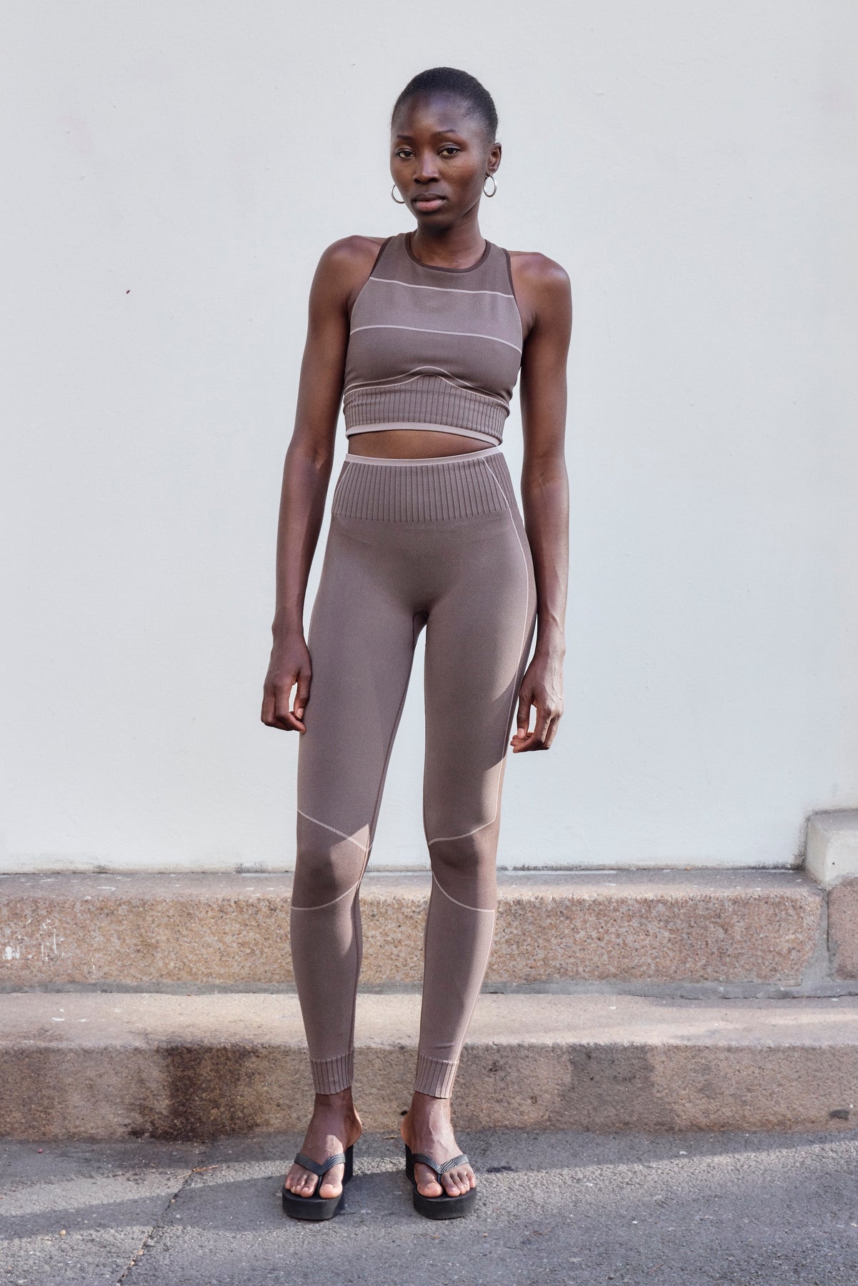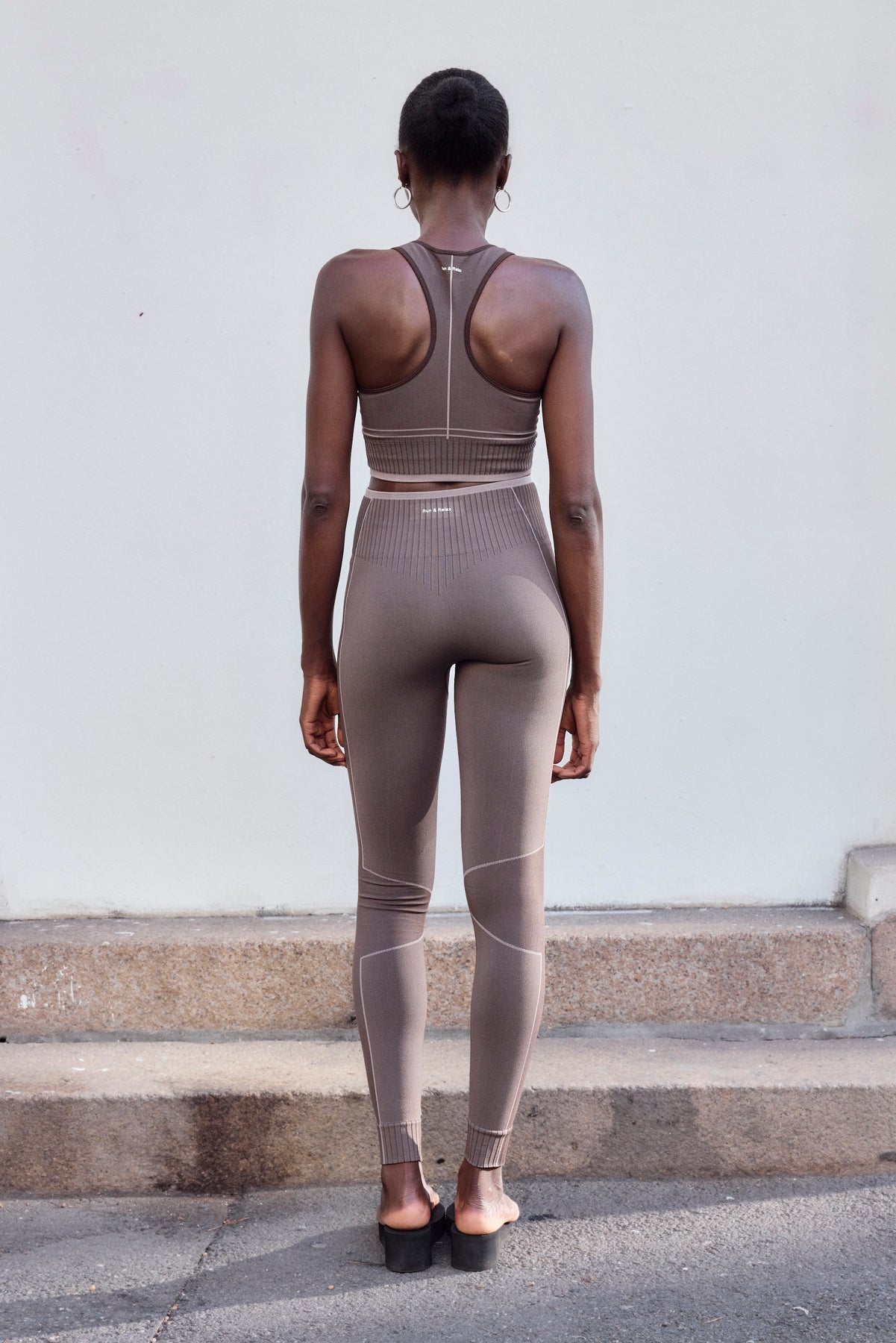 Mapping Tights fra Run & Relax. Mapping Tights er laget av et tykkere, sømløst stoff med kationisk garn, og blander ribbede kanter og fargeeffekter for å skape et dynamisk utseende. Laget med resirkulerte Q-NOVA®-materialer, balanserer disse tightsene funksjon, komfort og stil – ideelle for yoga, treningsøkter eller bare for å være i bevegelse.