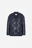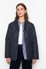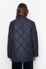 Marion Quilted Jacket fra Camilla Pihl. Klassisk quiltet jakke i tidløs marineblå fra Camilla Pihl. Marion har et elegant rutemønster, lett vattering og myk, blank finish som gir en sofistikert look. Den rette passformen og moderne kragen gjør den perfekt både til hverdags og over kjoler. Jakken lukkes med trykknapper, og har praktiske sidelommer.