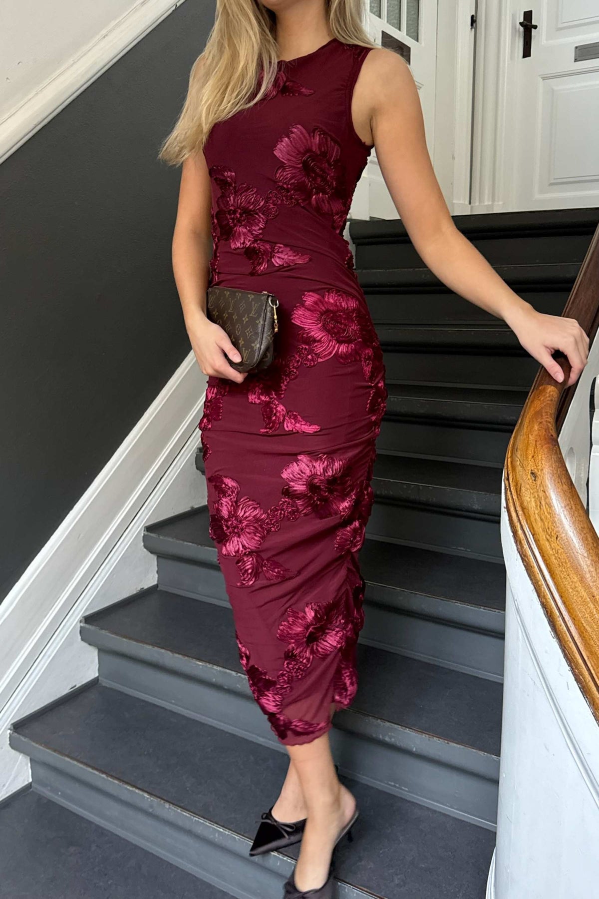 Miraic Mesh Dress fra BYIC er en elegant og iøynefallende kjole, perfekt for sesongens store anledninger. Kjolen har en ettersittende passform med strategiske rynkedetaljer som skaper en utrolig flatterende silhuett. Den er laget i et delikat mesh-stoff i en dyp bordeaux-farge, med et mykt fôr.