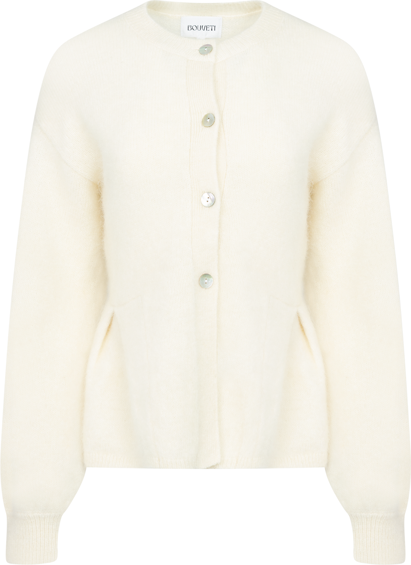 Molly Mohair Cardigan fra BOUVETI. Myk og feminin cardigan i luksuriøs og myk børstet mohairblanding med delikat struktur. Molly Mohair Cardigan har rund hals, brede ribbekanter og lett innsving i midjen som gir en flatterende silhuett. Perlemorsknappene foran tilfører et elegant og tidløst preg.