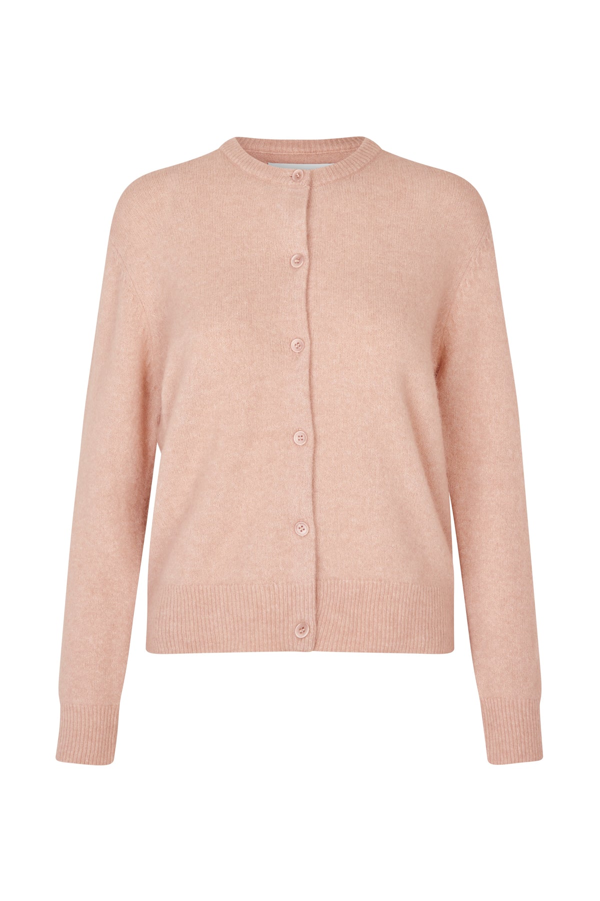 Nor Short Cardigan 7355 fra Samsøe Samsøe. En tidløs og klassisk cardigan i en nydelig rosatone, strikket i en utrolig myk og varm blanding av alpakka og merinoull. Cardiganen har en allsidig og lett anvendelig stil som passer til det meste.