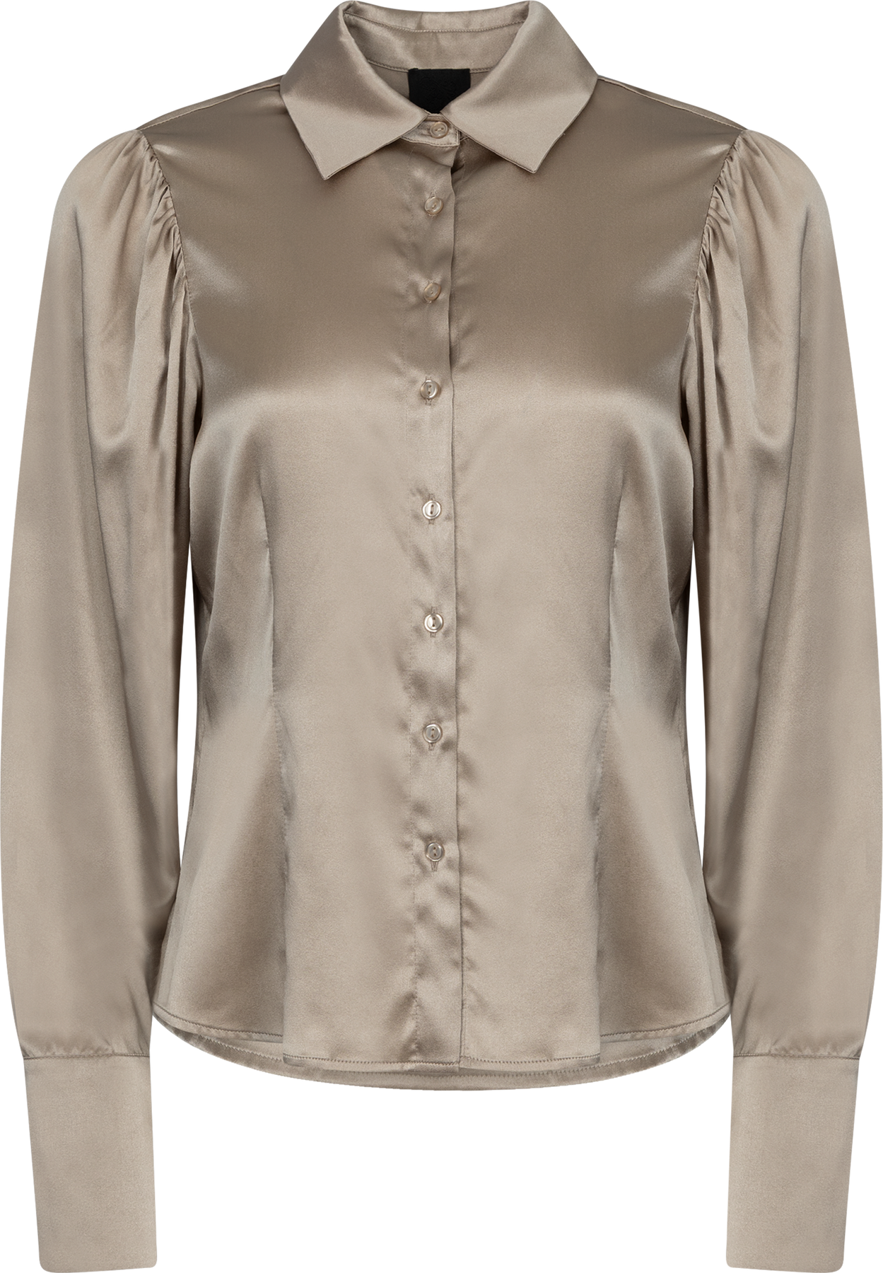 Pixie Blouse fra Ane Mone. Pixie Blouse fra Ane Mone er en elegant satengbluse som løfter ethvert antrekk med sitt sofistikerte uttrykk. Den har klassisk krage, knappelukking i front og lange ermer med brede mansjetter. Den glansfulle finishen gir et tidløst og luksuriøst preg – perfekt både til dressbukser og skjørt.