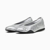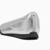 Puma Catch Soleil Ballerina Metallic Whisper er en moderne og sporty tolkning av den klassiske ballerinaskoen. Denne iøynefallende modellen kombinerer feminin eleganse med et futuristisk uttrykk gjennom sin overdel i skinnende metallisk sølv, perfekt for å løfte ethvert vår- og sommerantrekk. Skoen har en slank og behagelig passform som enkelt kan styles til både jeans og kjoler for en avslappet, men trendy look. Med en slitesterk gummisåle får du godt grep og optimal komfort hele dagen, mens den ikoniske Puma-logoen i sort på tåen og de subtile sømmene gir skoen et autentisk og stilsikkert preg.