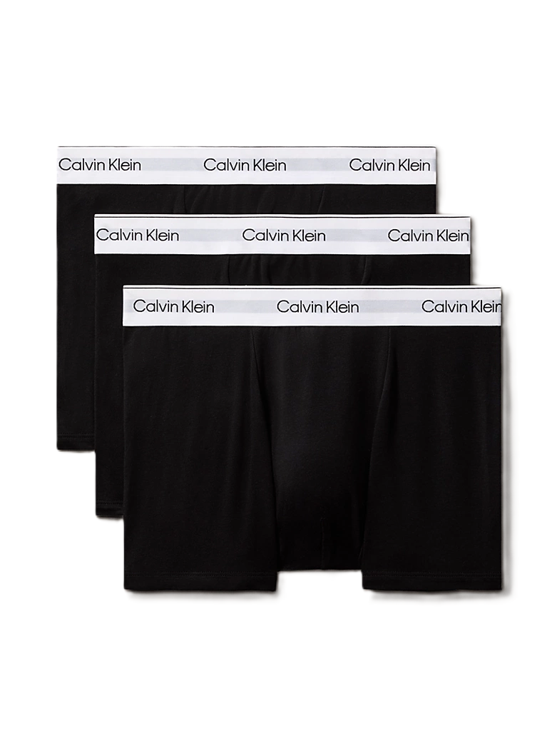 Relaxed Fit Trunk 3PK fra Calvin Klein. Ikonisk hverdagsundertøy fra Calvin Klein ICON gir perfekt passform i elastisk bomull, oppdatert med sømløse logo-elastiske kanter. Her i klassisk sort med hvit kant.