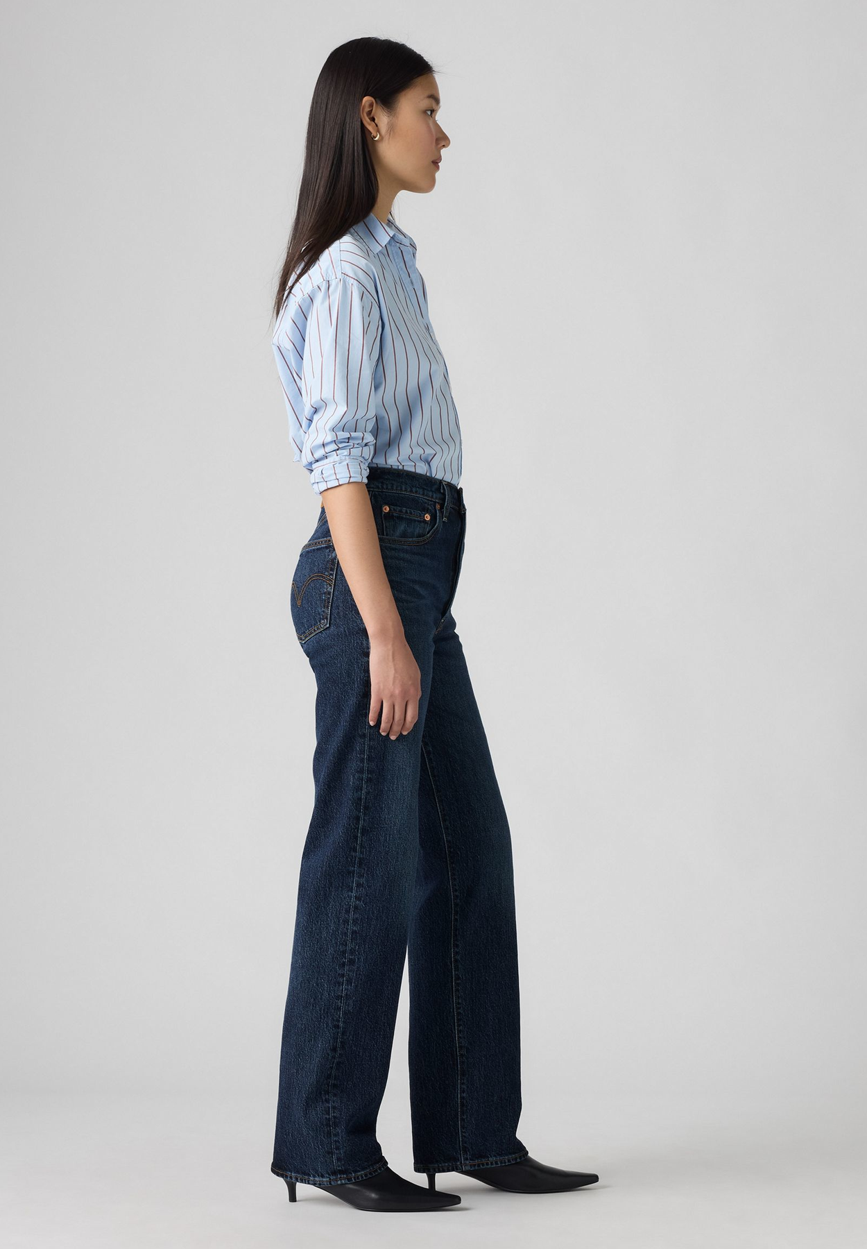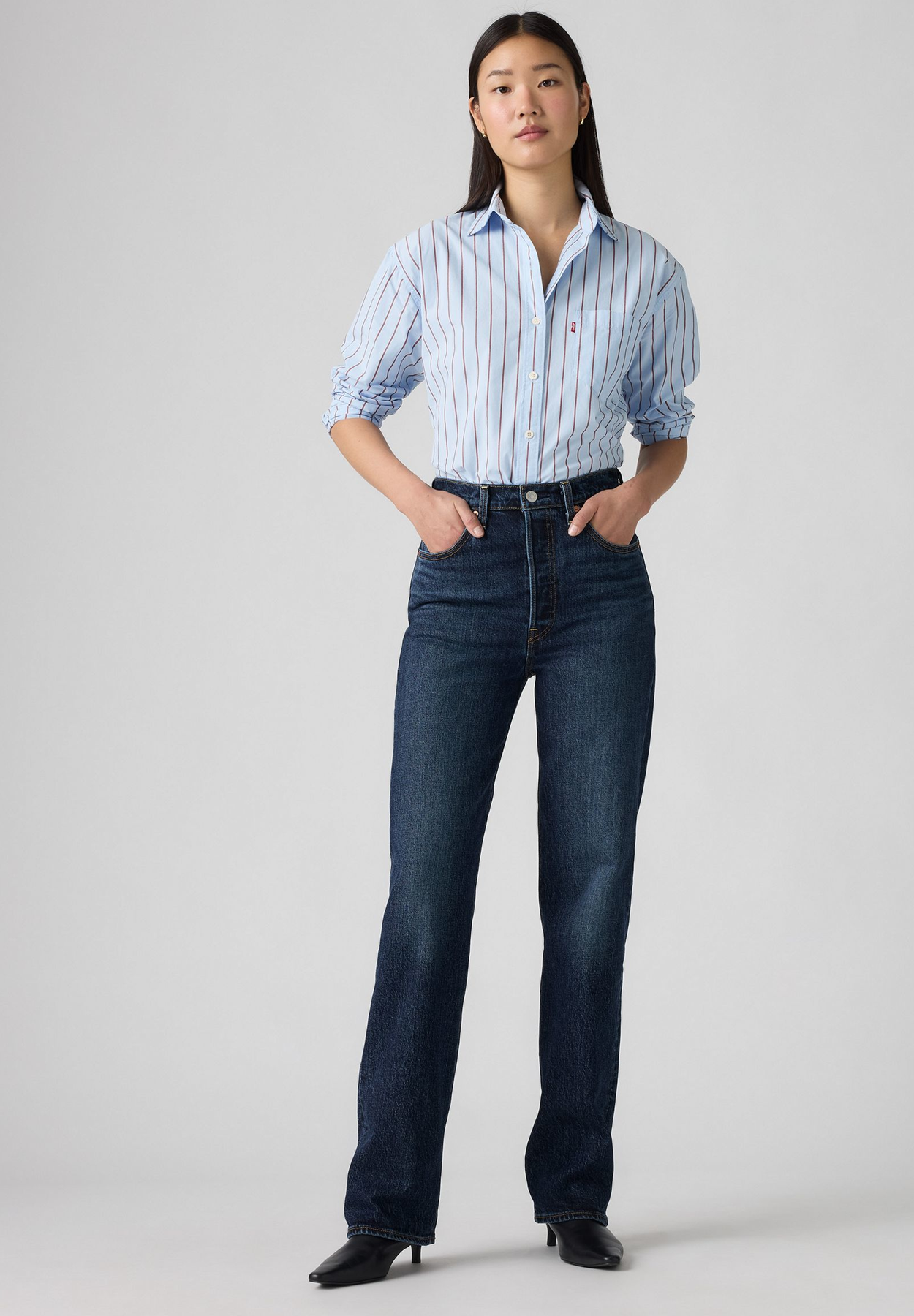 Ribcage Full-Length Jeans fra Levi's. Levi’s ikoniske Ribcage Jeans er tilbake i en ny, fullengdet versjon – og høyere enn noen gang. Med hele 30 cm høy midje fremhever denne modellen midjen og gir en flatterende, lang silhuett. Jeansen sitter tett over hoftene og faller rett fra låret og ned, noe som gir en klassisk og tidløs passform. Den dype indigovasken med lett slitasjeeffekt gir et sofistikert uttrykk som funker like godt til skjorte og boots som til en enkel tee.