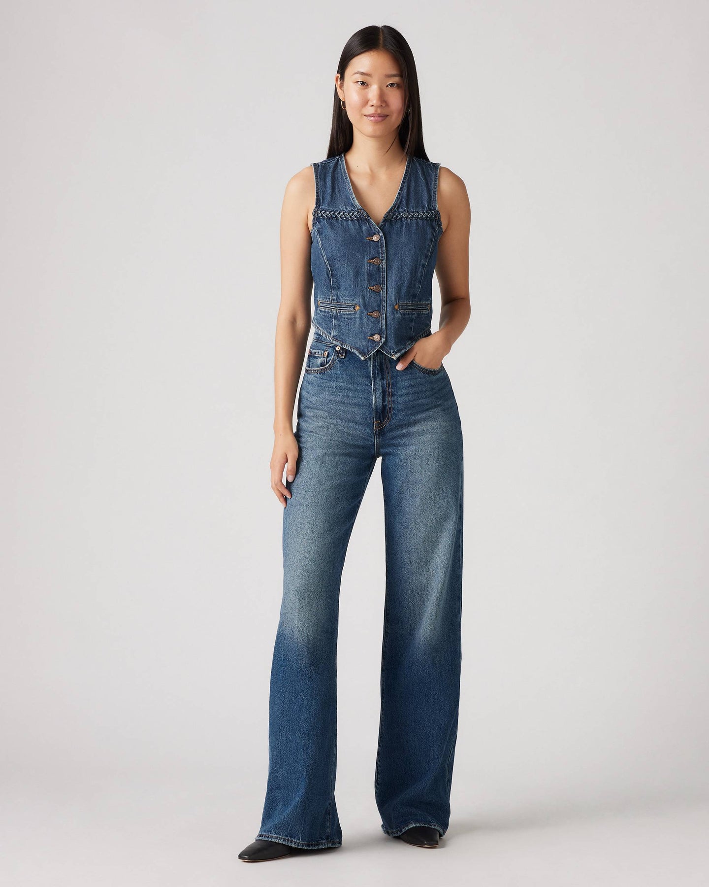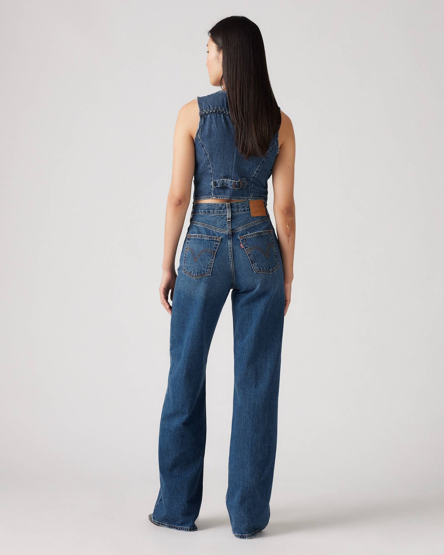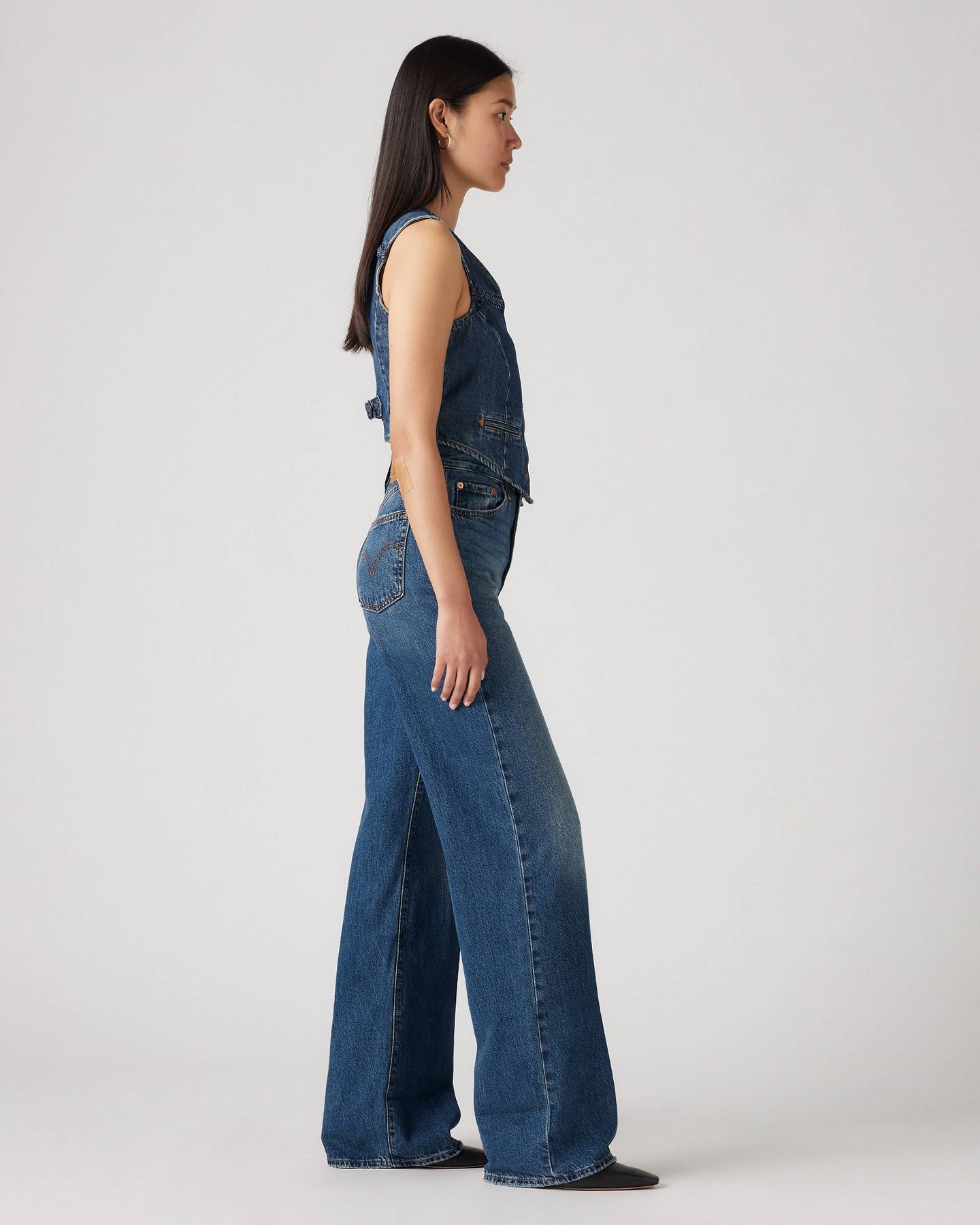 Ribcage Wide Leg fra Levis. Bestselgeren Ribcage fra Levis - nå med vide ben. Ribcage Wide Leg har en skyhøy midje med knappelukking og lange, vide ben. Jeansen har en flatterende passform rundt hoftene som former seg etter kroppen. Denne modellen er laget i 100% bomull uten stretch.