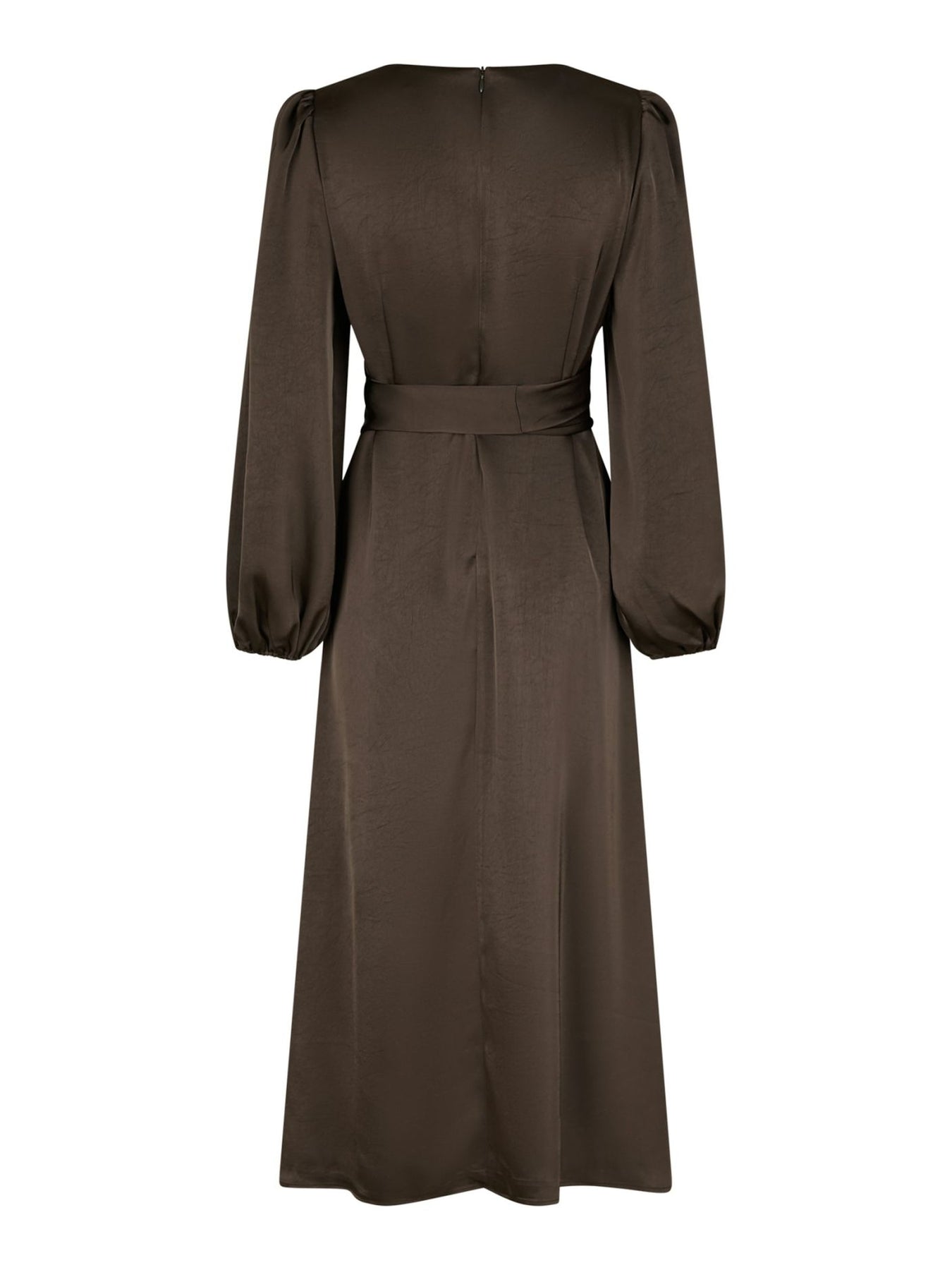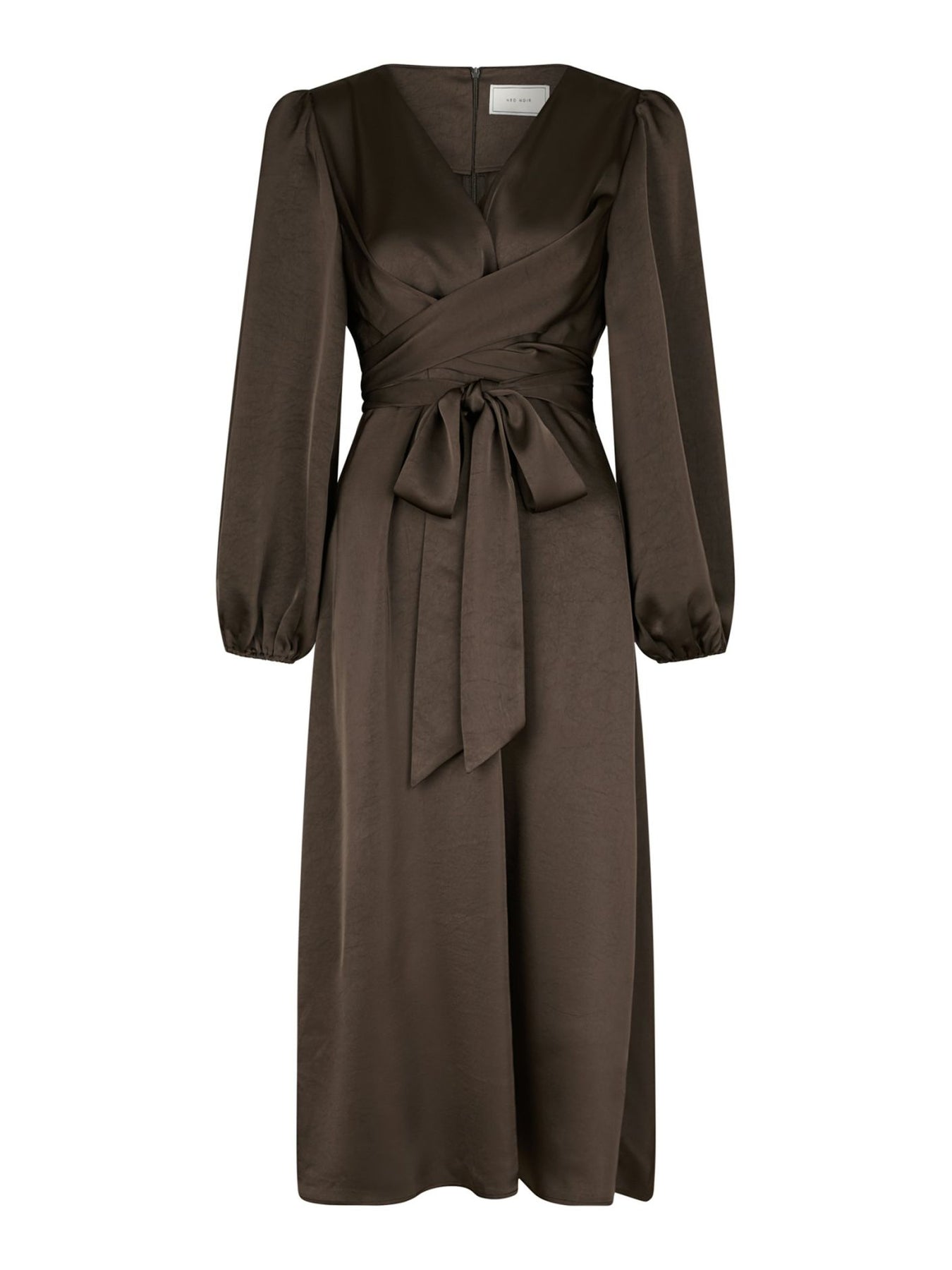 Rimini Heavy Sateen Dress fra Neo Noir. Nydelig midikjole fra Neo Noir med en elegant og flatterende silhuett. Rimini Heavy Sateen Dress har vakre draperinger og knytedetalj i midjen som skaper en flatterende og feminin silhuett. Kjolen har lange ermer med lett volum og flowy midiskjørt.