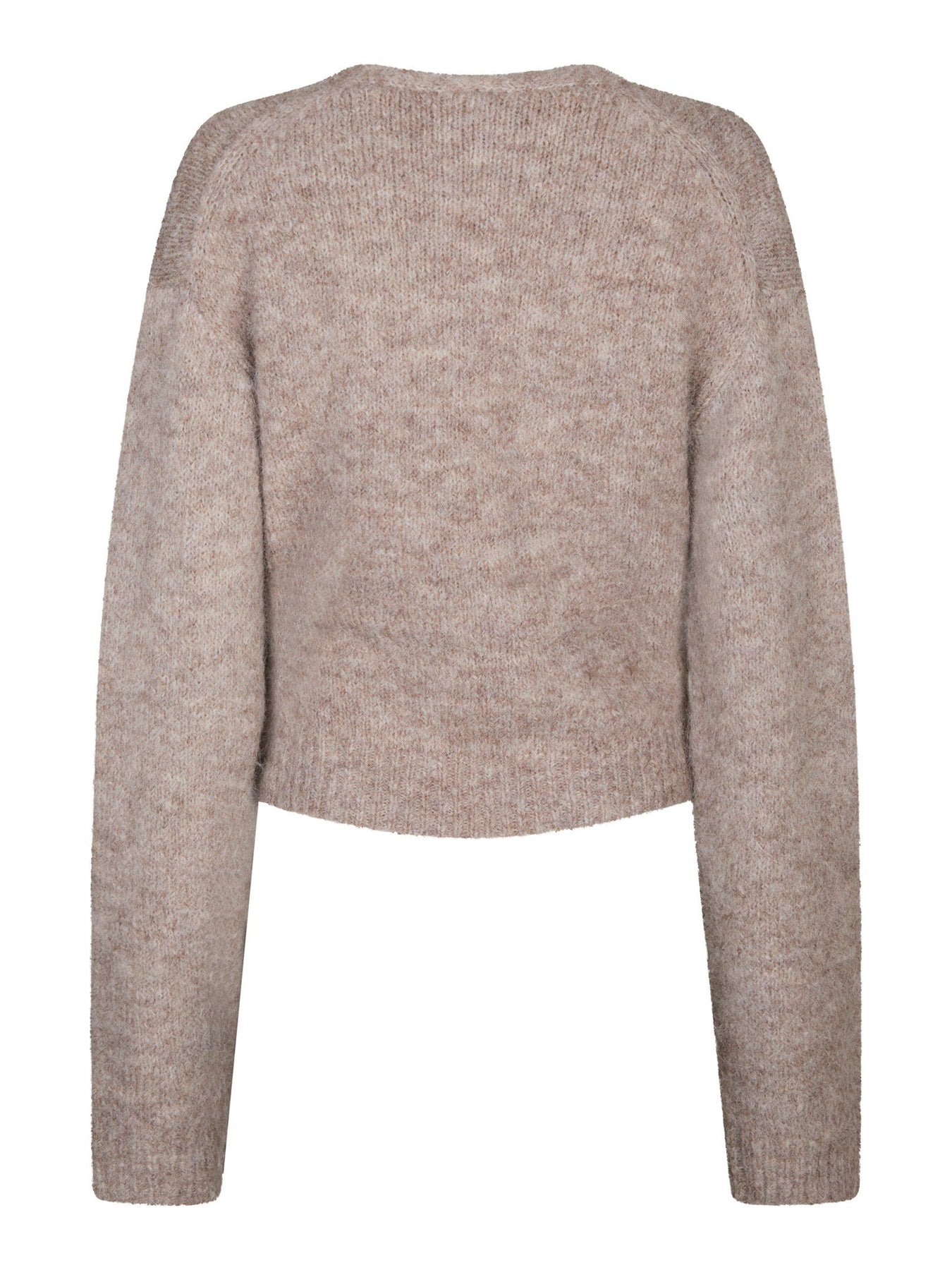 Ronia Fluffy Wrap Knit Cardigan fra Neo Noir. Ronia Fluffy Wrap Knit Cardigan fra Neo Noir er en feminin omslagsstrikk i myk og fluffy kvalitet. Den har en flatterende V-utringning, lange ermer og knyting i siden som gir en elegant og justerbar passform. En tidløs favoritt som passer like godt til jeans som over kjoler.