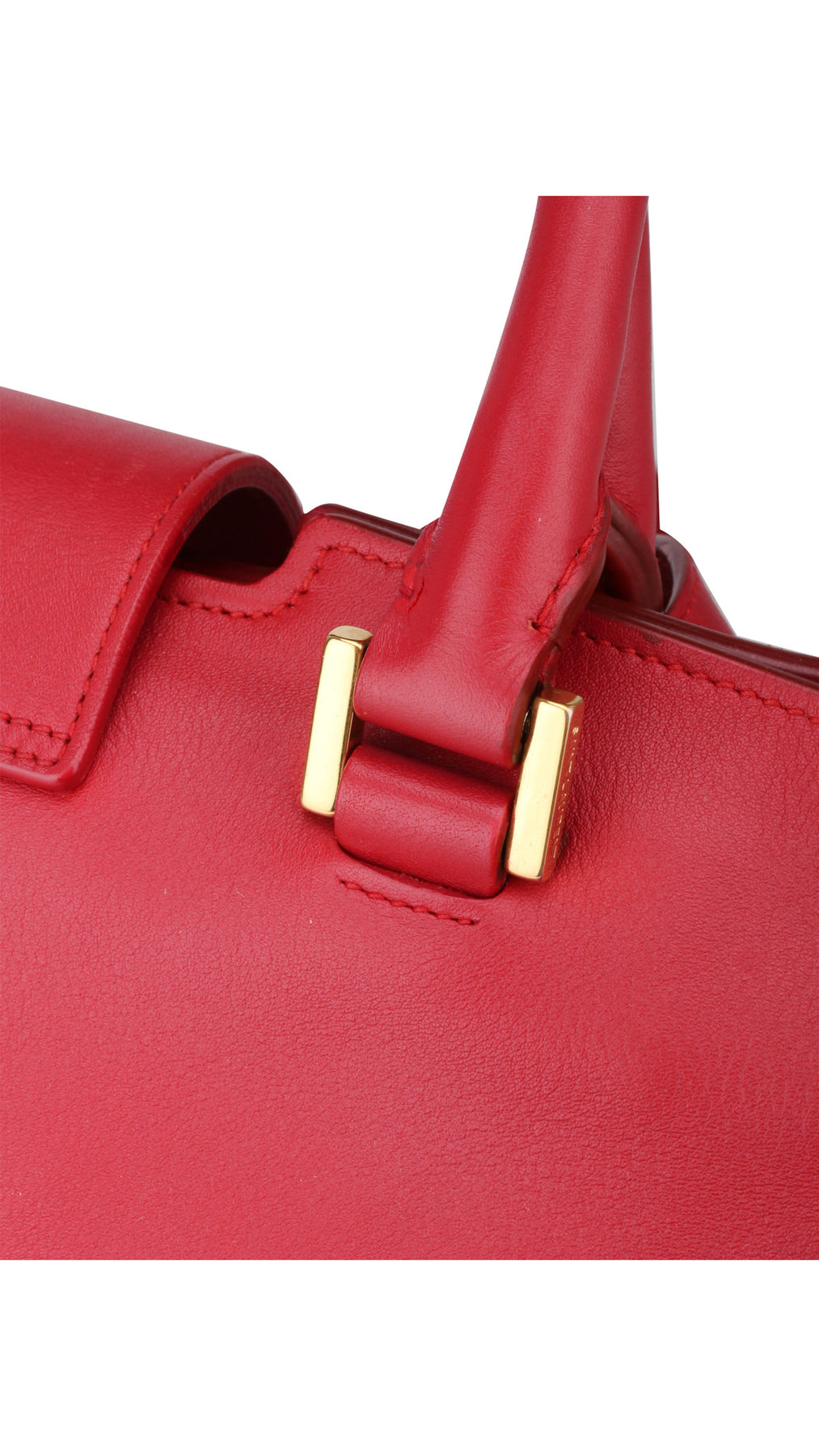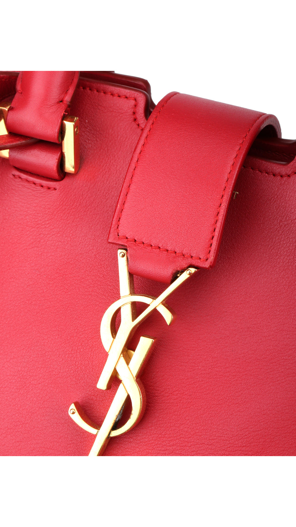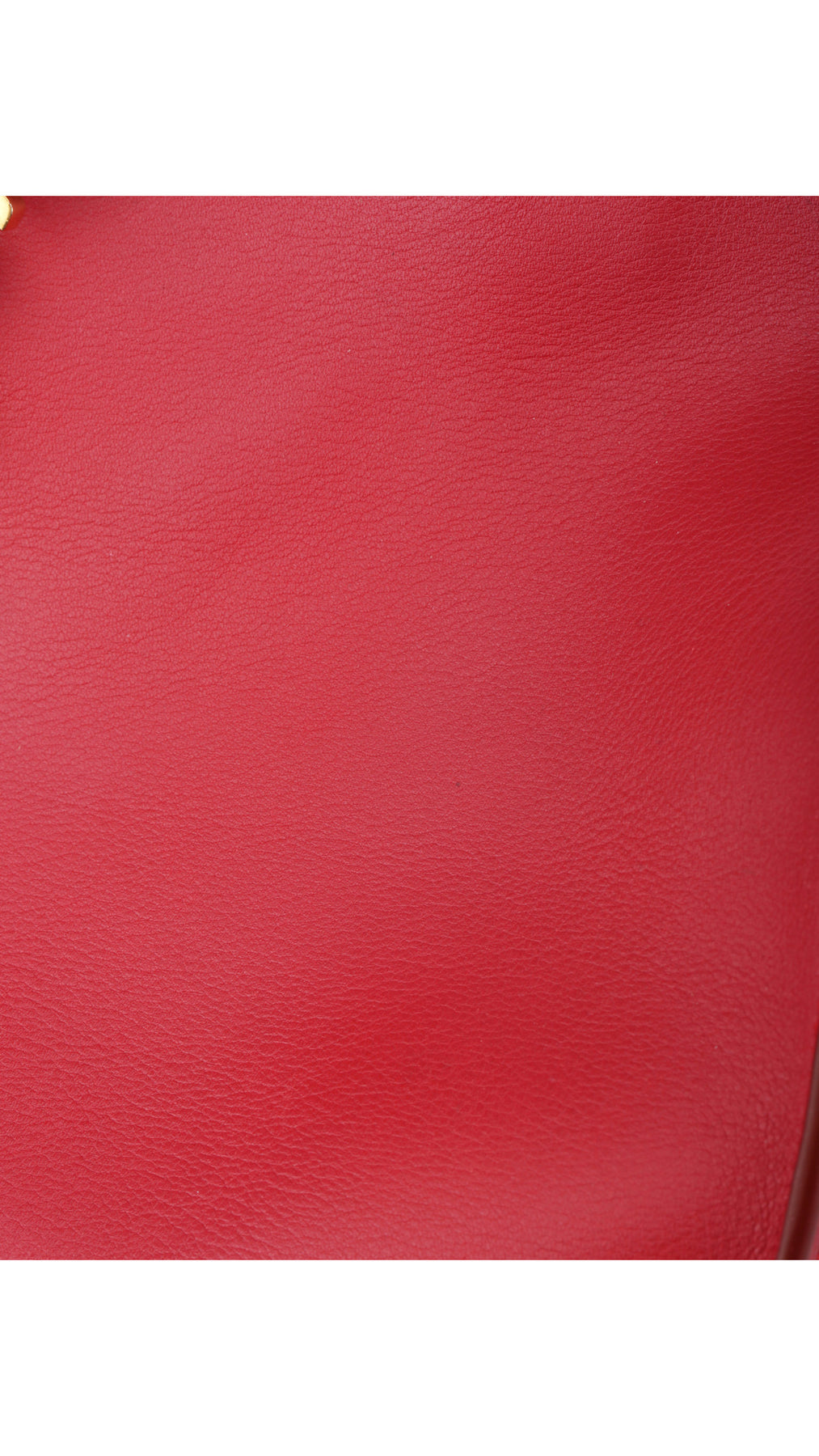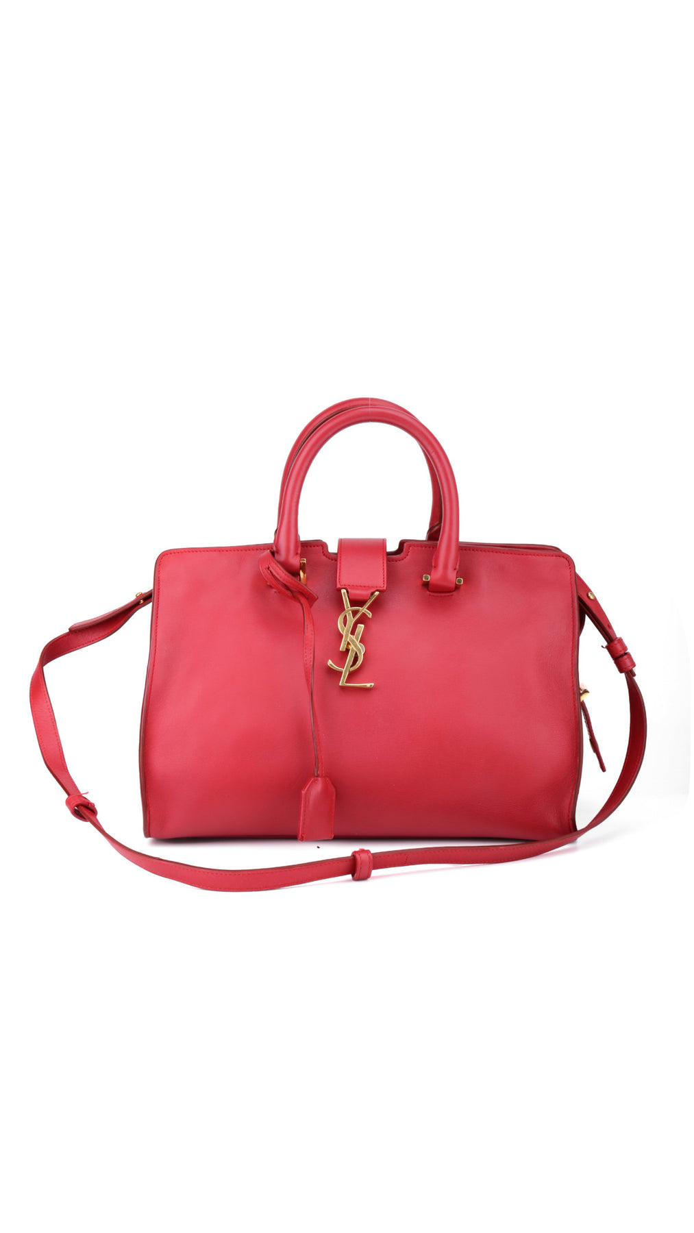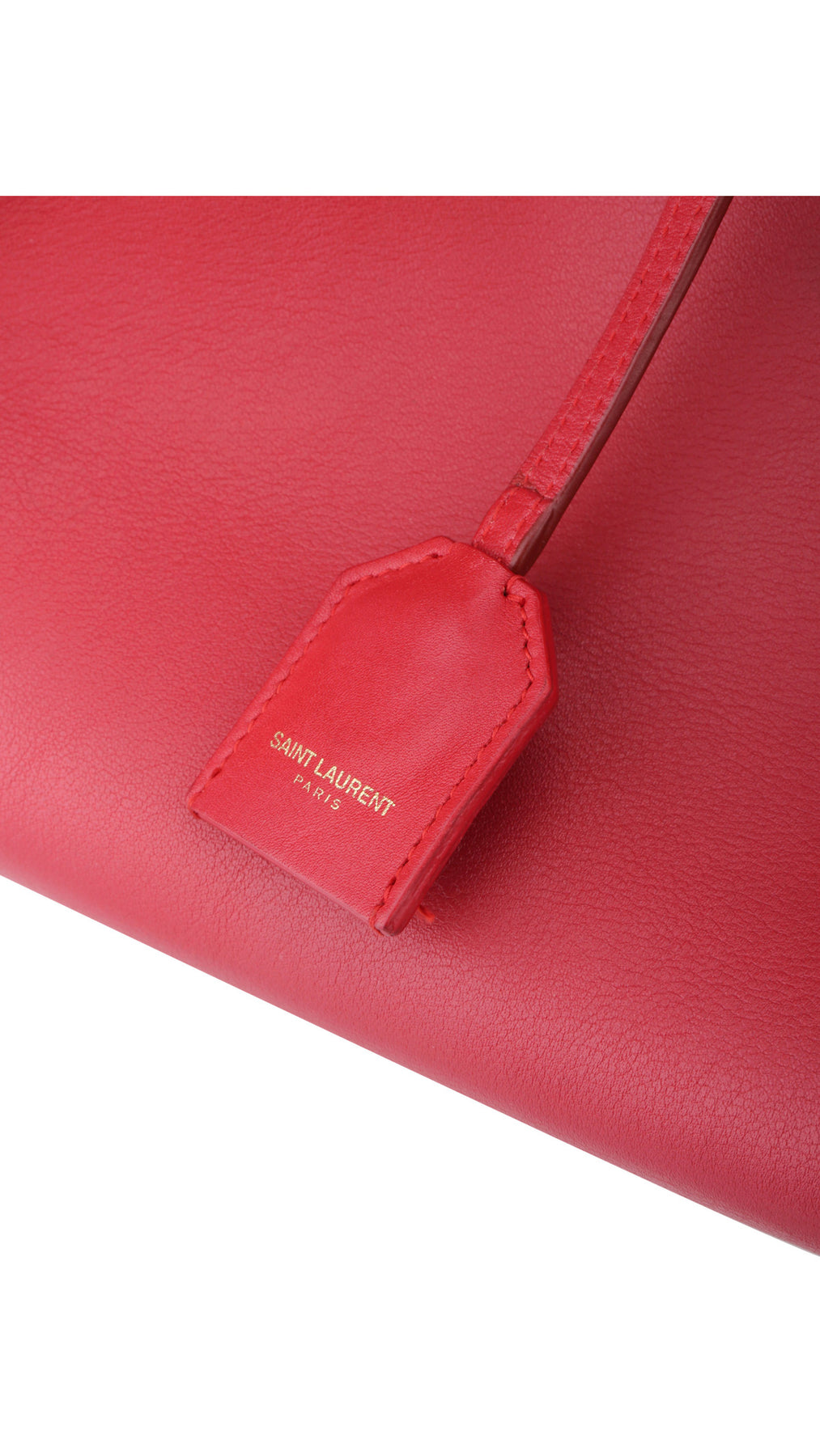 Saint Laurent Cabas Chyc Medium er en ikonisk og tidløs veskemodell, kjent for sin sofistikerte silhuett og den karakteristiske Y-formede spennen i gullfarget metall. Denne utgaven er laget i glatt rødt skinn som gir et uttrykksfullt og elegant preg – et ekte statement-piece for enhver garderobe.