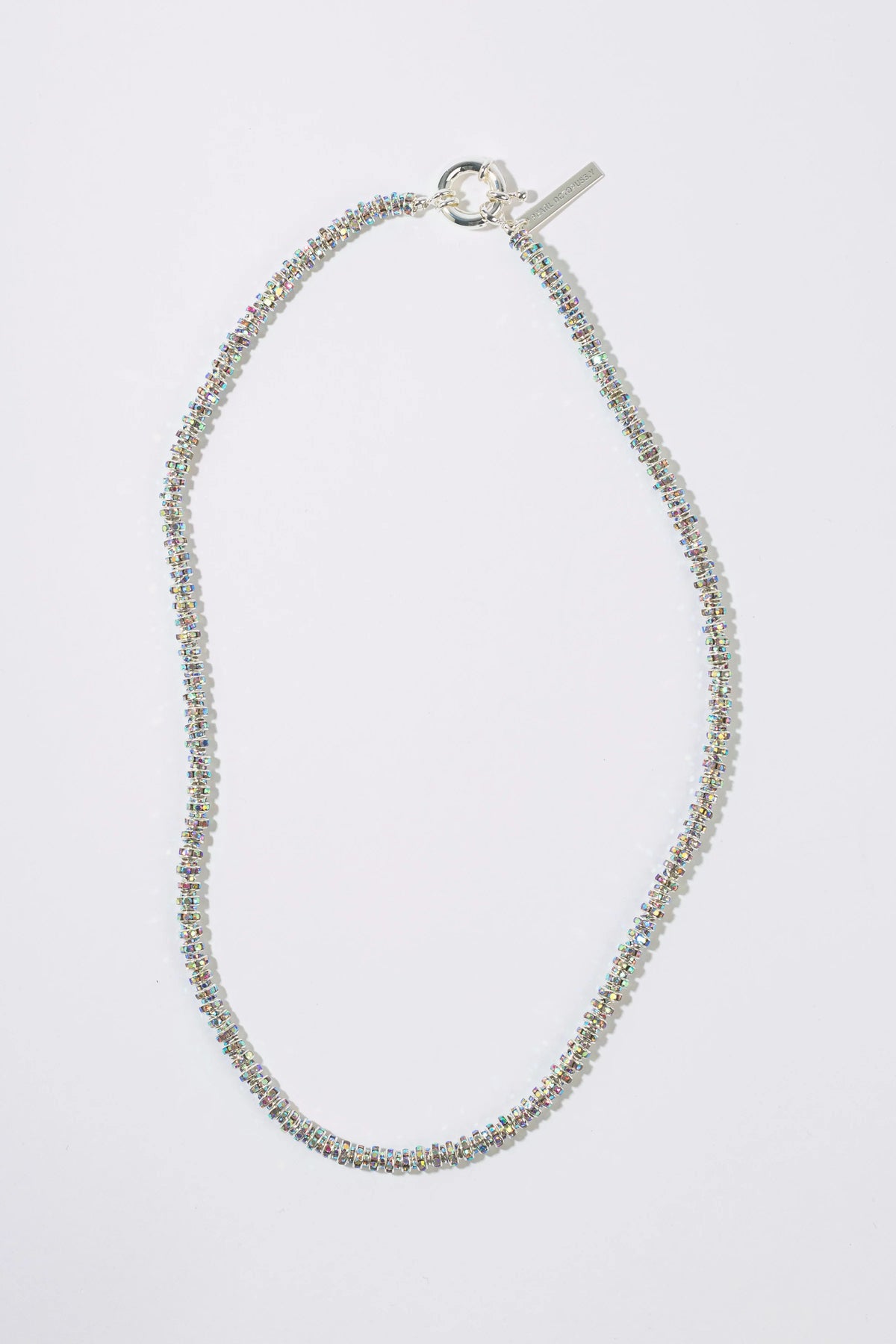 Skinny Diamond Necklace fra Pearl Octopuss.y. Dette elegante, men likevel dristige halskjedet er det perfekte smykket å bruke lag på lag og et base-piece i smykkegarderoben vår. Bruk det alene med en stilig hvit skjorte for et subtilt statement, eller lag-på-lag med andre halskjeder for en teksturert miks.