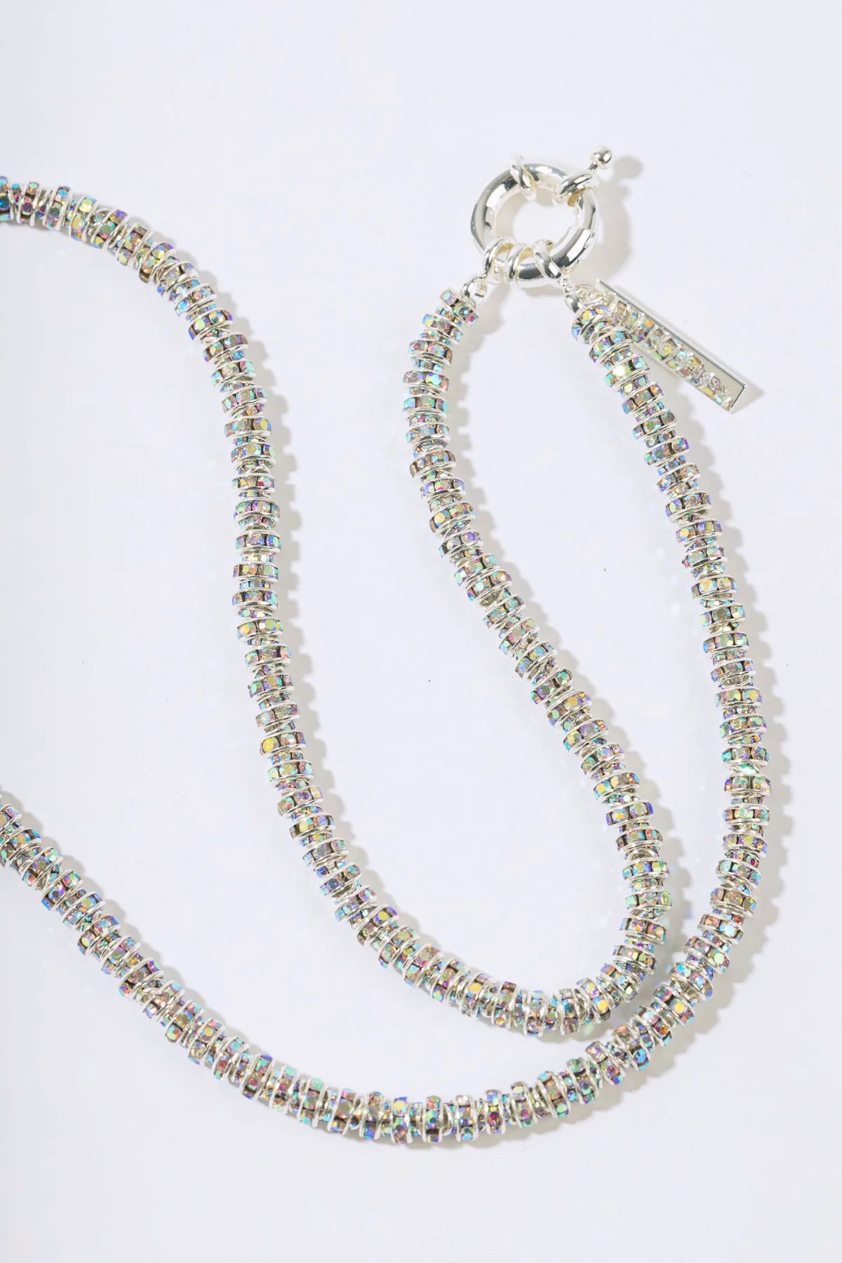 Materiale: Sølvbelagte messing rondelleperler med glasskrystaller