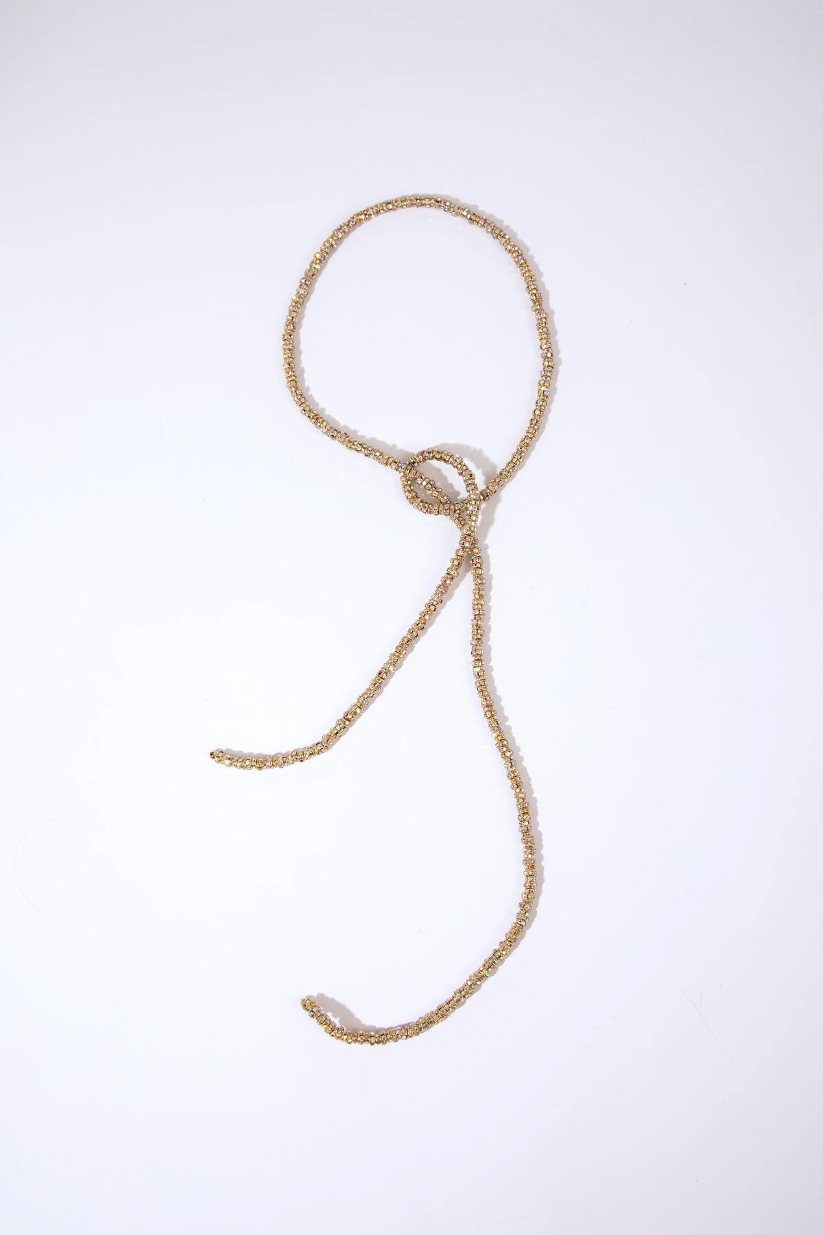 Skinny Serpent Chain fra Pearl Octopuss.y. Dette konvertible halskjedet finner en perfekt balanse mellom elegant og lekent. Laget for å kunne brukes på flere måter, er dette det perfekte plagget å bruke på lag. Knyt det rundt halsen, håndleddet eller sammen med en av våre brosjer for en uanstrengt kul vri på bolo-slipset.