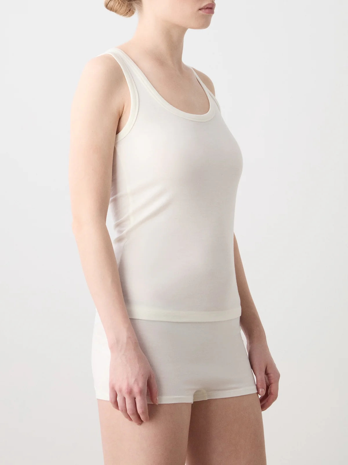 Snø Tank Top fra We Norwegians. Klassisk tank top fra We Norwegians i myk og god merinoull. Snø Tank Top har rund hals, tykke skulderstropper og en smal, figurnær passform. Perfekt som undertrøye på kjølige dager, eller alene under en jakke eller blazer.